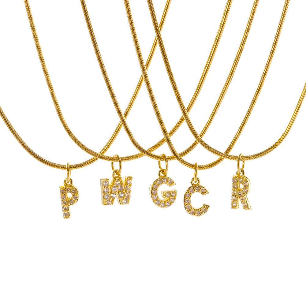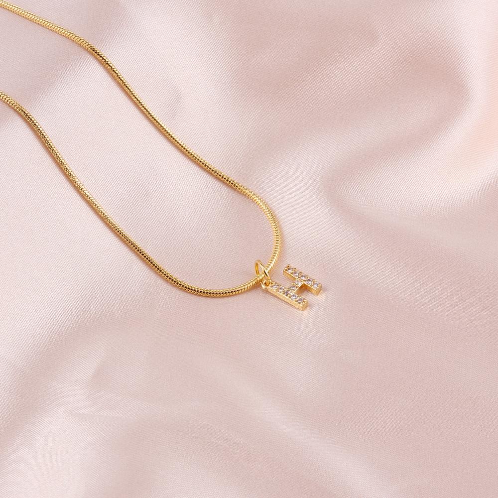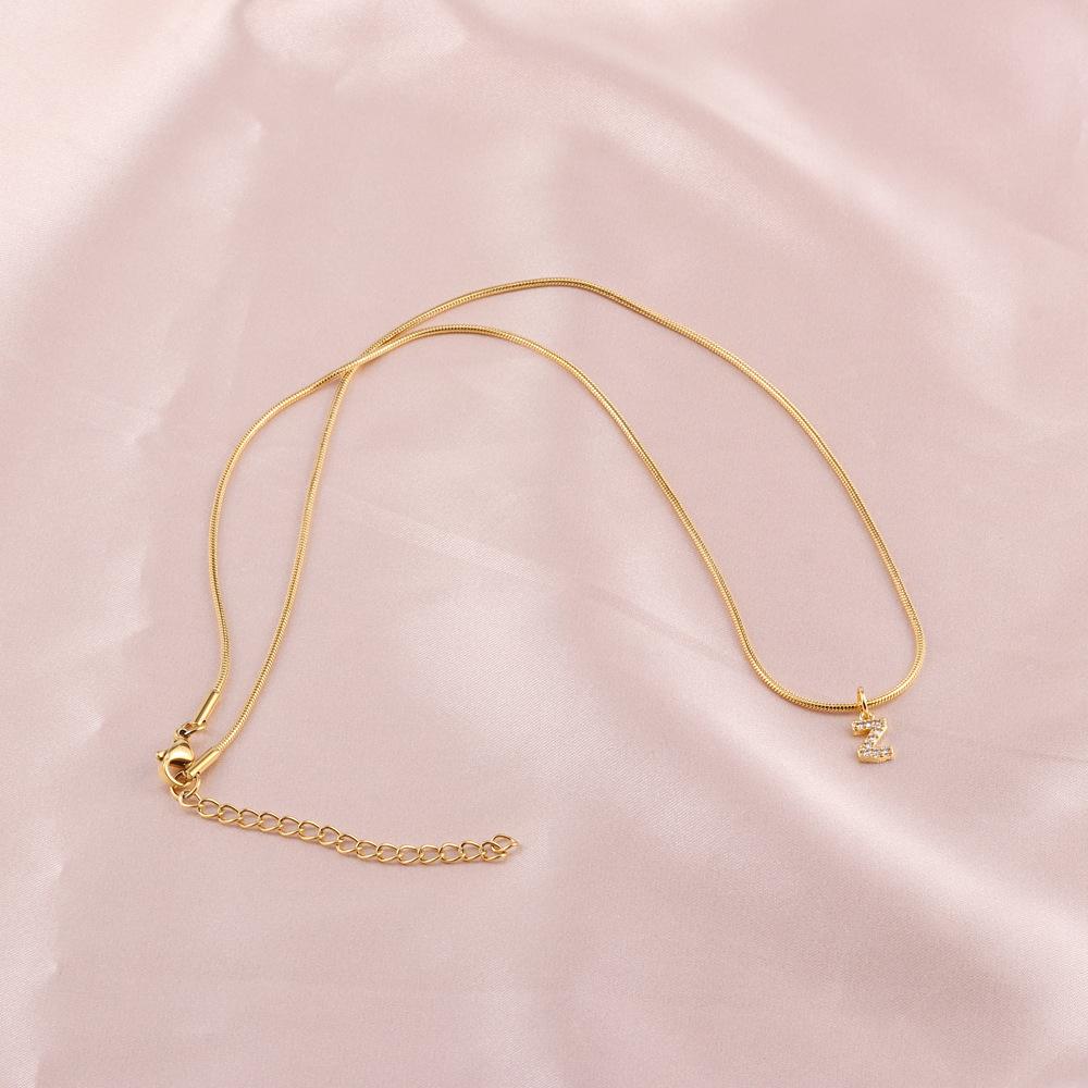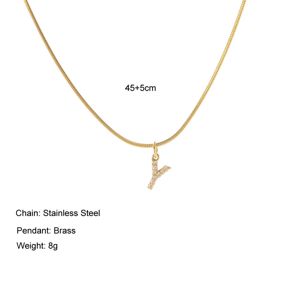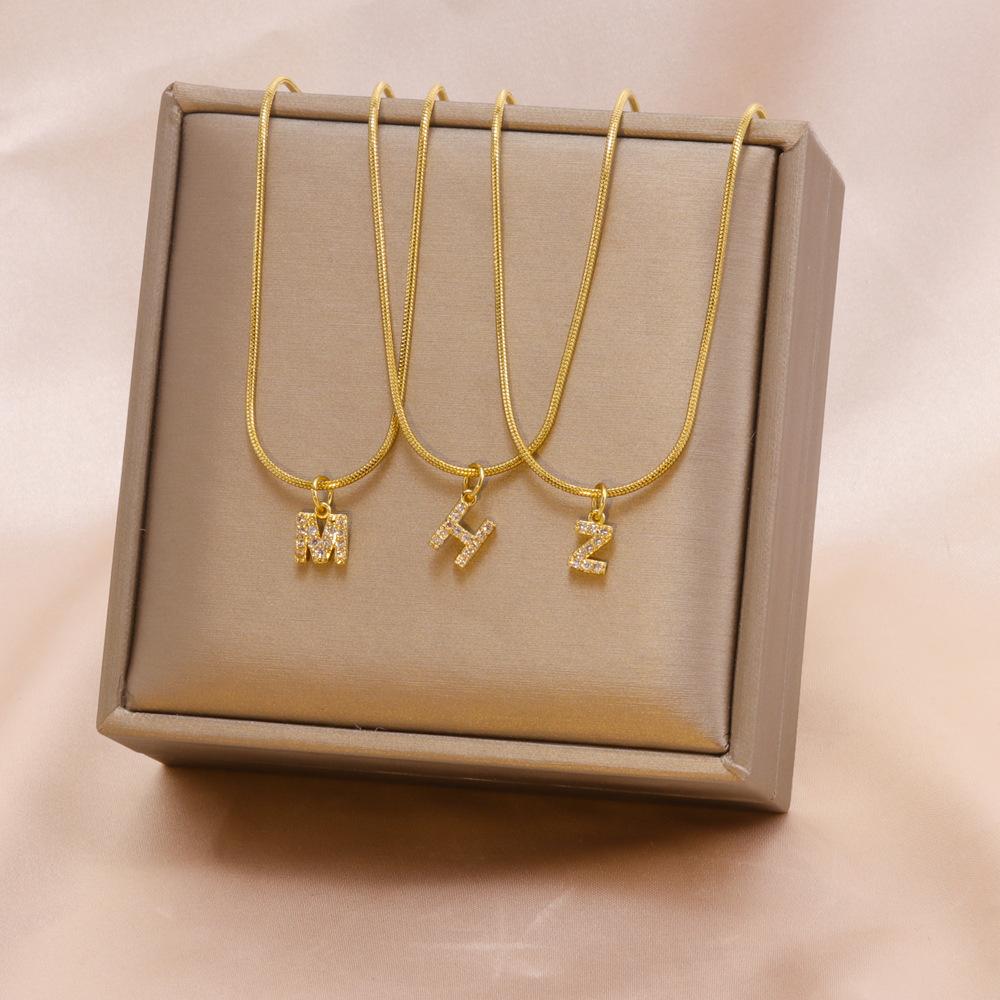 Collar con 26 letras en inglés chapado en oro auténtico transfronterizo, estilo hip hop europeo y americano, cadena de letras con hueso de serpiente redondo de acero inoxidable