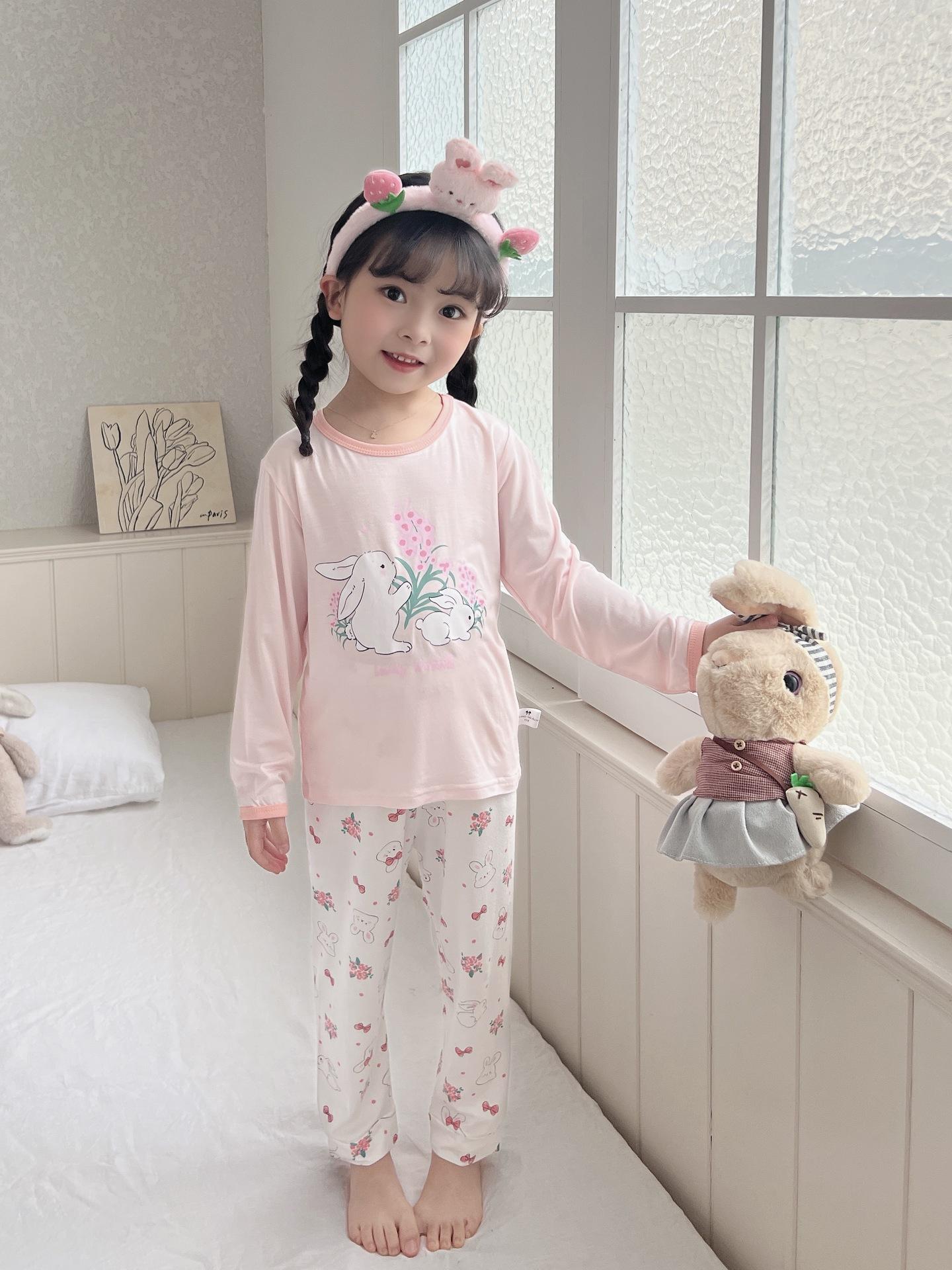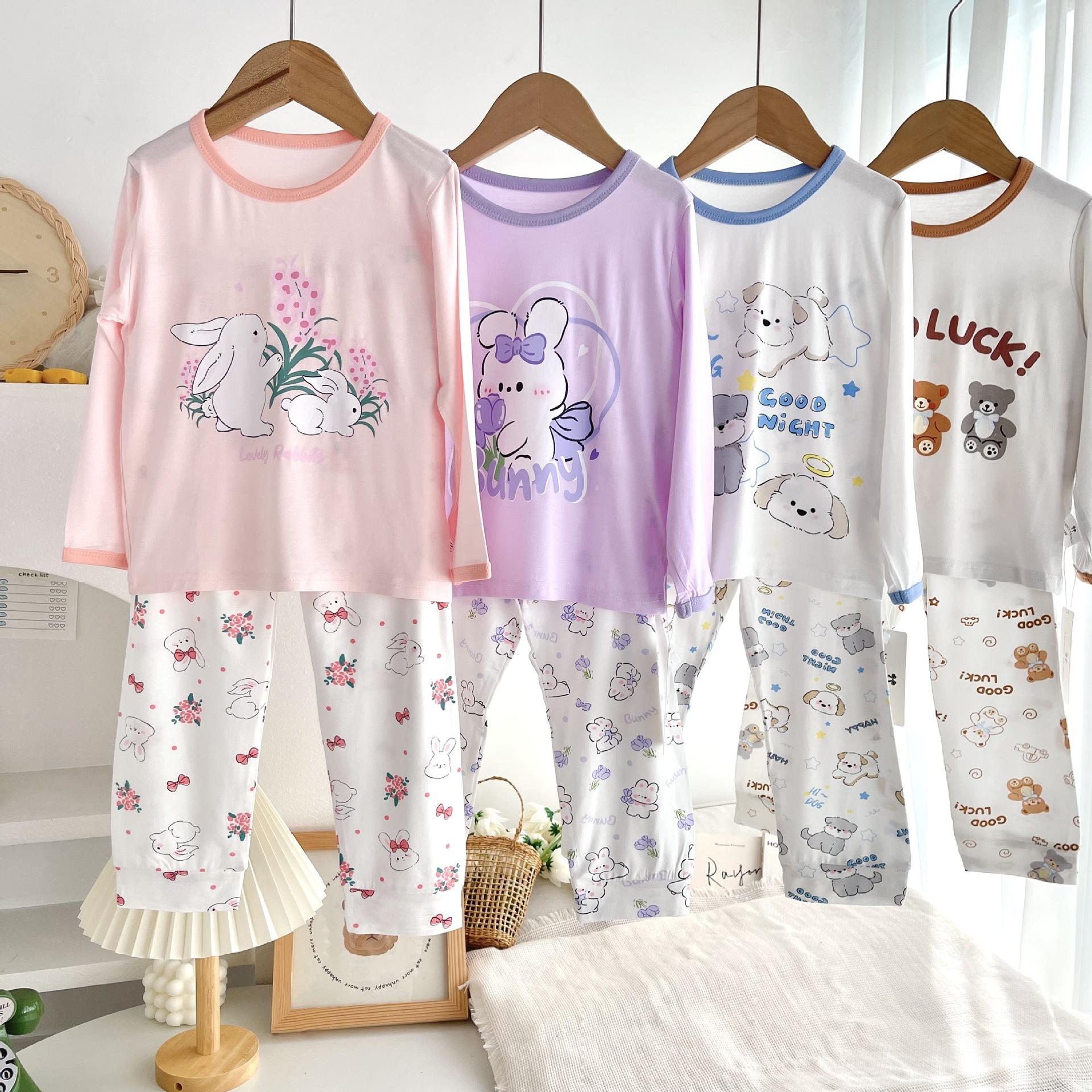 [Modal de ajenjo] Ropa para niños 2024 nueva ropa para el hogar pijamas niños y niñas habitación con aire acondicionado pantalones de manga larga dibujos animados