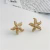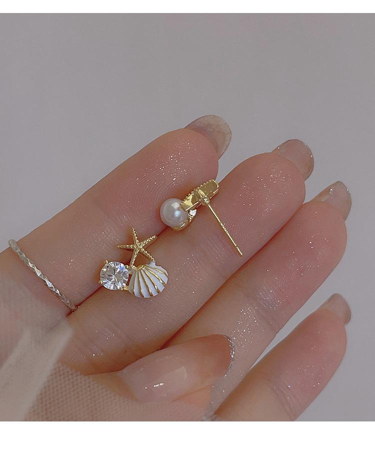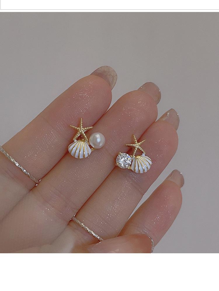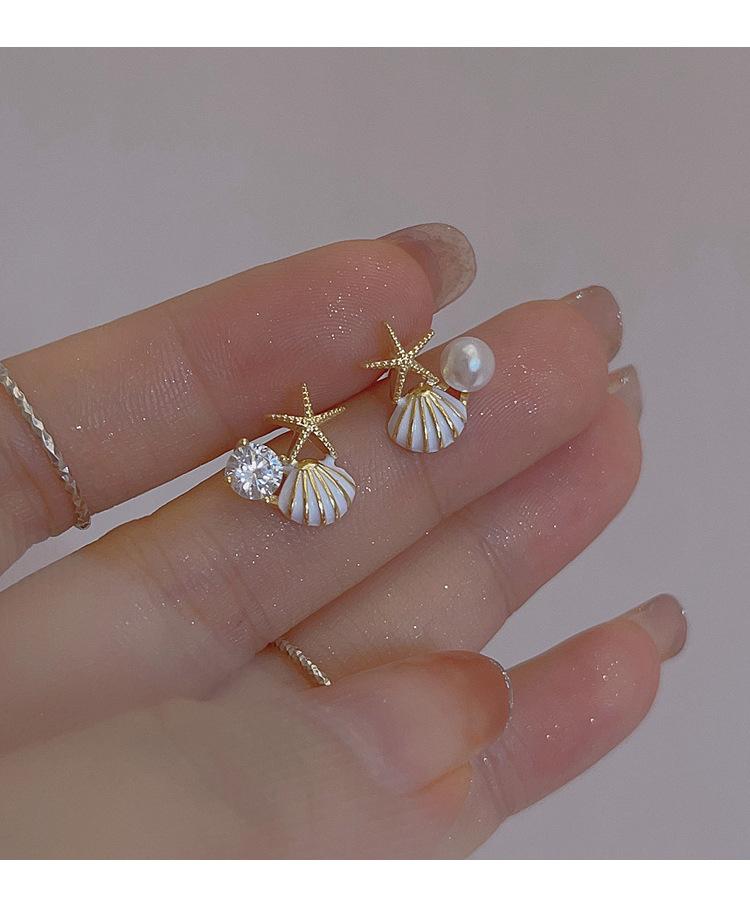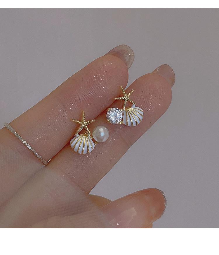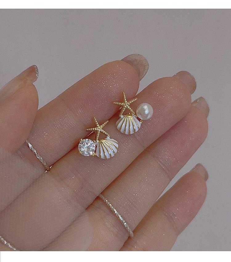 Aretes de concha de estrella de mar de perlas de lujo ligero, diseño único, personalidad simple, aretes pequeños y dulces, aretes de verano para mujer