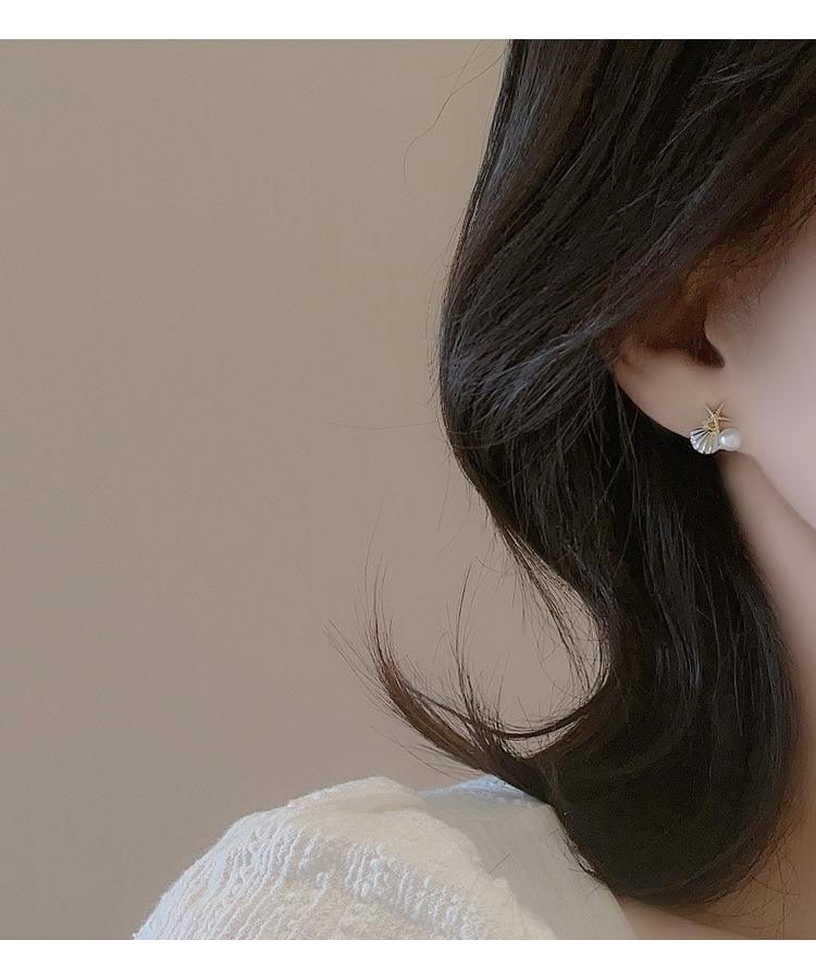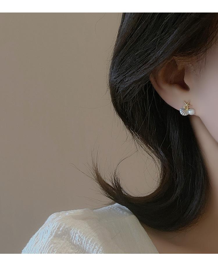 Pendientes de perlas de concha de estrella de mar únicos y ligeros de lujo con diseño simple y personalidad, pendientes compactos y dulces de verano para mujer.