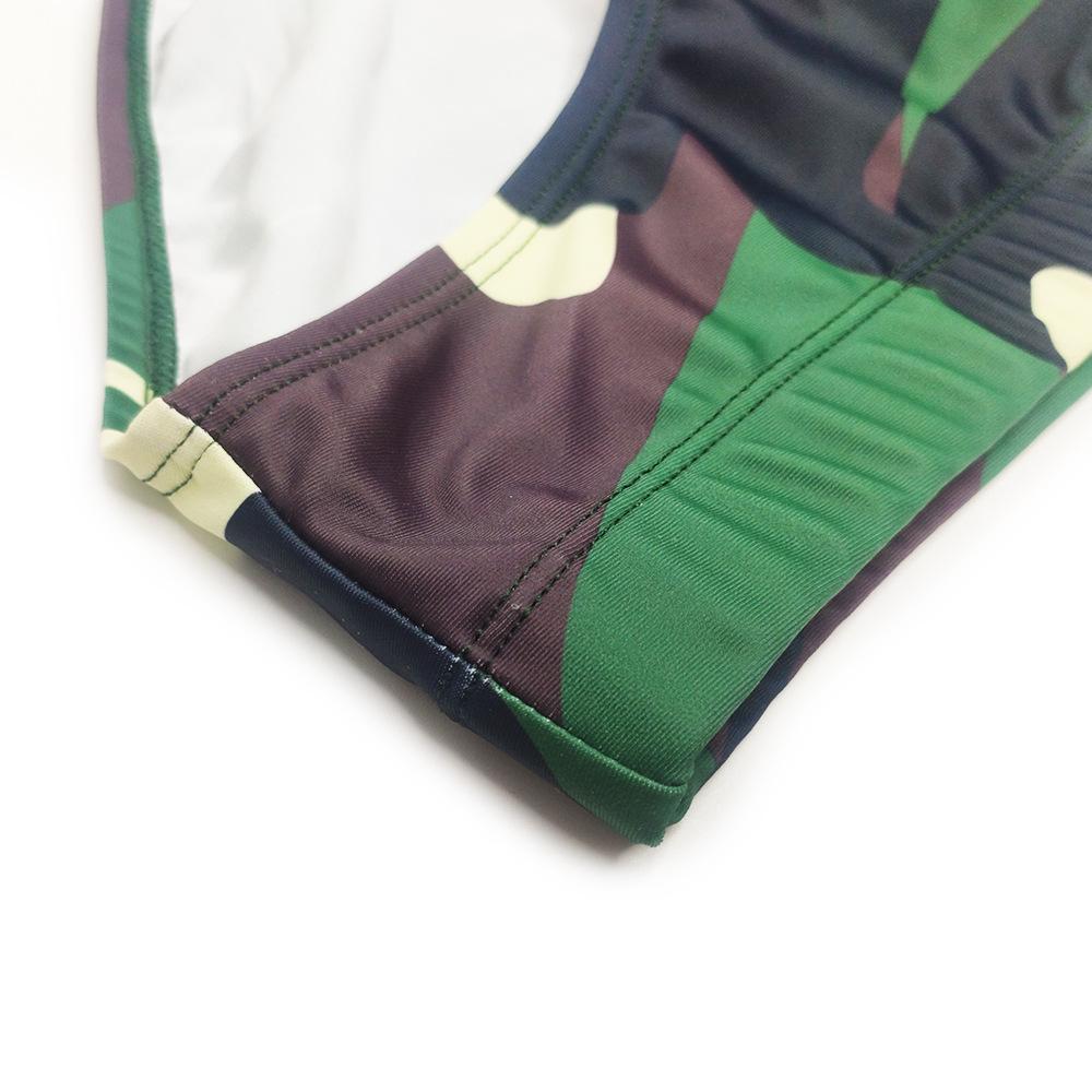 Bañador triangular sexy de camuflaje verde militar salvaje para hombre UHX, pantalones cortos de playa triangulares de cintura baja de comercio exterior transfronterizo.