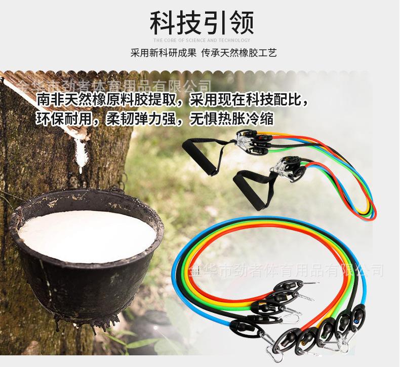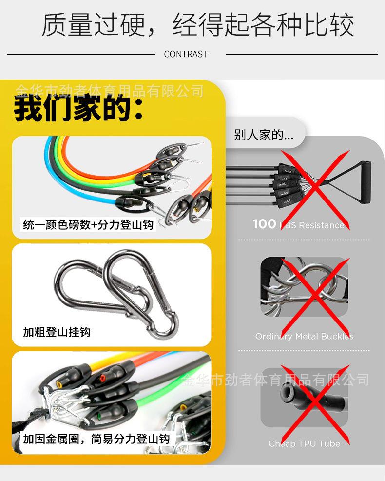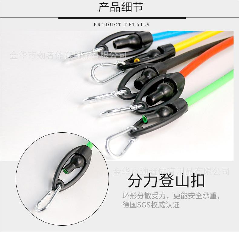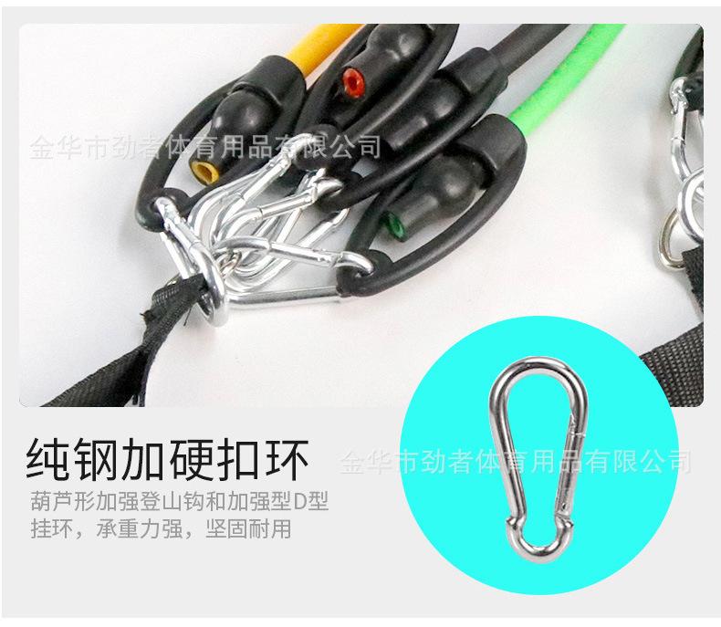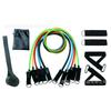 Contenido: 5 tubos, 2 manijas, 2 correas para tobillo, 1 anclaje de puerta, 1 bolsa de transporte