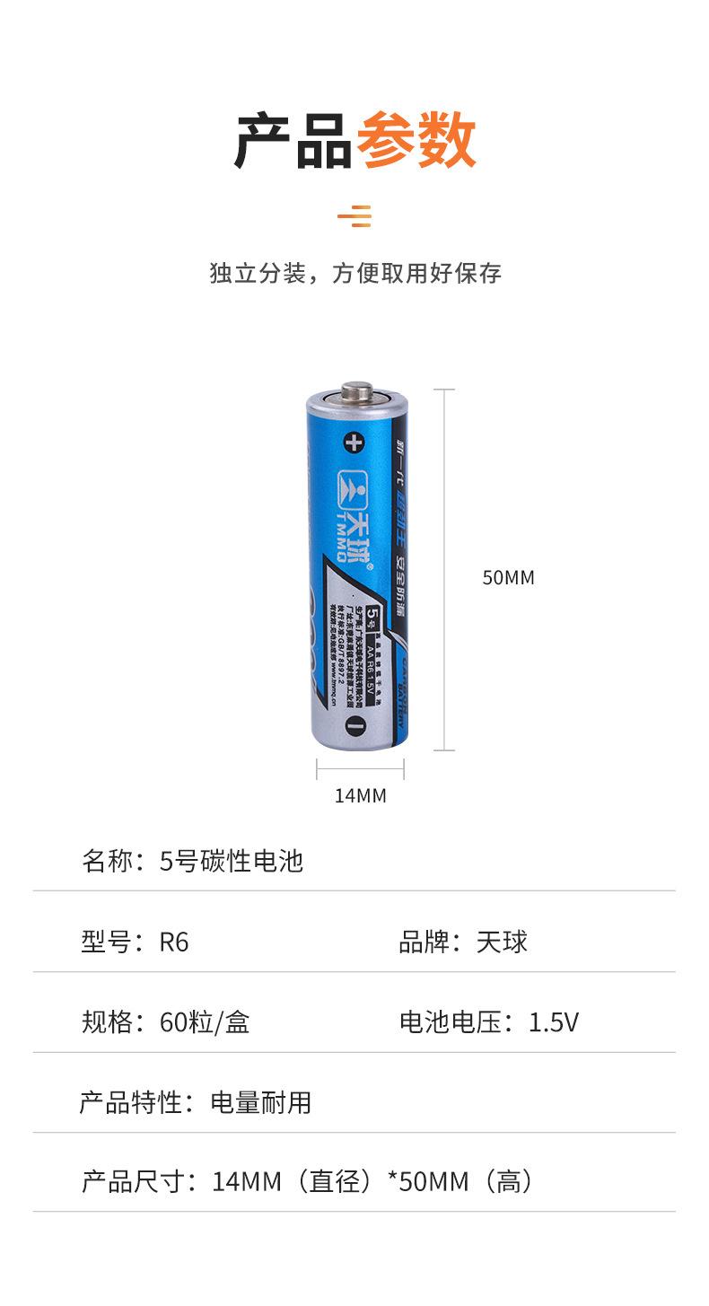 Tianqiu No. 5 Batería Super King No. 7 Batería 1.5V Batería Seca de Carbón Juguete Control Remoto No. Caja de Baterías 5