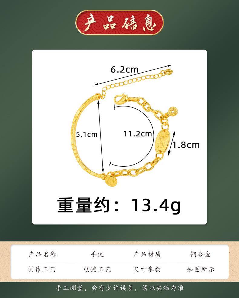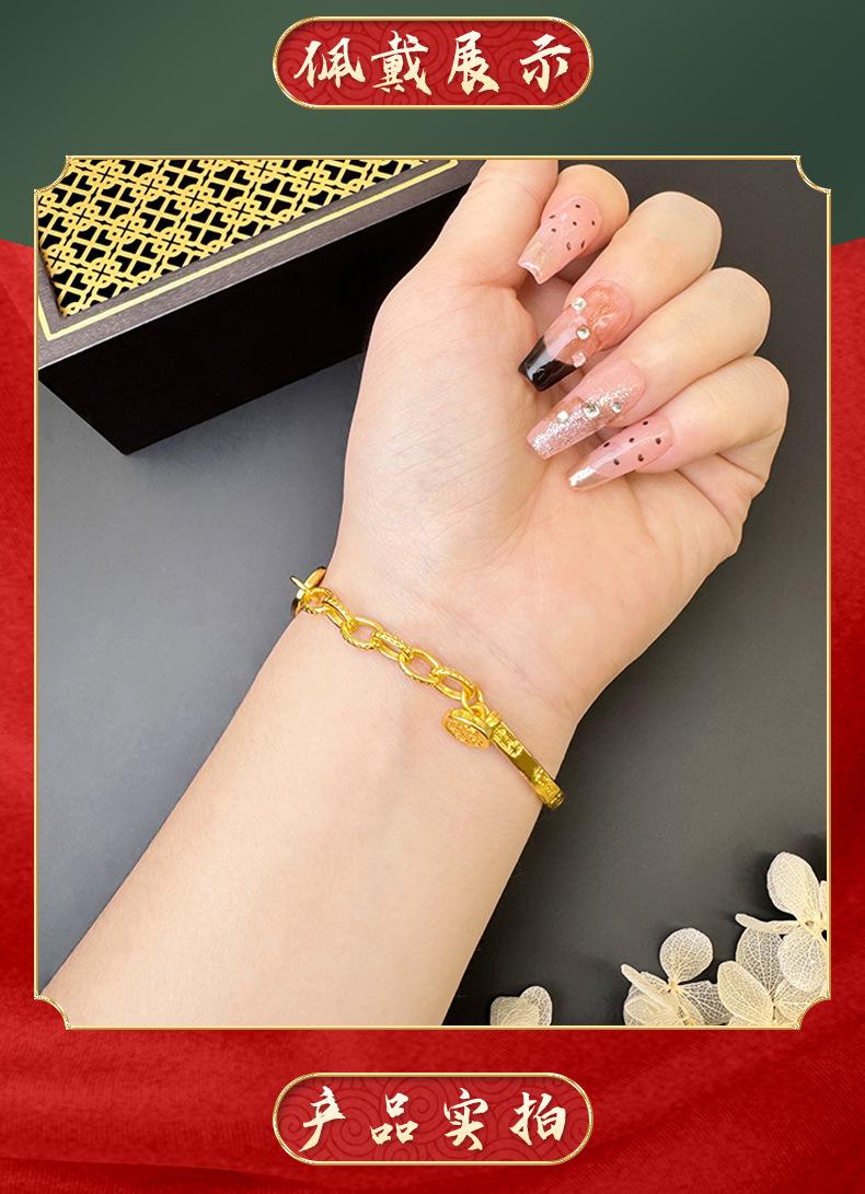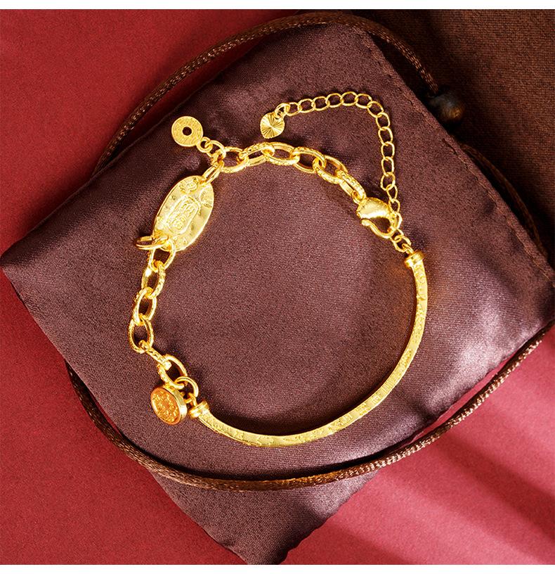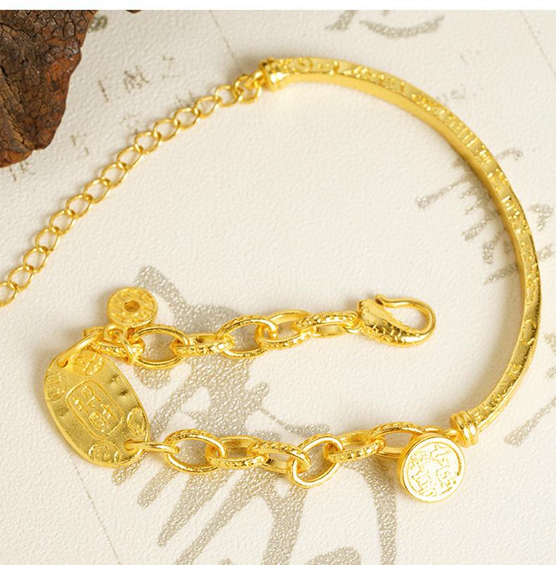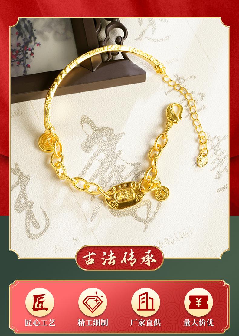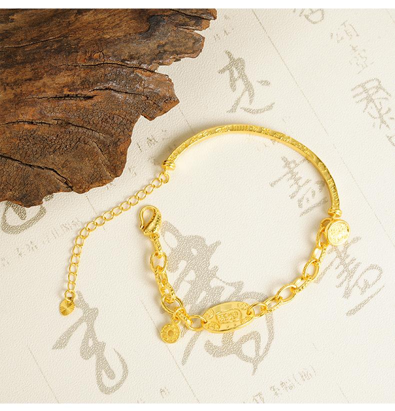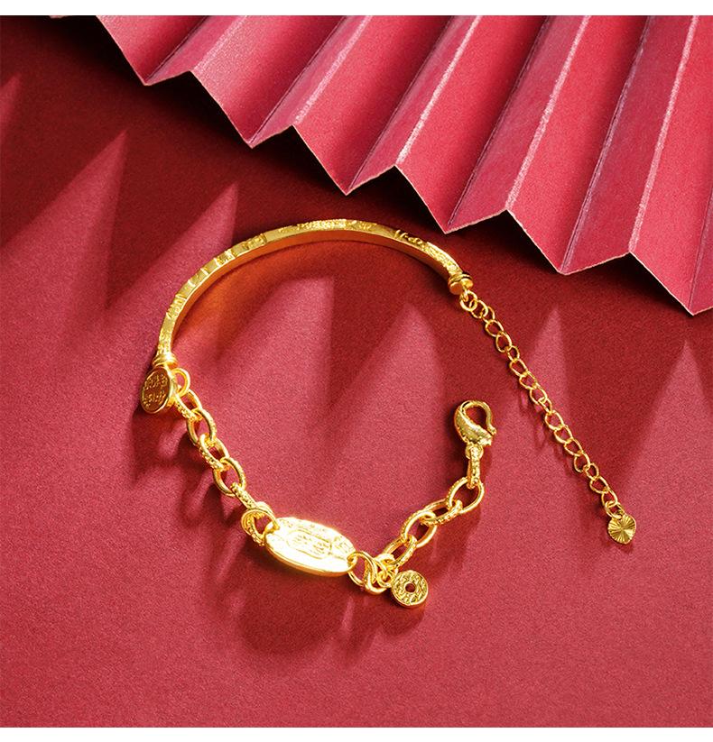 Pulsera de Media Pulsera de Lujo Ligero Marea Nacional Oro Arena Vietnamita Ping An Joy Moneda Personalizada Estilo Chino Artesanías de Alta Gama para Mujer