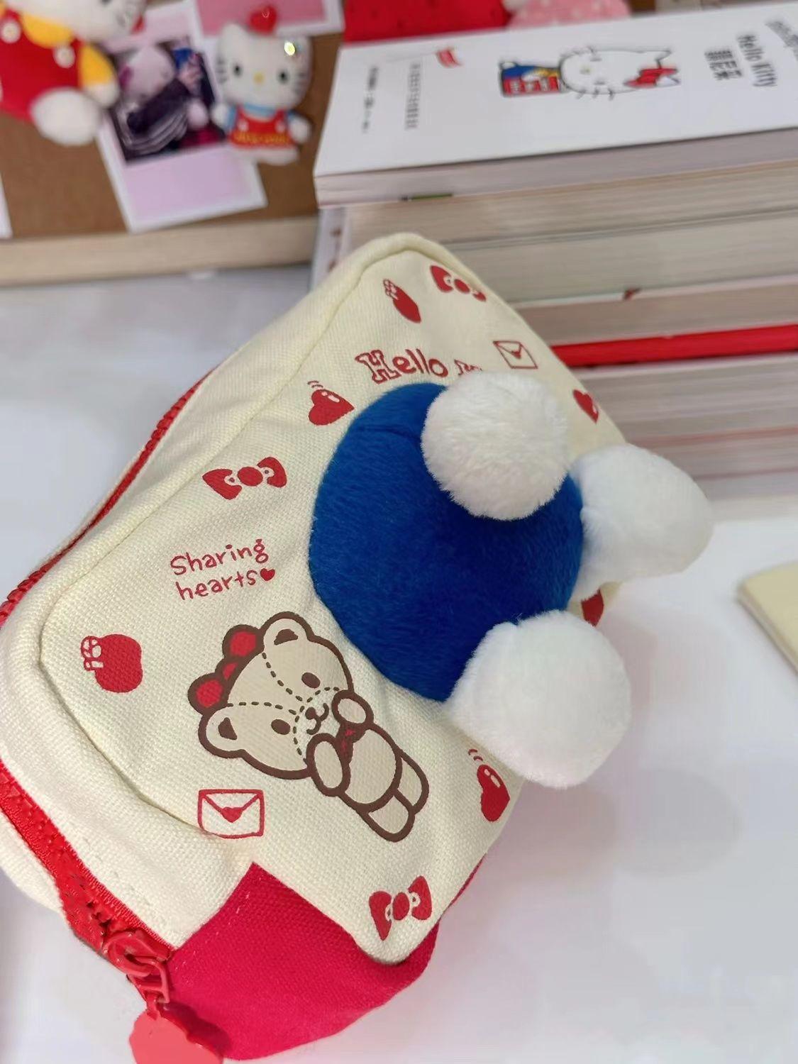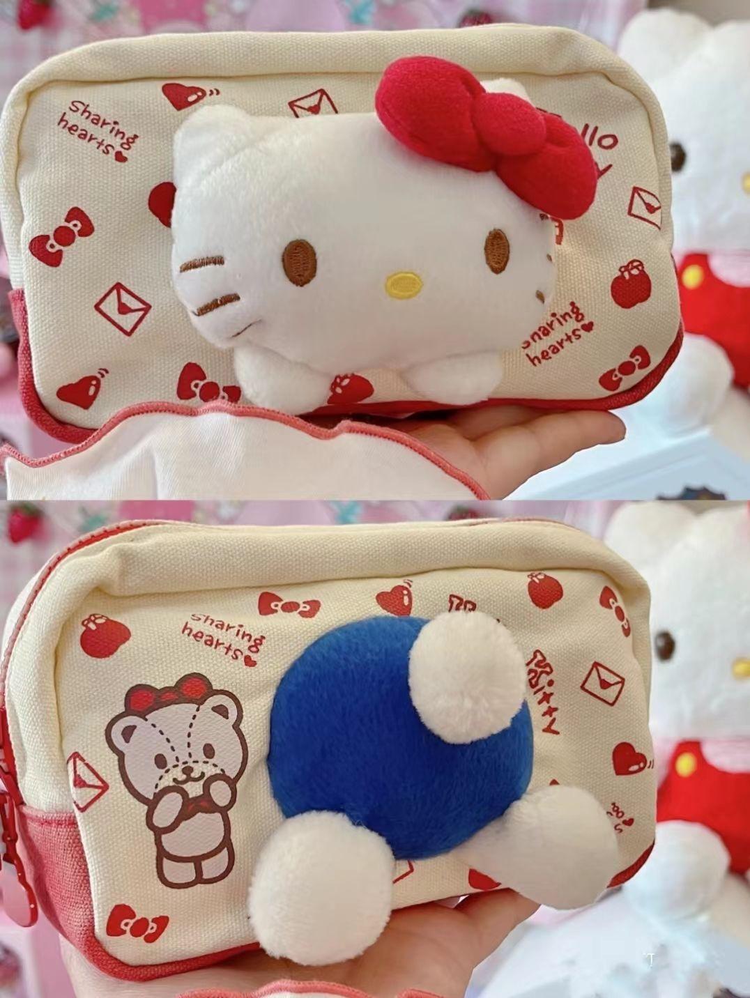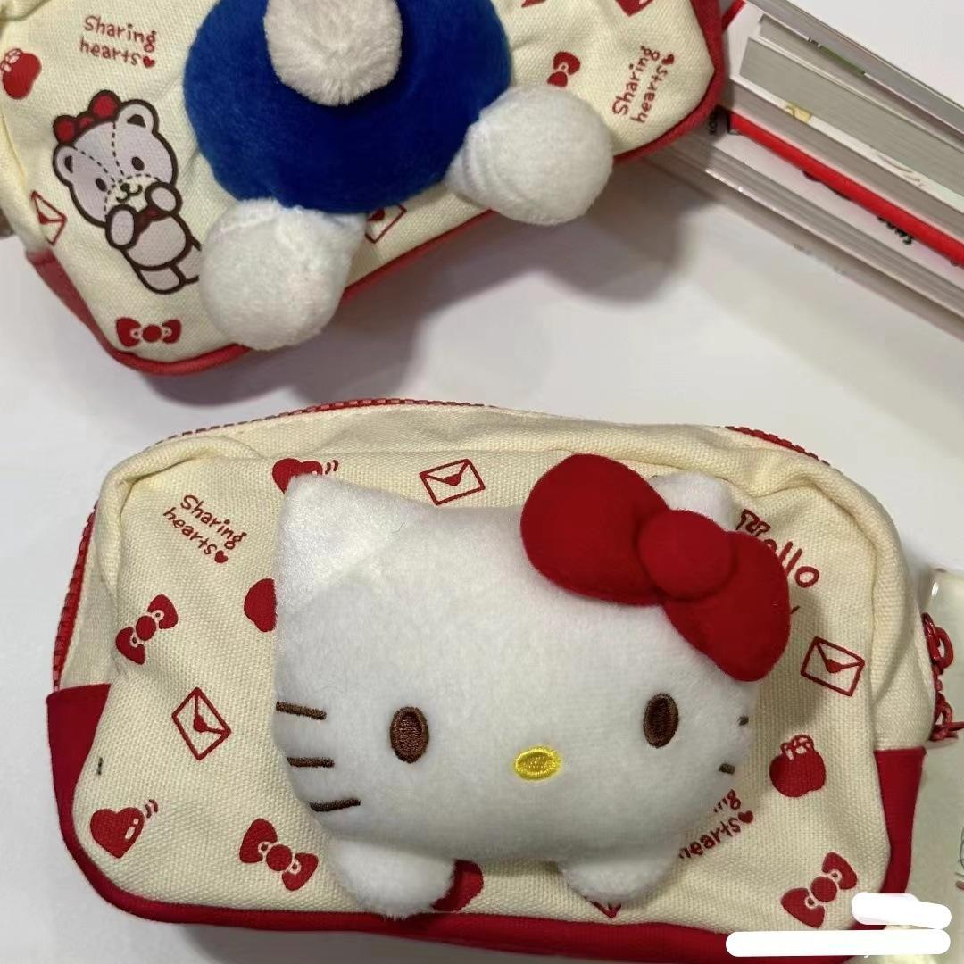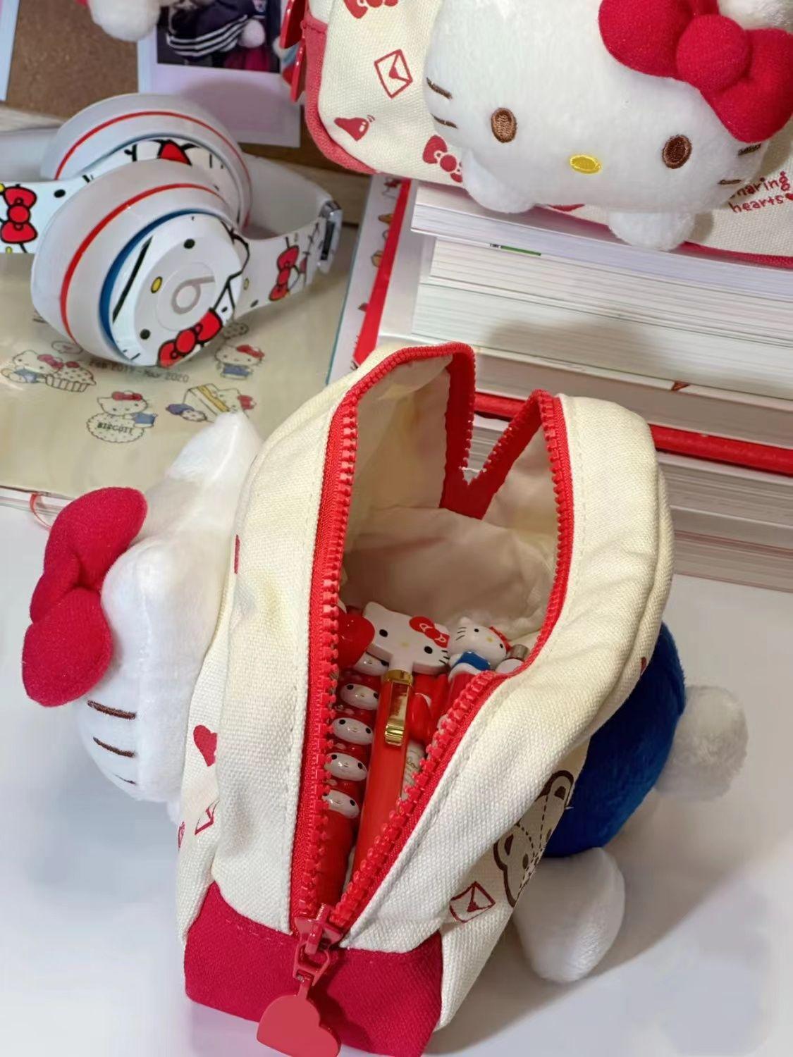 Estuche para lápices KT Cat de gran capacidad y gran valor de color, bolsa de almacenamiento de papelería con forma de corazón para niñas, estuche para estudiantes, bolsa de cosméticos, bolsa de almacenamiento