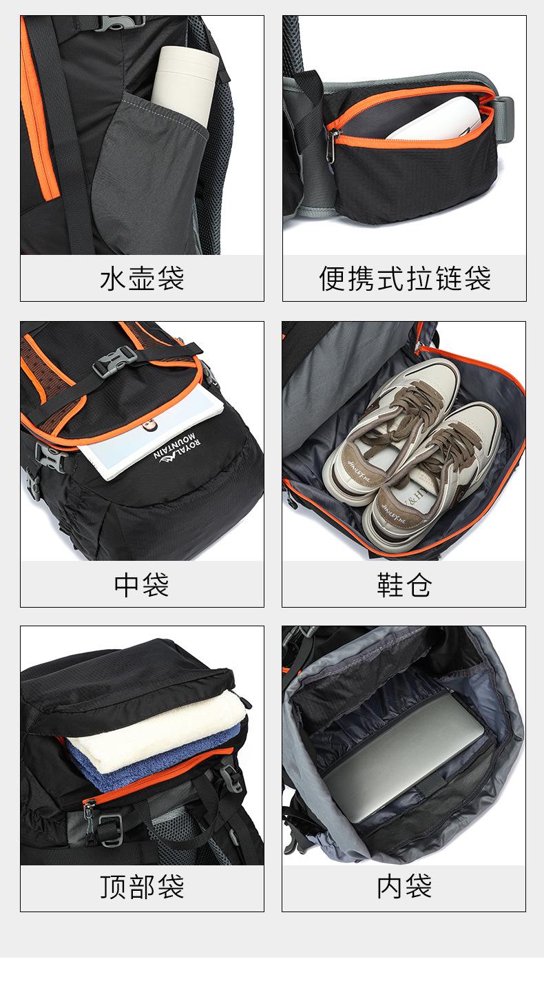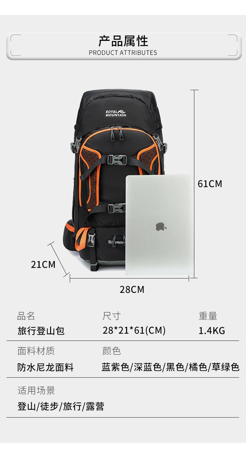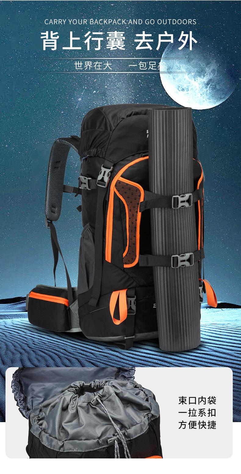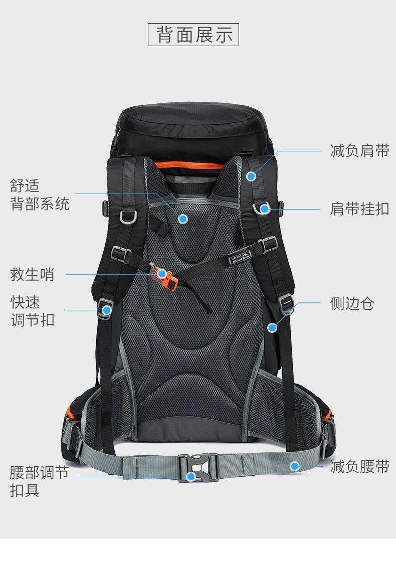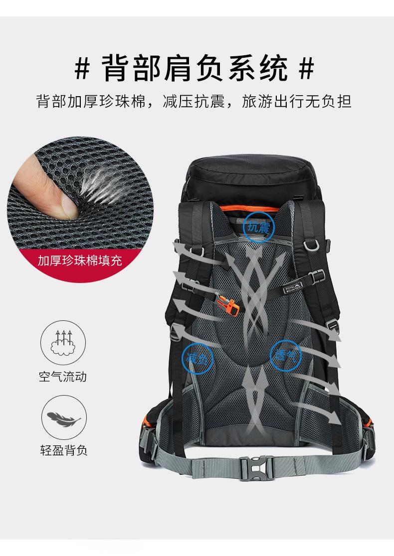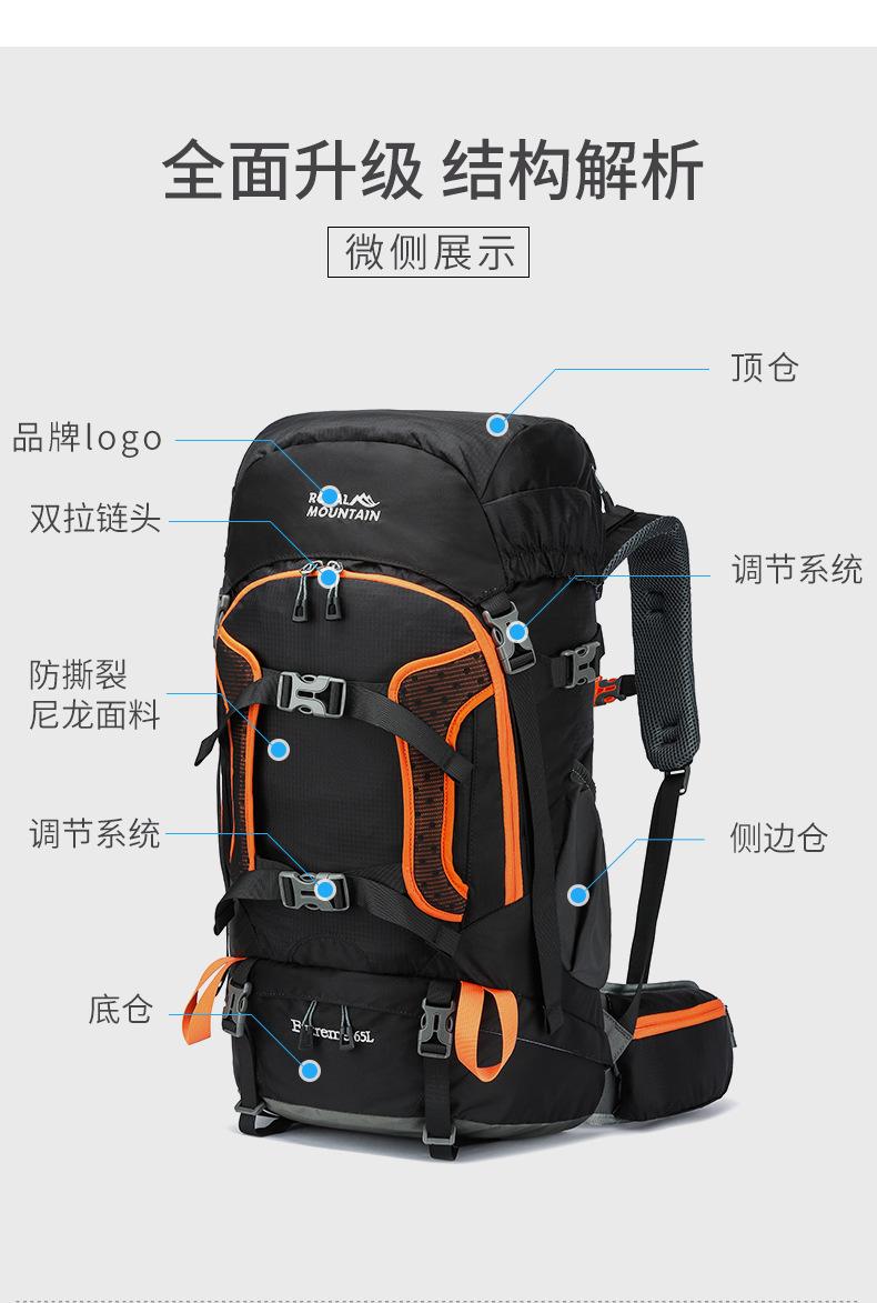 Bolsa de Montañismo para Exteriores de 65L Mochila de Viaje Multifuncional de Gran Capacidad Mochila con Tubo de Aluminio Bolsa de Senderismo para Deportes al Aire Libre