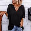 Camiseta holgada de manga corta de primavera y verano europea y americana, verano Amazon, nueva, top cruzado de punto con cuello en V para mujer europeo y americano