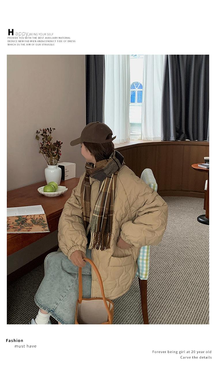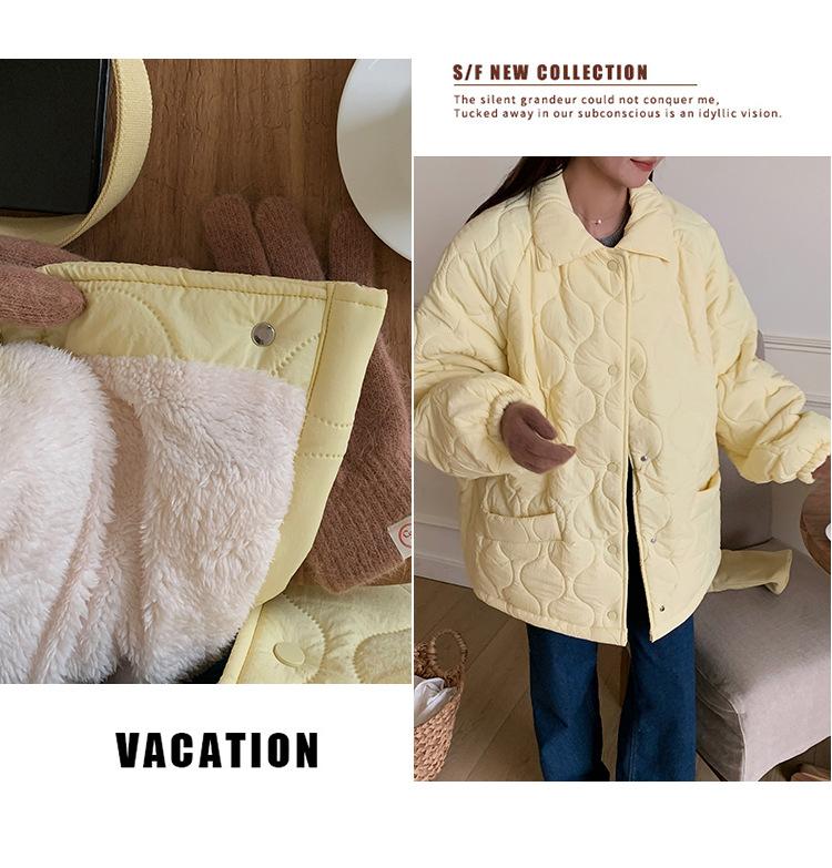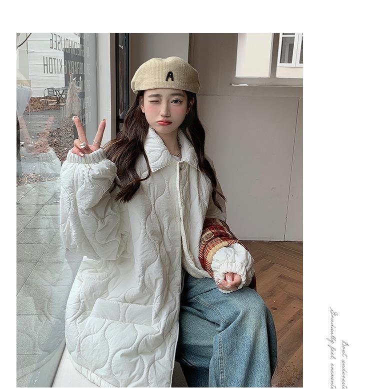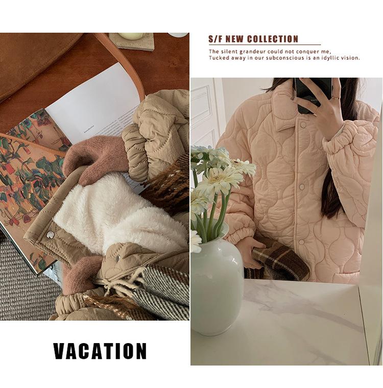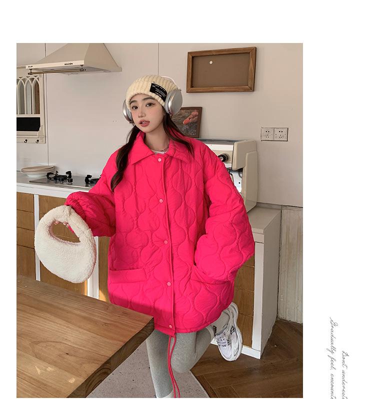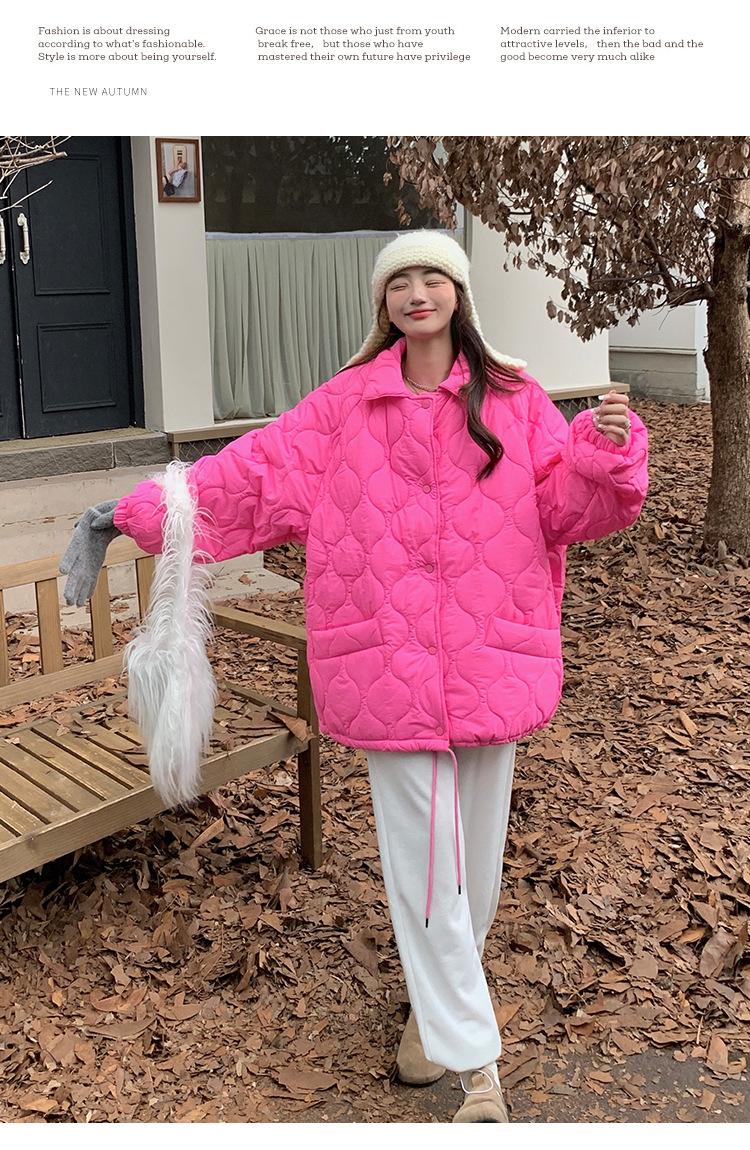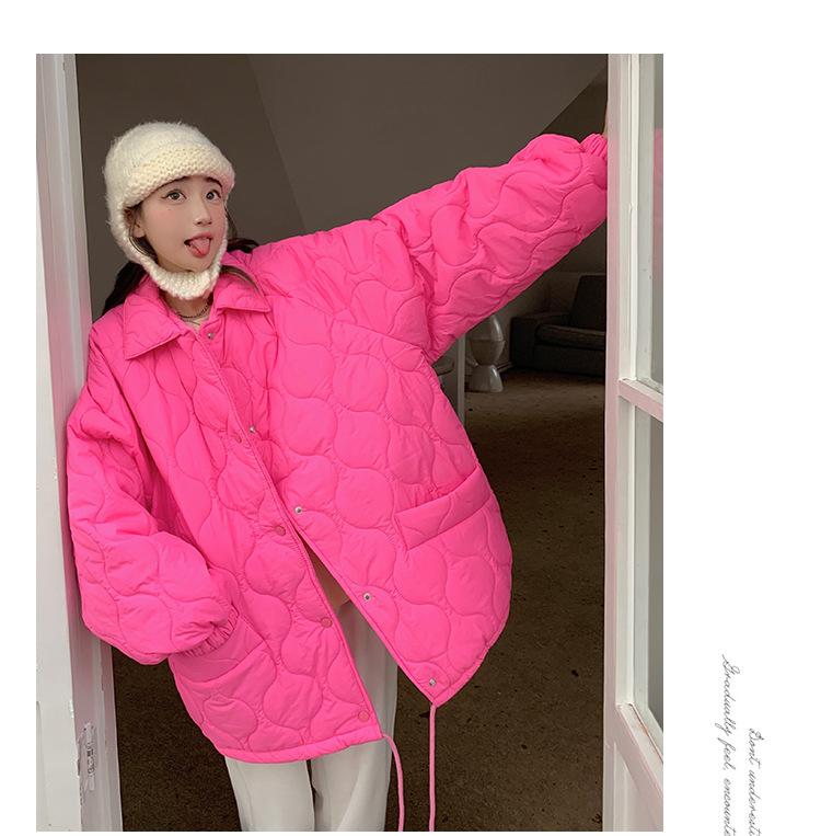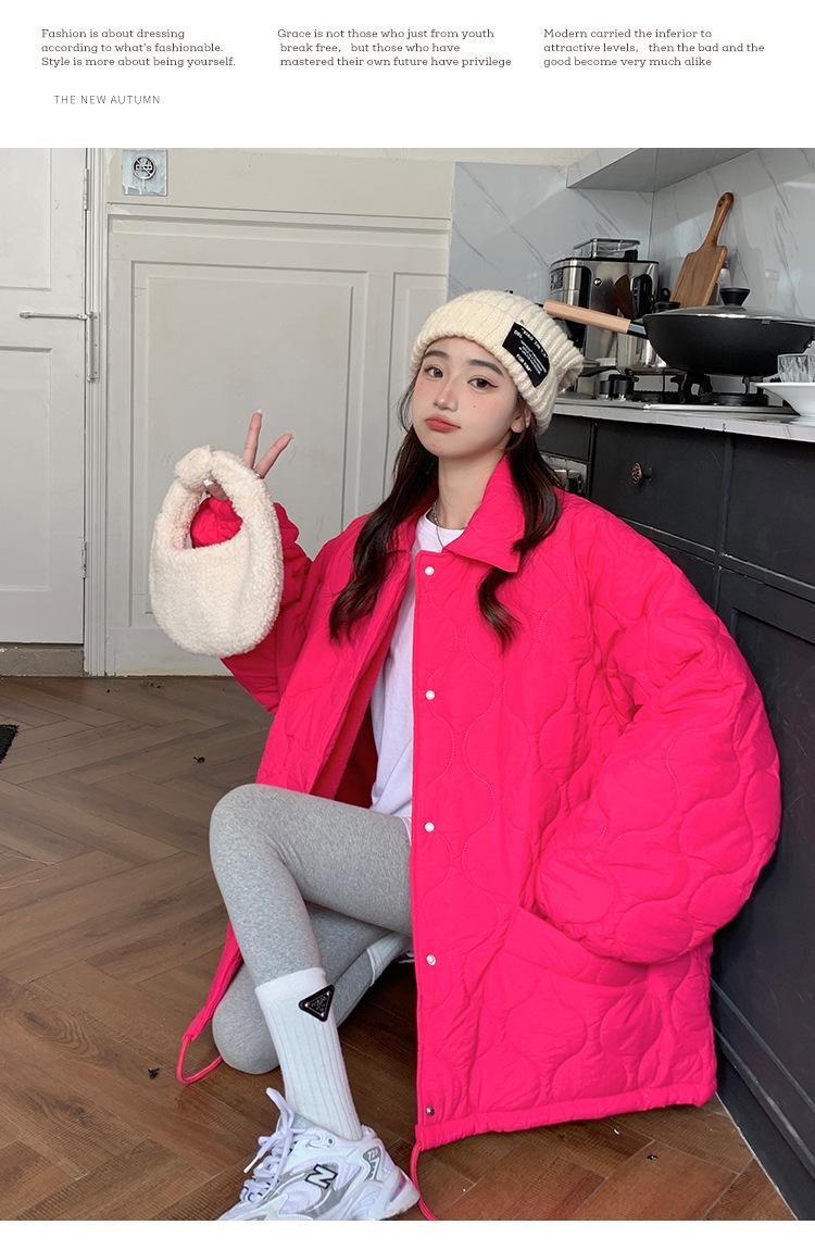 Abrigo acolchado de algodón con rombos en color dopamina para mujer, invierno 2023, nuevo abrigo holgado de lana de cordero con interior interior, abrigo acolchado de algodón grueso.