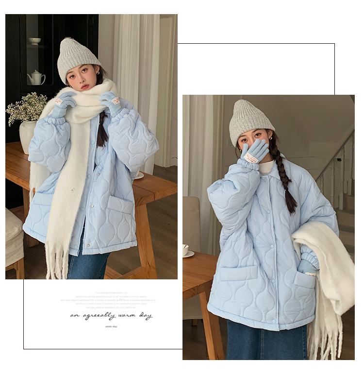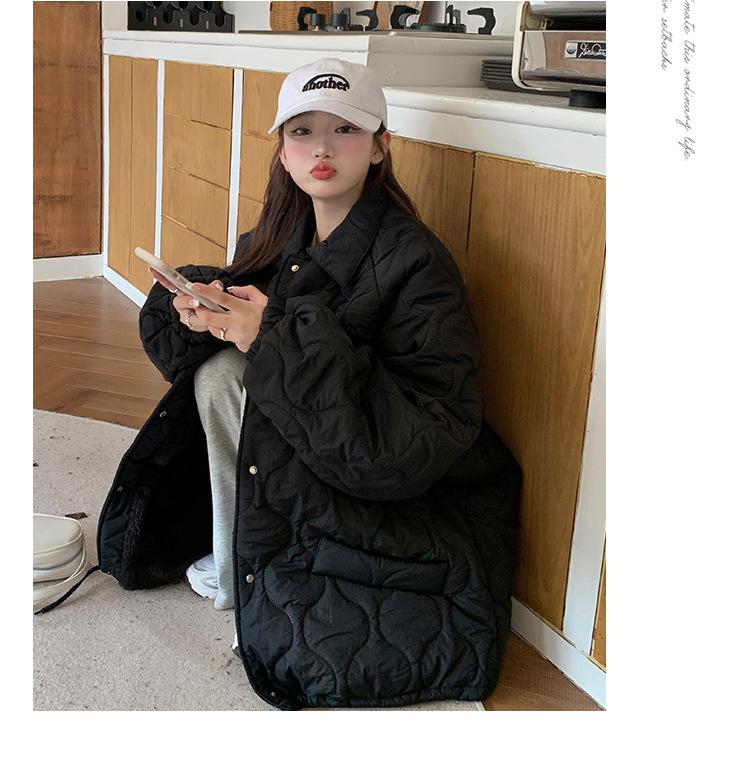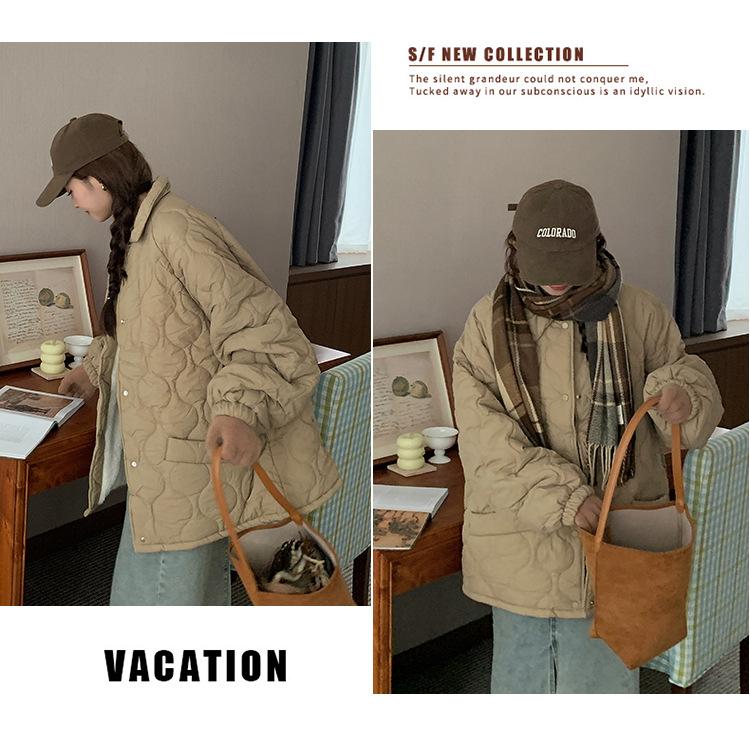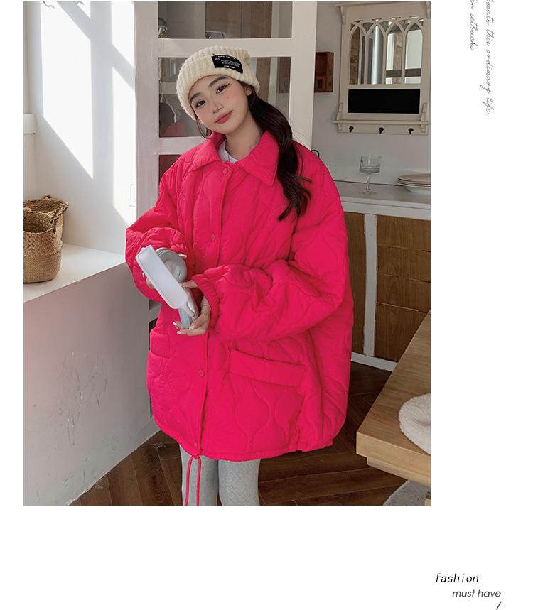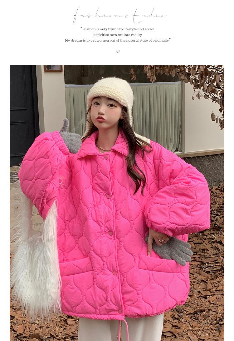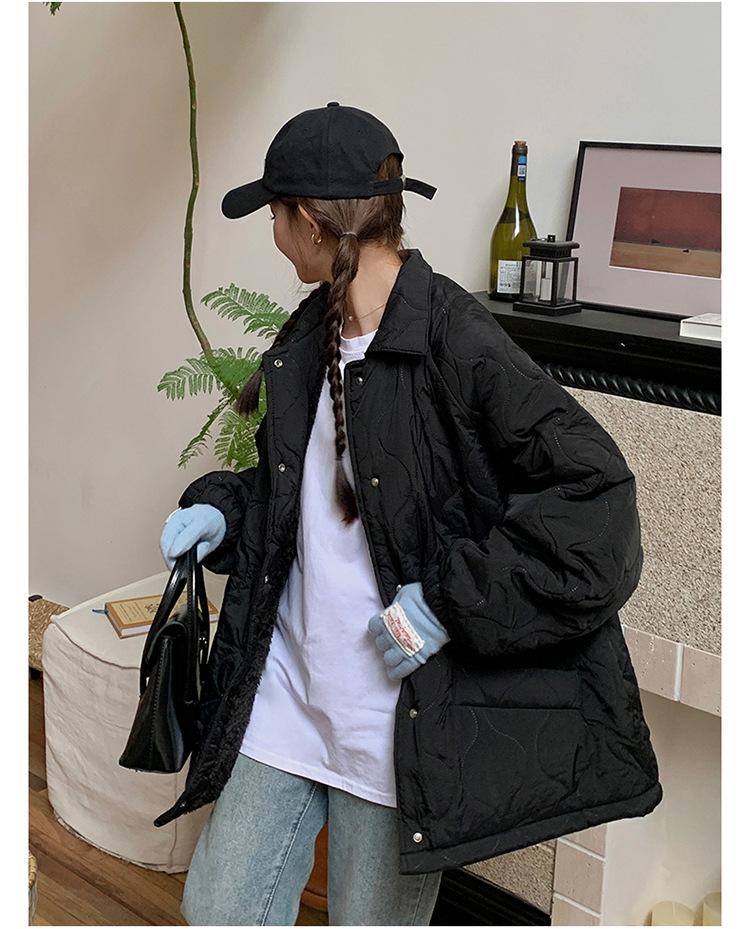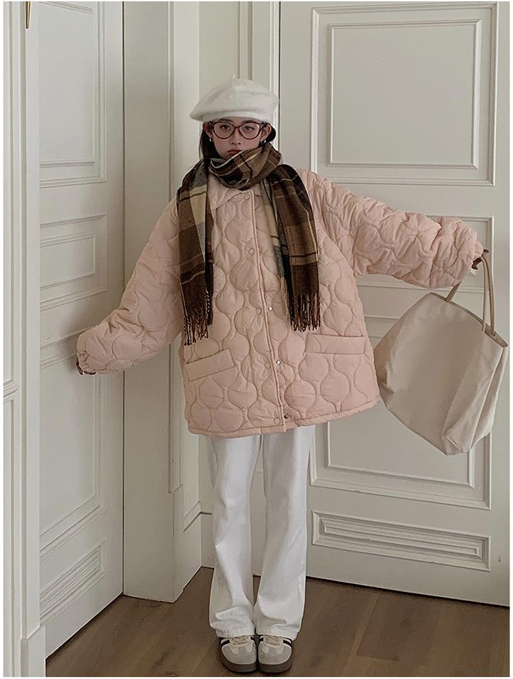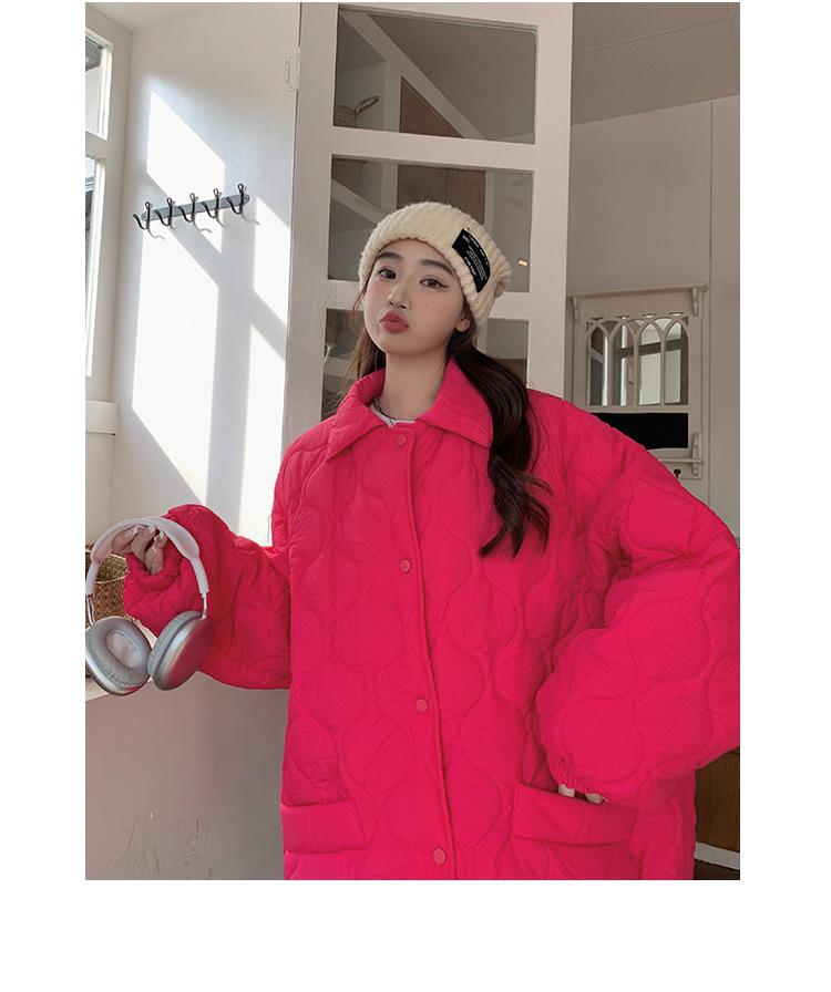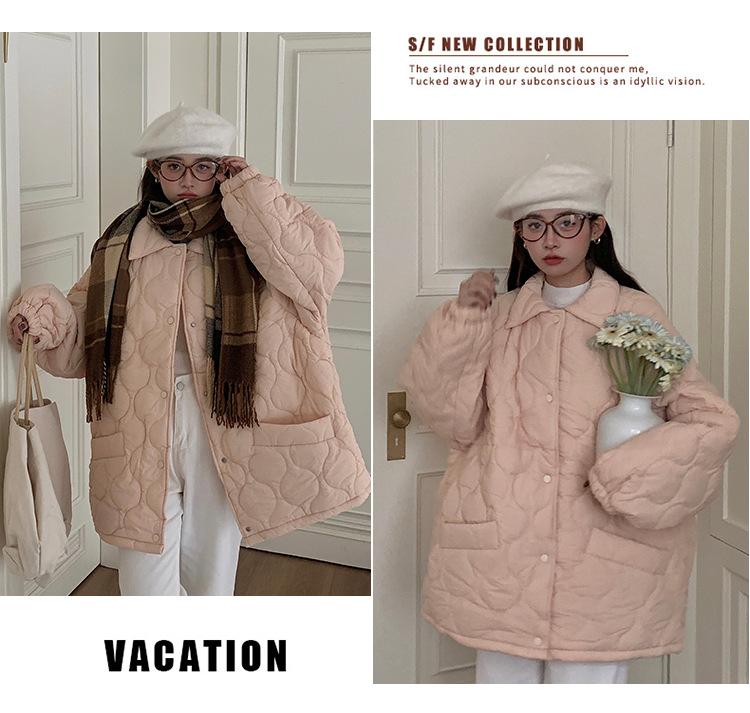 Abrigo acolchado de algodón con rombos en color dopamina para mujer, invierno 2023, nuevo abrigo holgado de lana de cordero con interior interior, abrigo acolchado de algodón grueso.