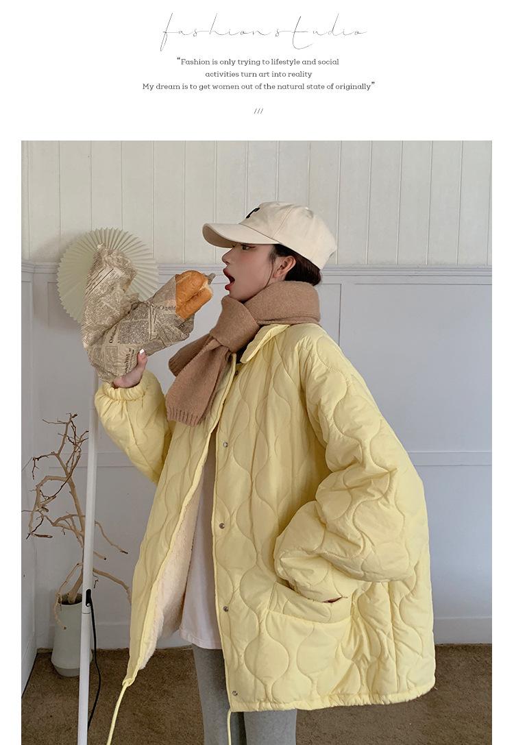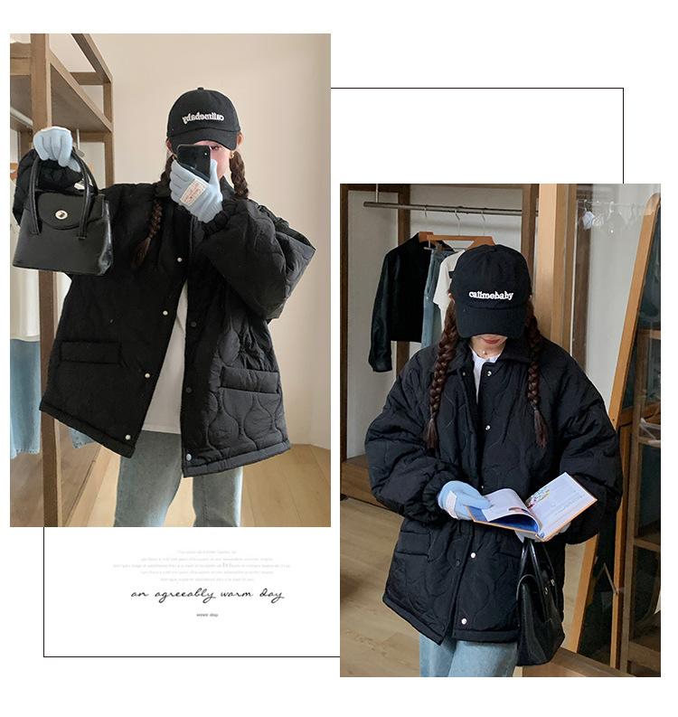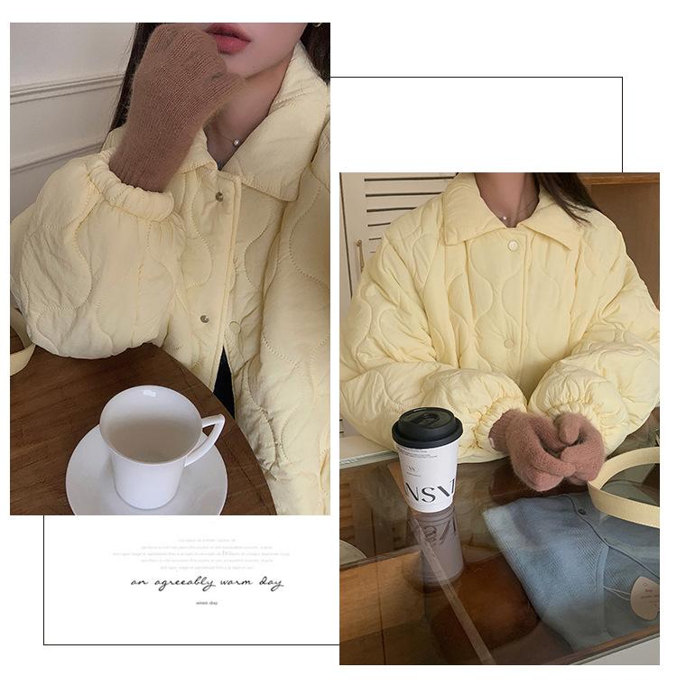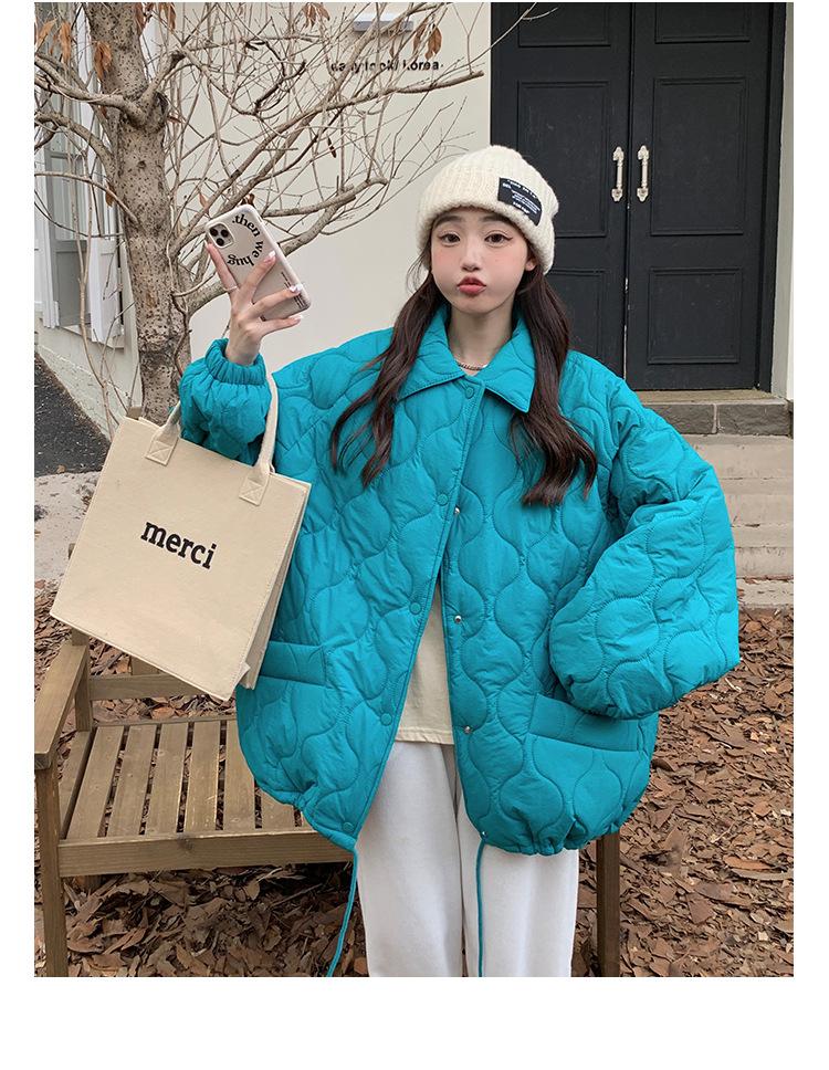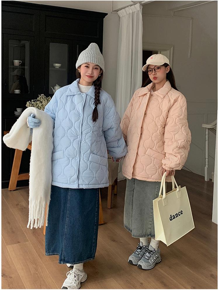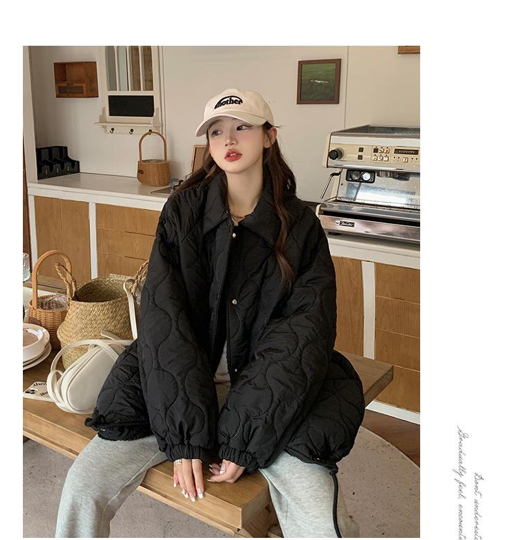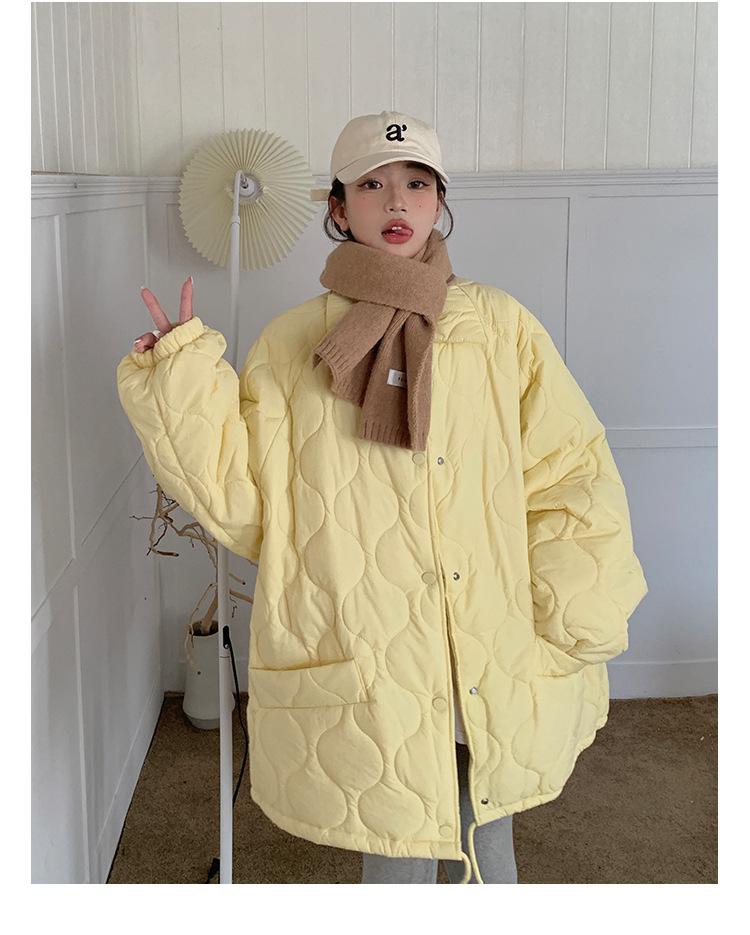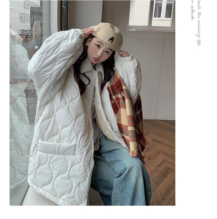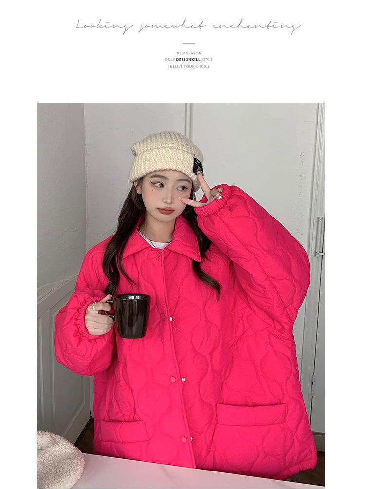 Abrigo acolchado de algodón con rombos en color dopamina para mujer, invierno 2023, nuevo abrigo holgado de lana de cordero con interior interior, abrigo acolchado de algodón grueso.