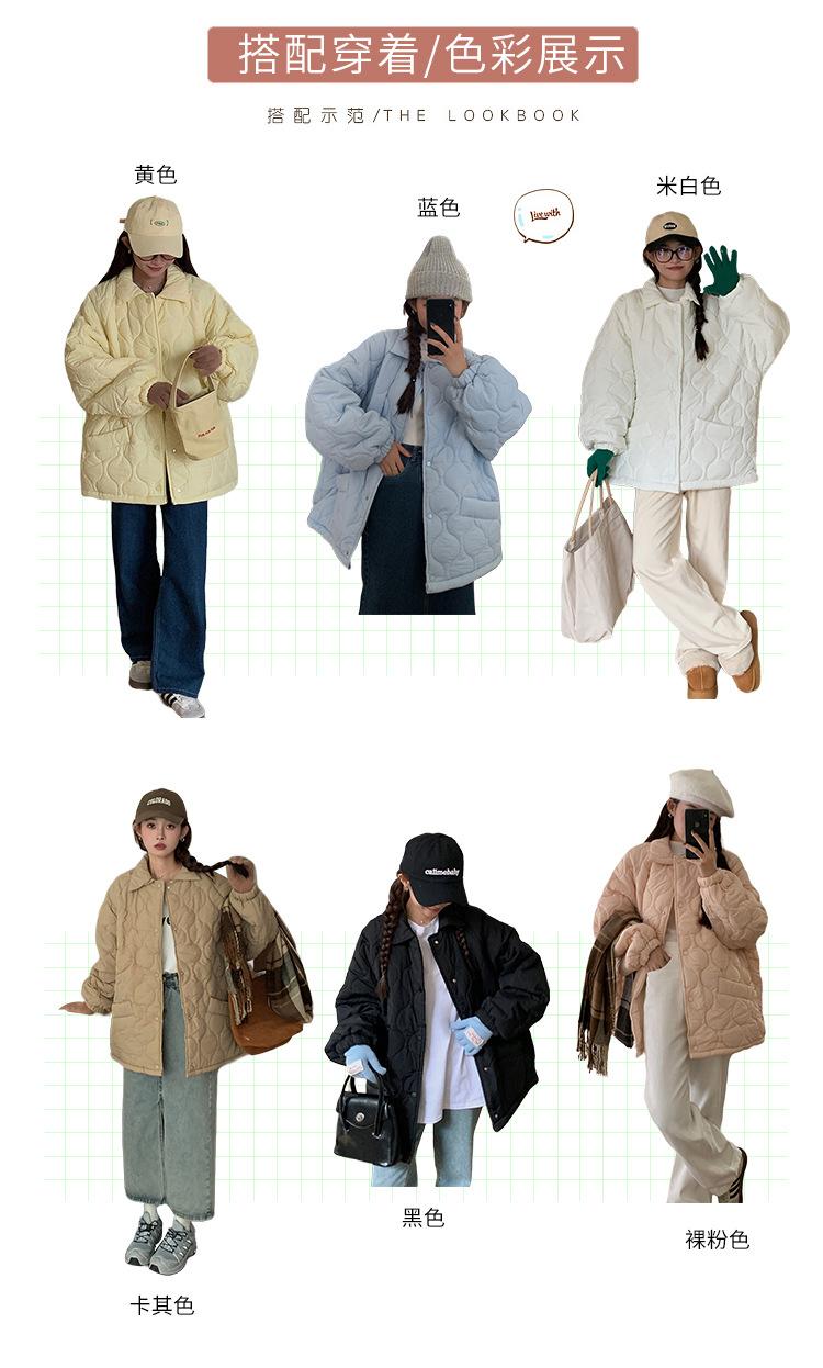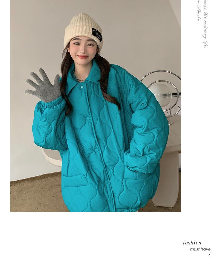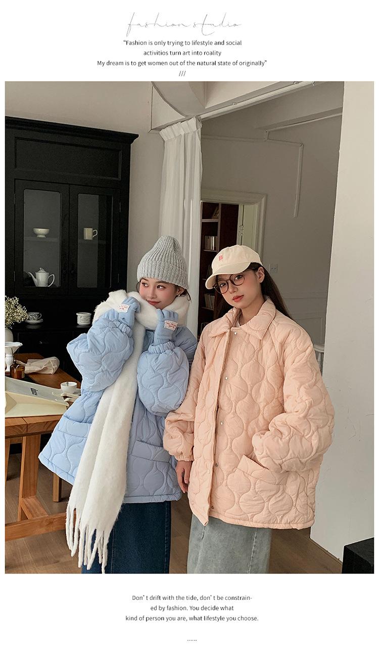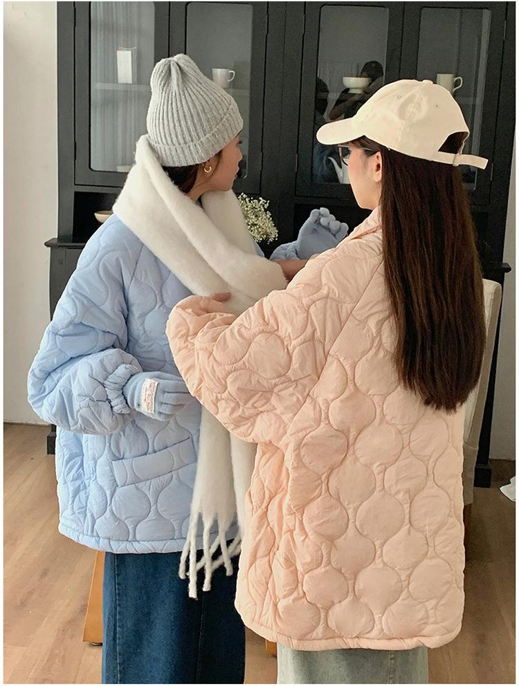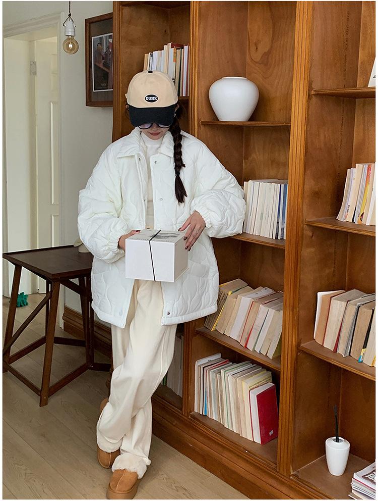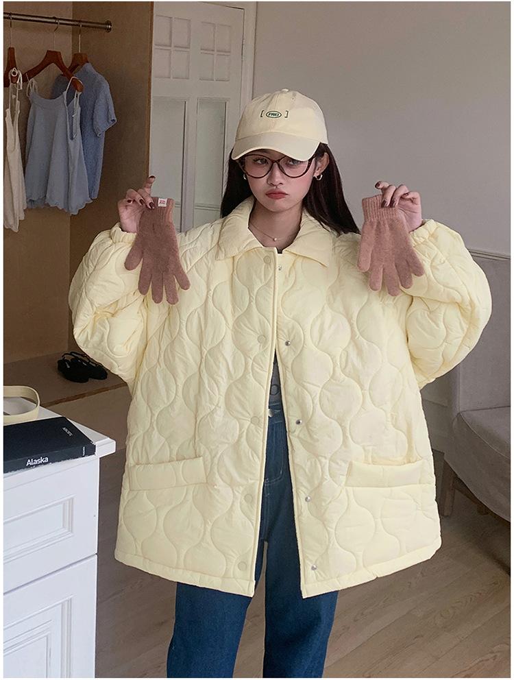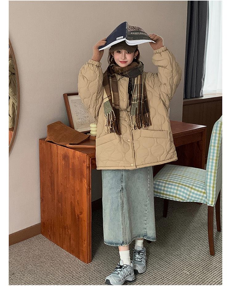 Abrigo acolchado de algodón con rombos en color dopamina para mujer, invierno 2023, nuevo abrigo holgado de lana de cordero con interior interior, abrigo acolchado de algodón grueso.