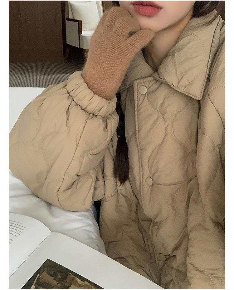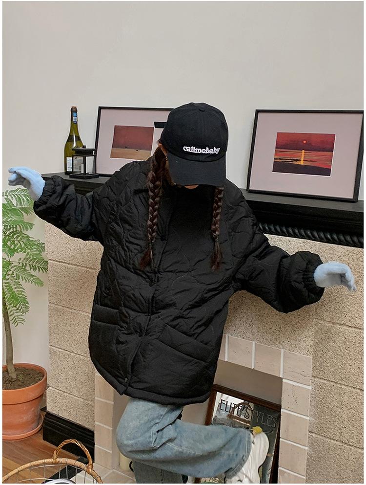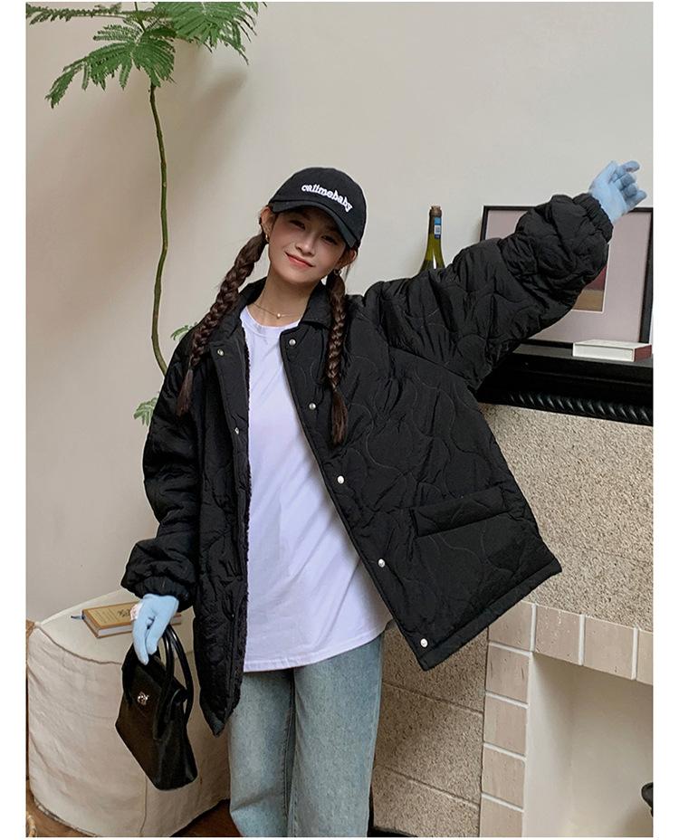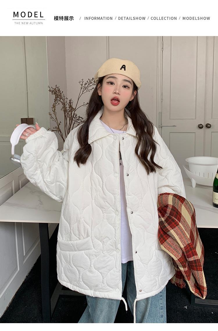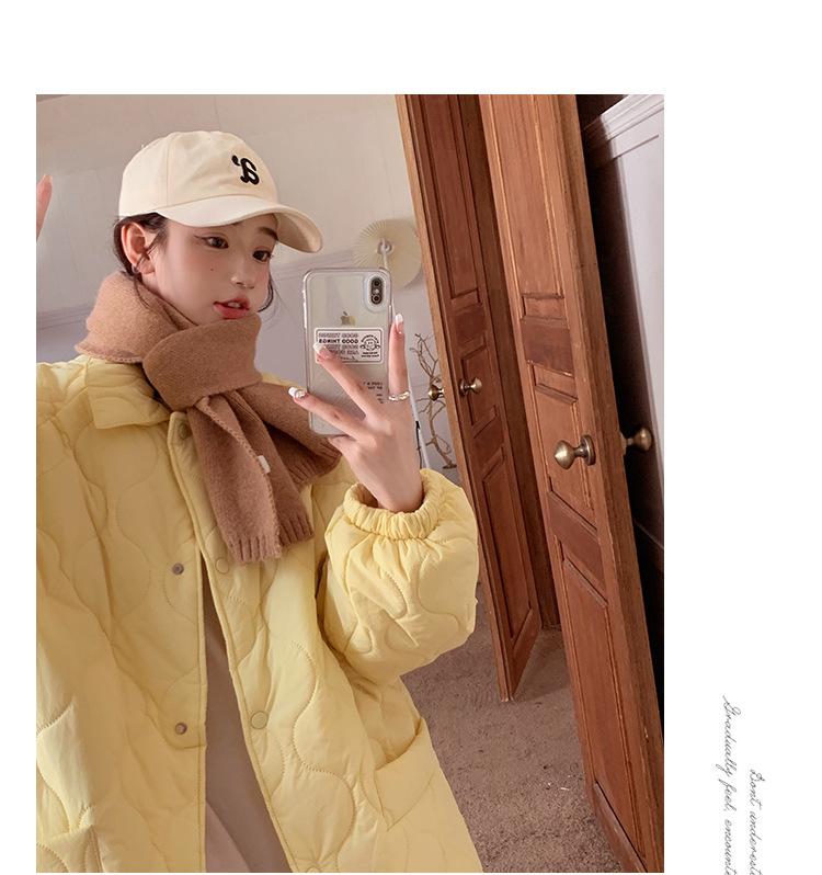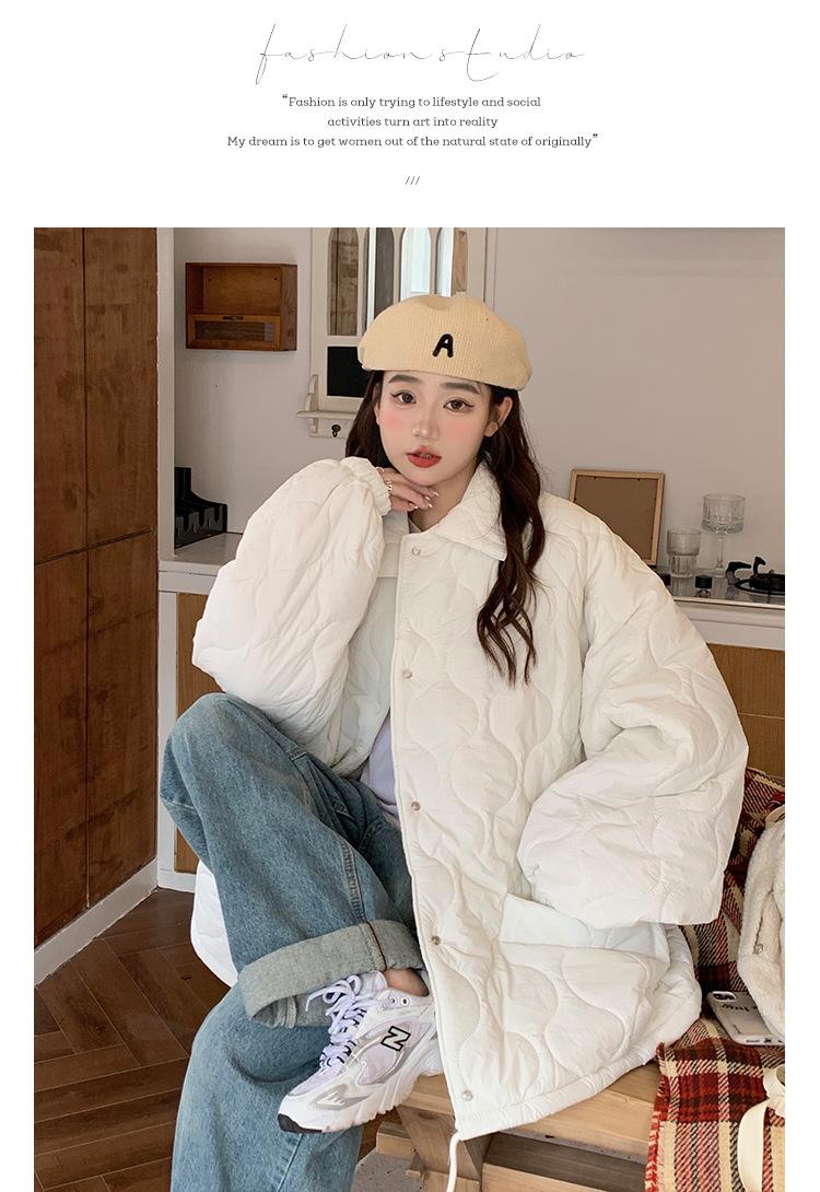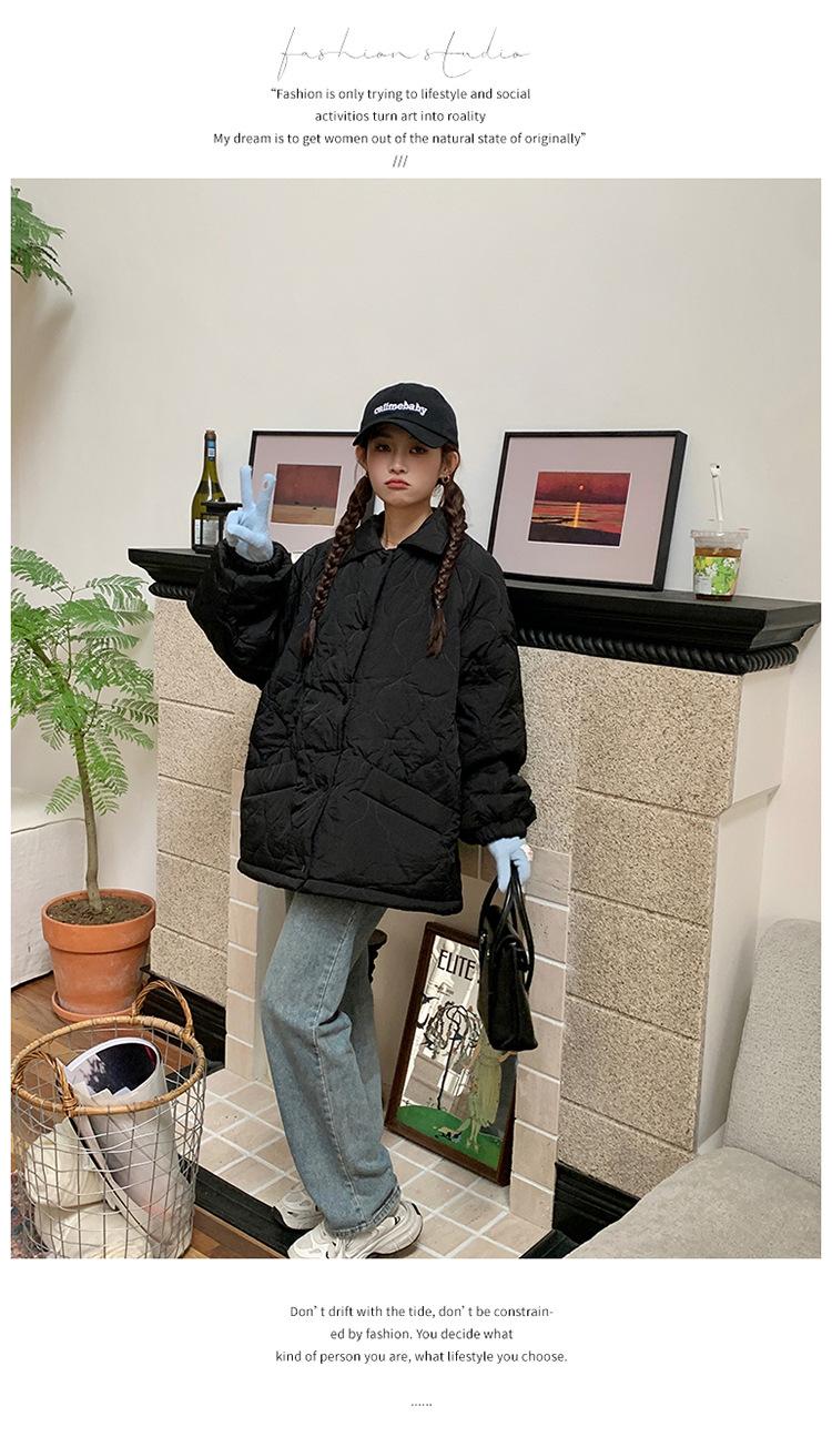 Abrigo acolchado de algodón con rombos en color dopamina para mujer, invierno 2023, nuevo abrigo holgado de lana de cordero con interior interior, abrigo acolchado de algodón grueso.
