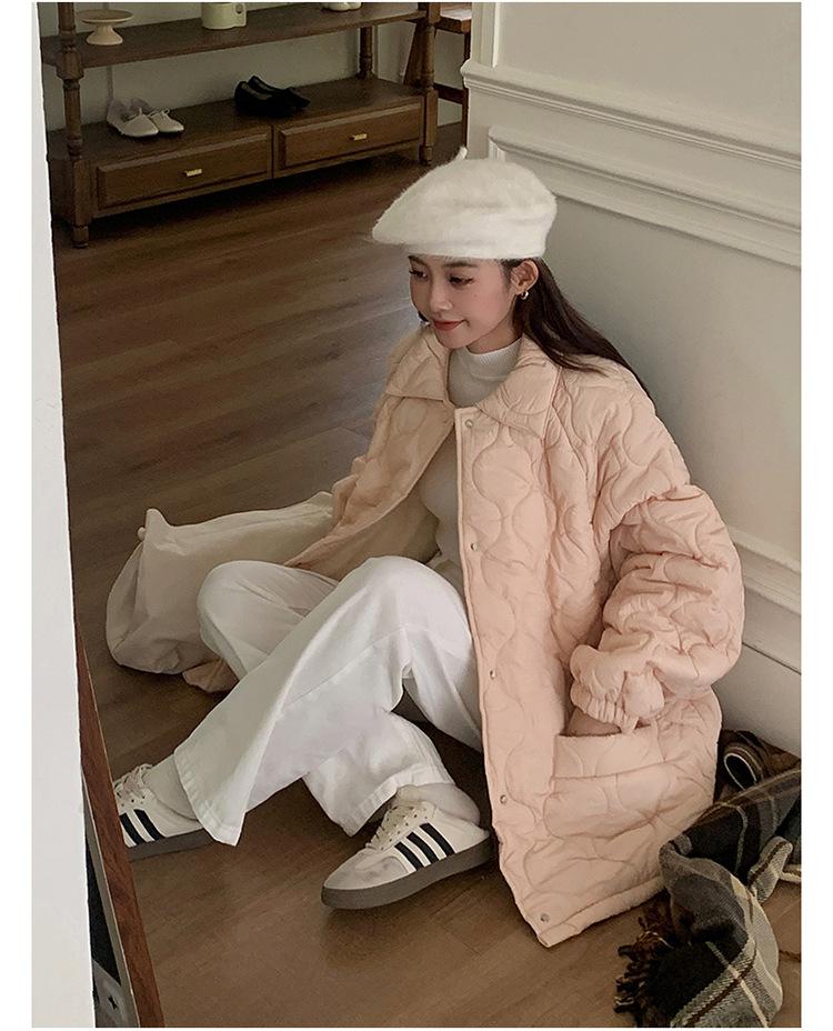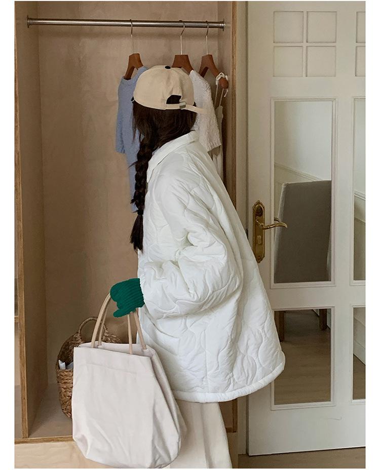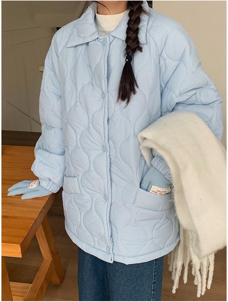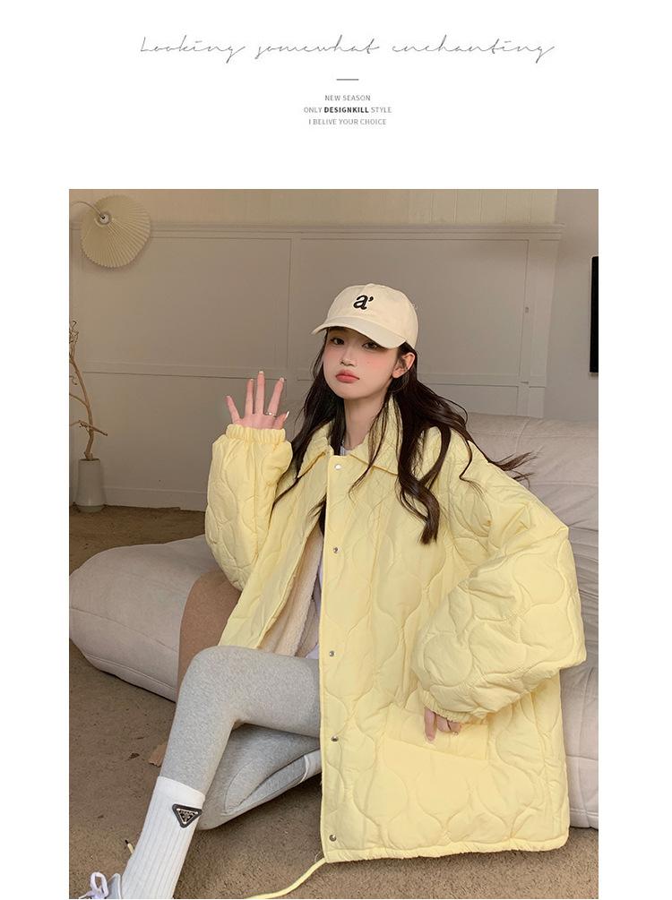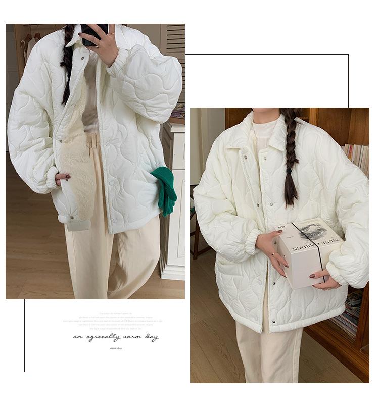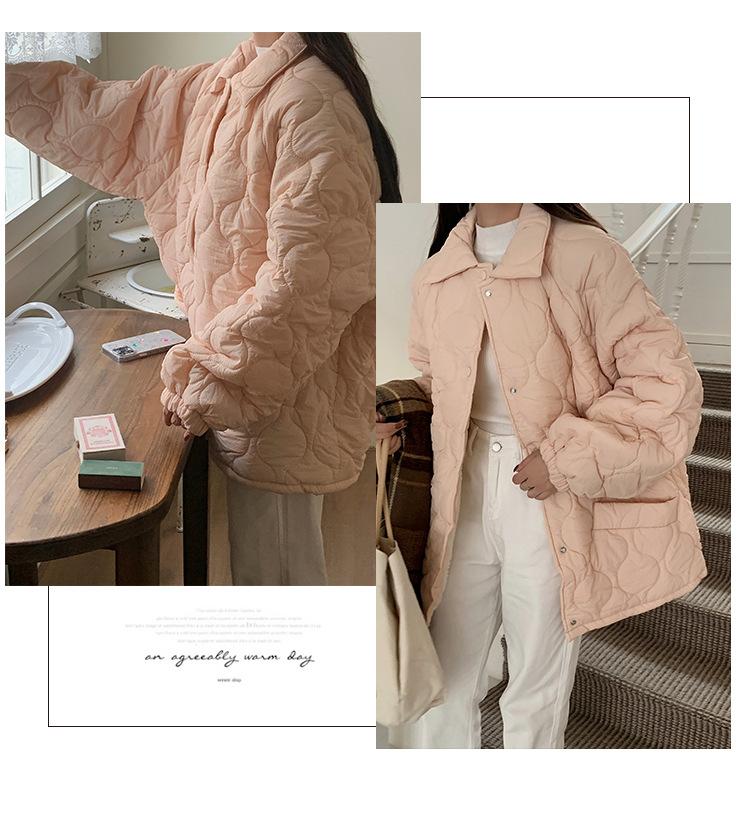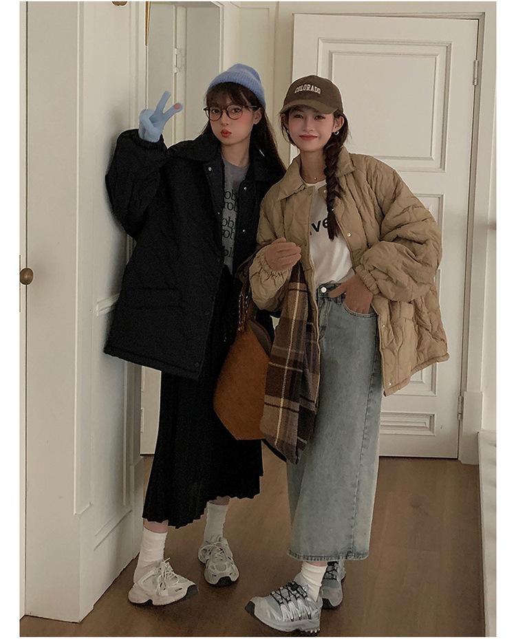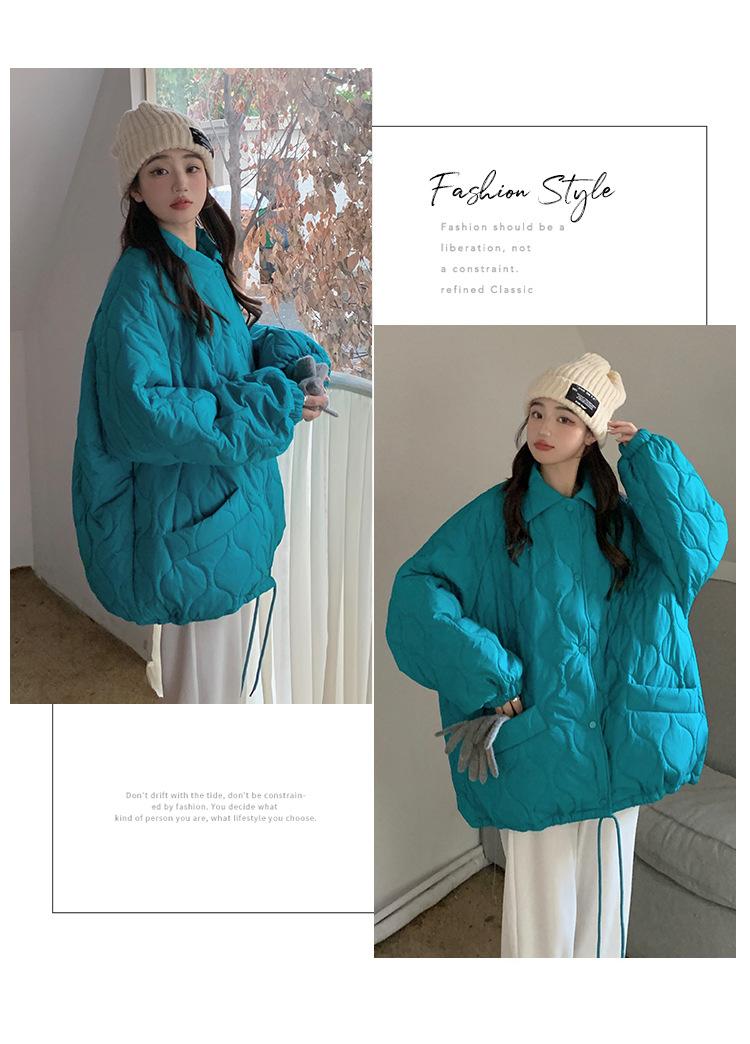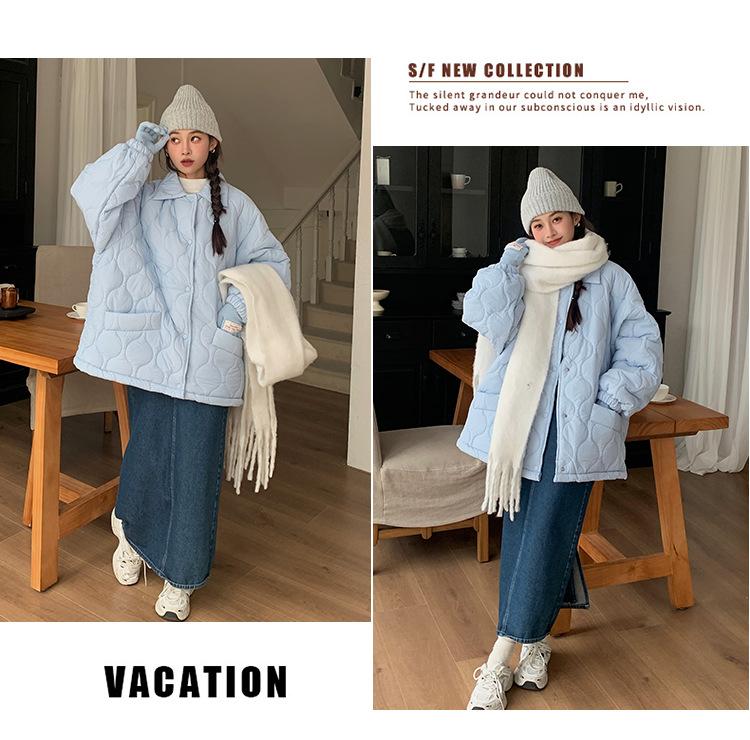 Abrigo acolchado de algodón con rombos en color dopamina para mujer, invierno 2023, nuevo abrigo holgado de lana de cordero con interior interior, abrigo acolchado de algodón grueso.