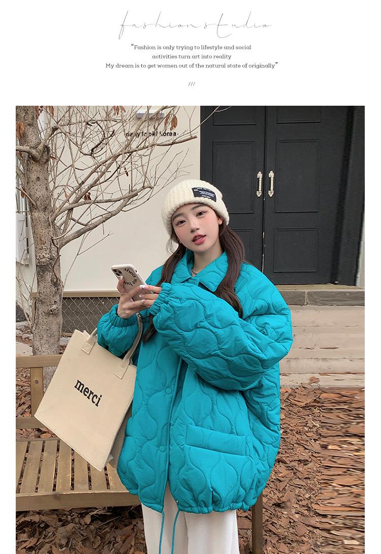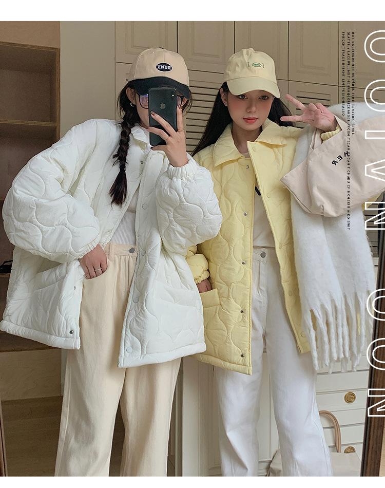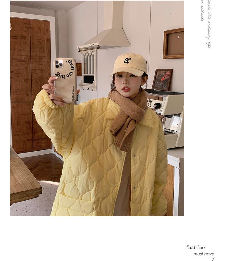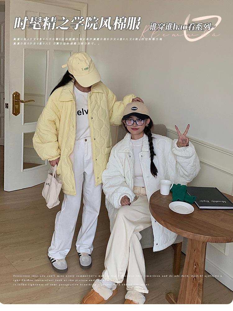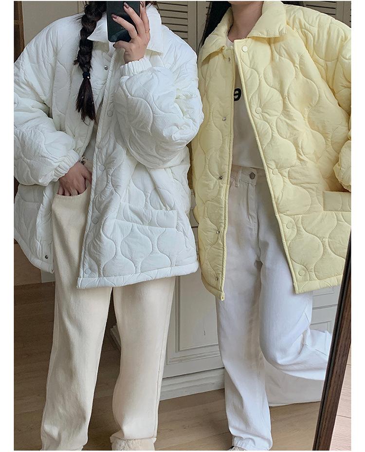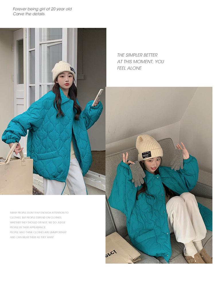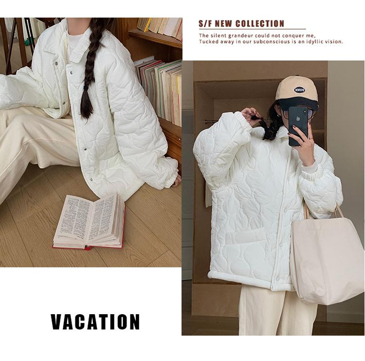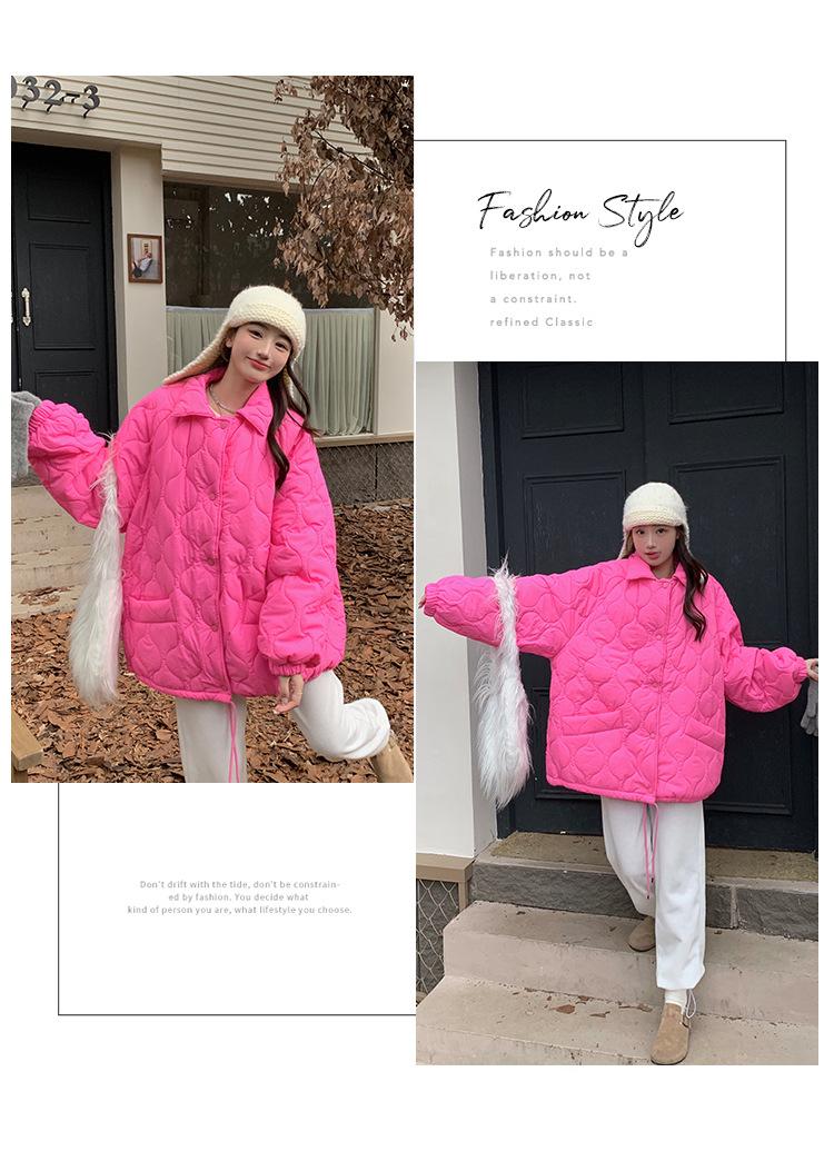 Abrigo acolchado de algodón con rombos en color dopamina para mujer, invierno 2023, nuevo abrigo holgado de lana de cordero con interior interior, abrigo acolchado de algodón grueso.