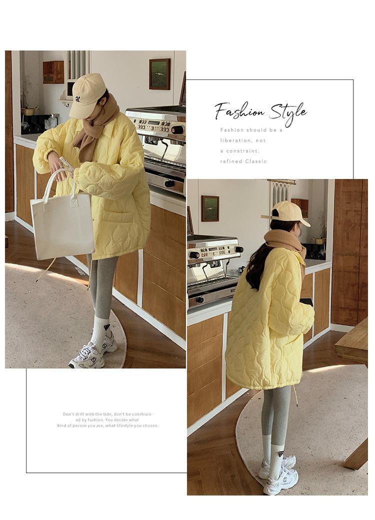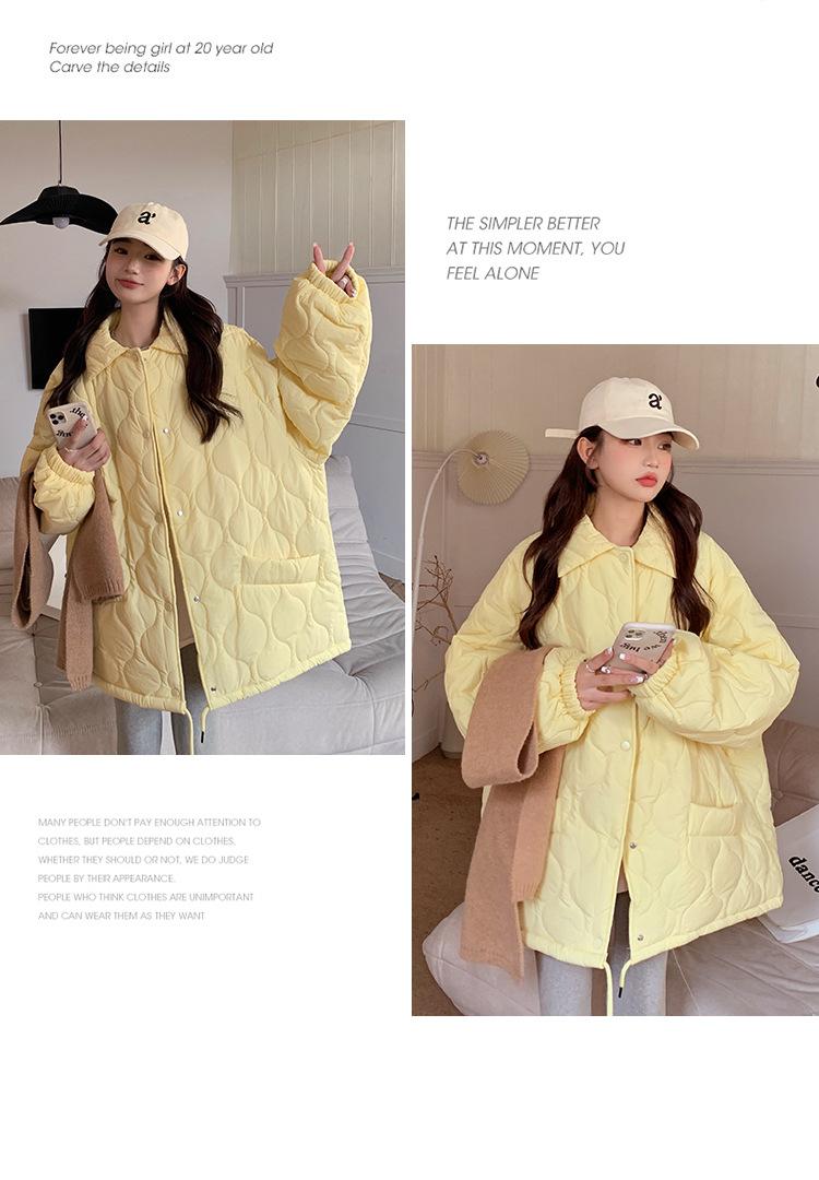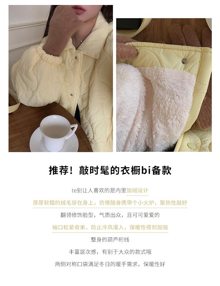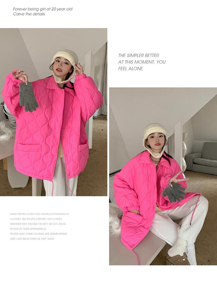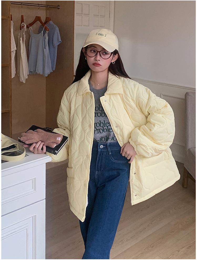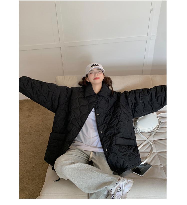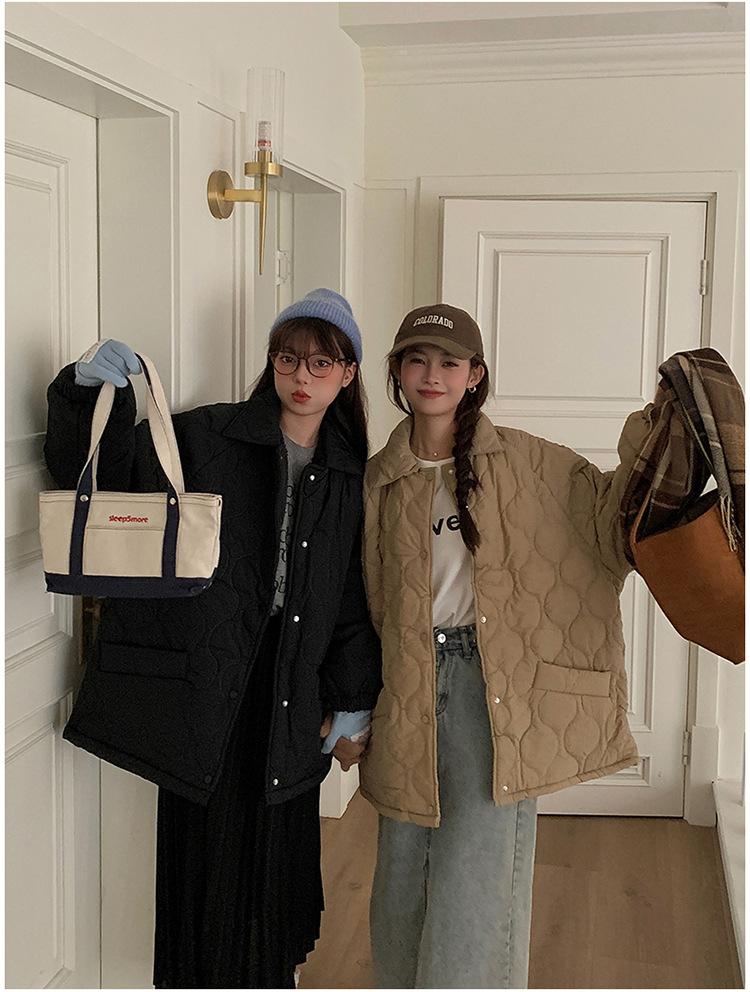 Abrigo acolchado de algodón con rombos en color dopamina para mujer, invierno 2023, nuevo abrigo holgado de lana de cordero con interior interior, abrigo acolchado de algodón grueso.