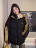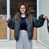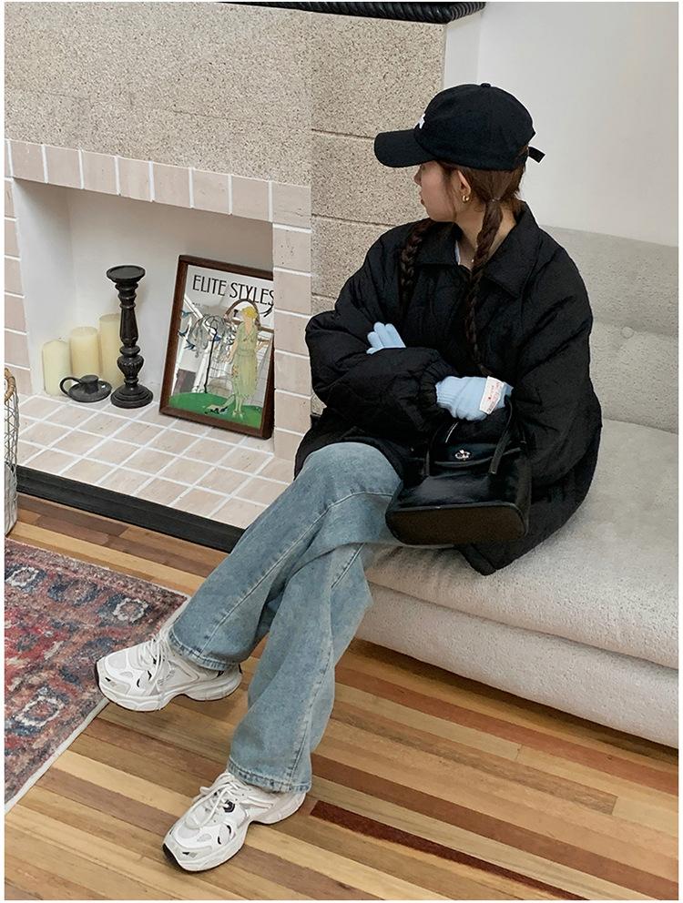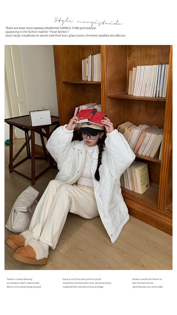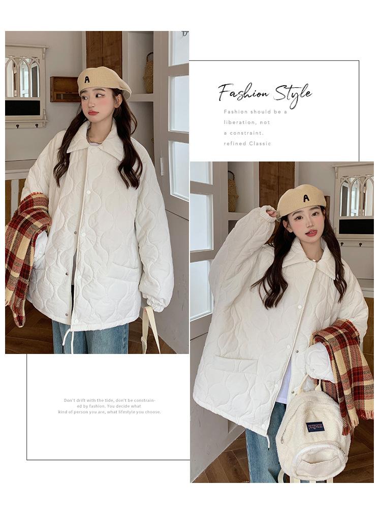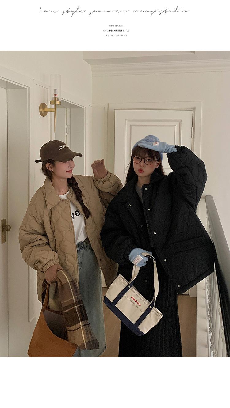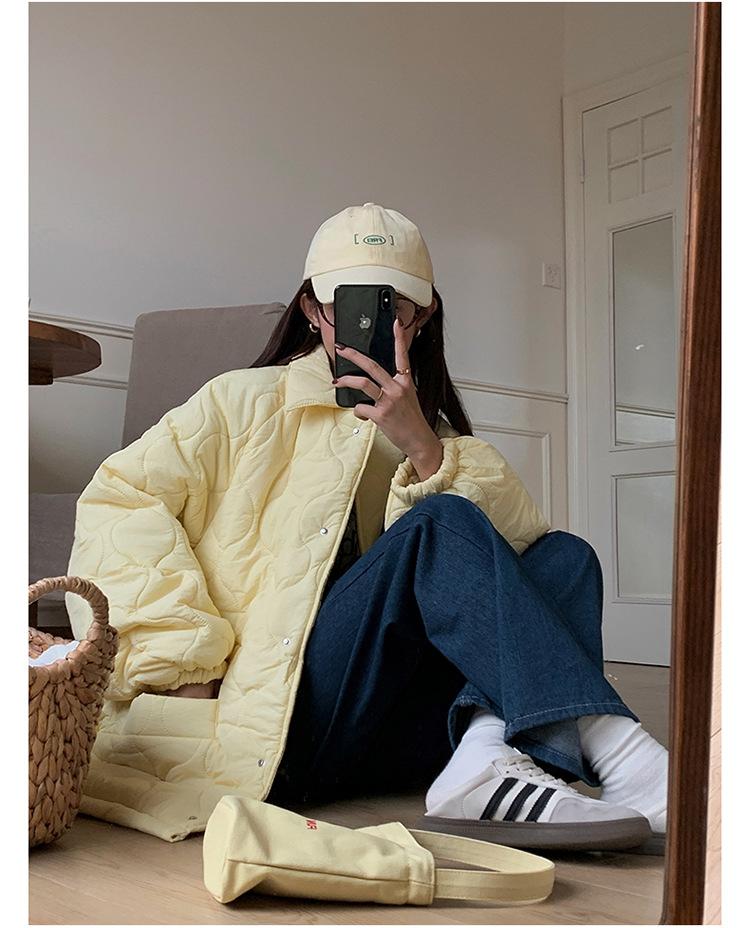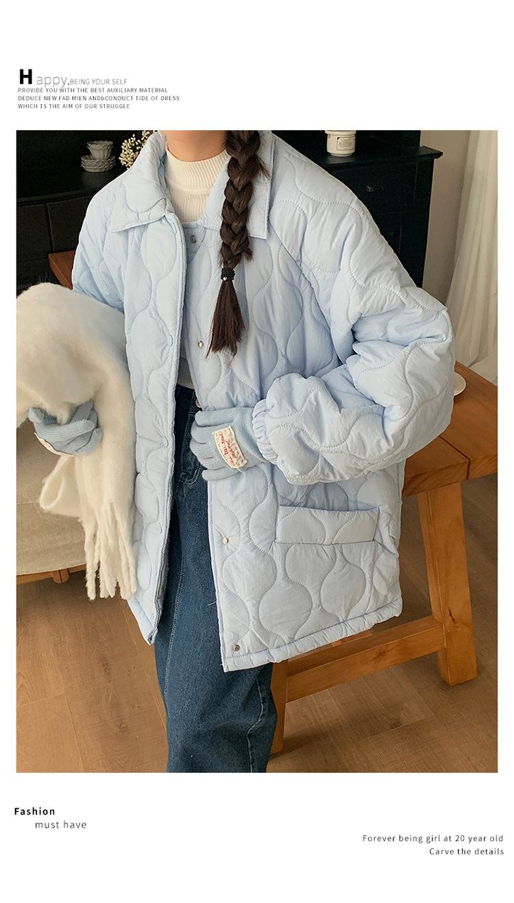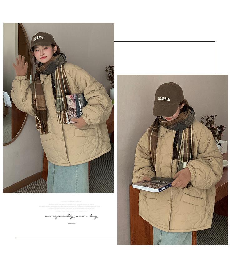 Abrigo acolchado de algodón con rombos en color dopamina para mujer, invierno 2023, nuevo abrigo holgado de lana de cordero con interior interior, abrigo acolchado de algodón grueso.