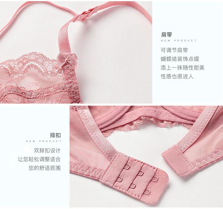 Lencería Sexy de Encaje Europeo y Americano para Busto Grande, Brasier Anticaída, Conjunto de Lencería de Talla Grande Transpirable Sin Esponja Ultrafino
