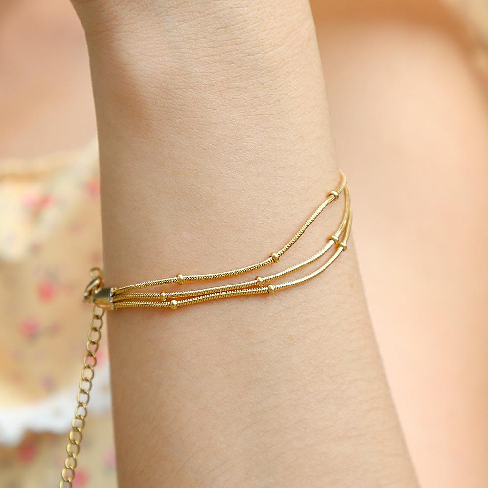 Europa y Estados Unidos pulsera transfronteriza de lujo de acero inoxidable con tres cuentas doradas pulsera para mujer joyería de alto nivel para chicas