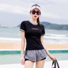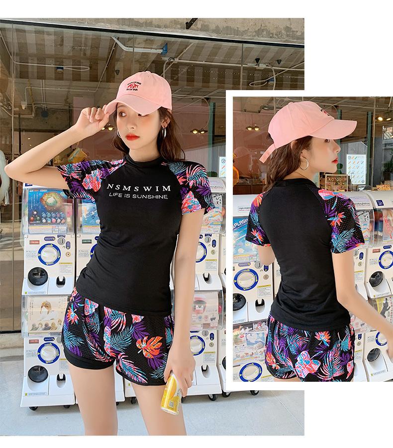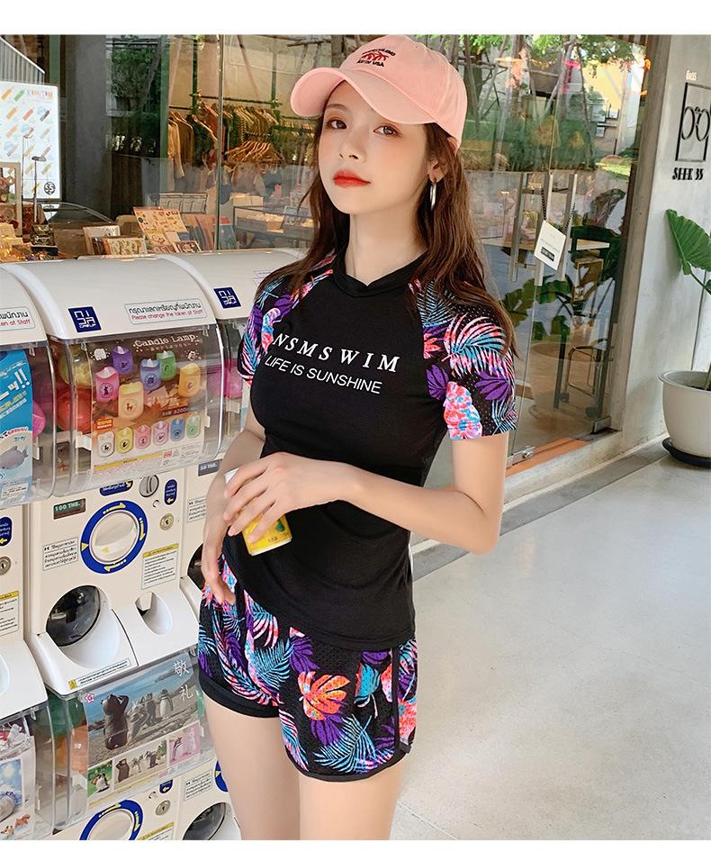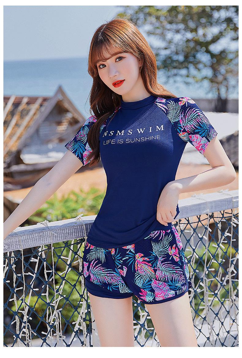 Traje de Baño de Dos Piezas para Mujer, Traje de Baño Conservador de Manga Corta Adelgazante y a la Moda con Estilo Boyshort, Diseño Deportivo