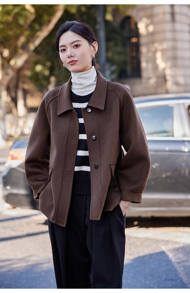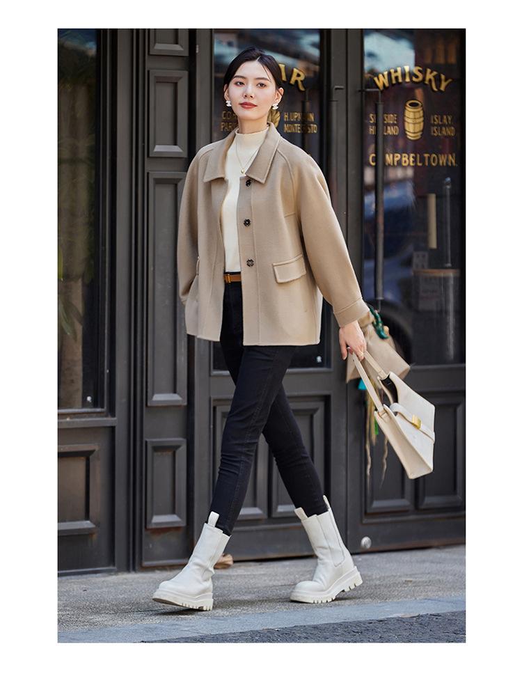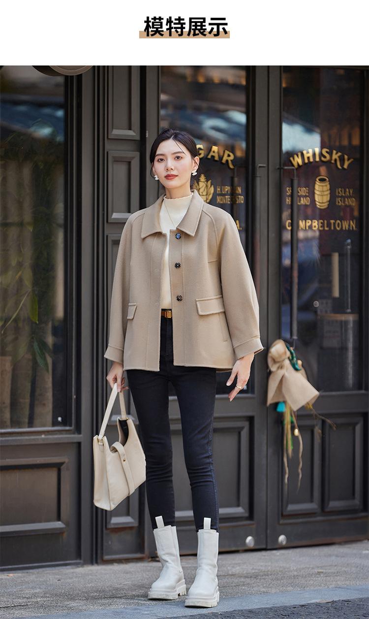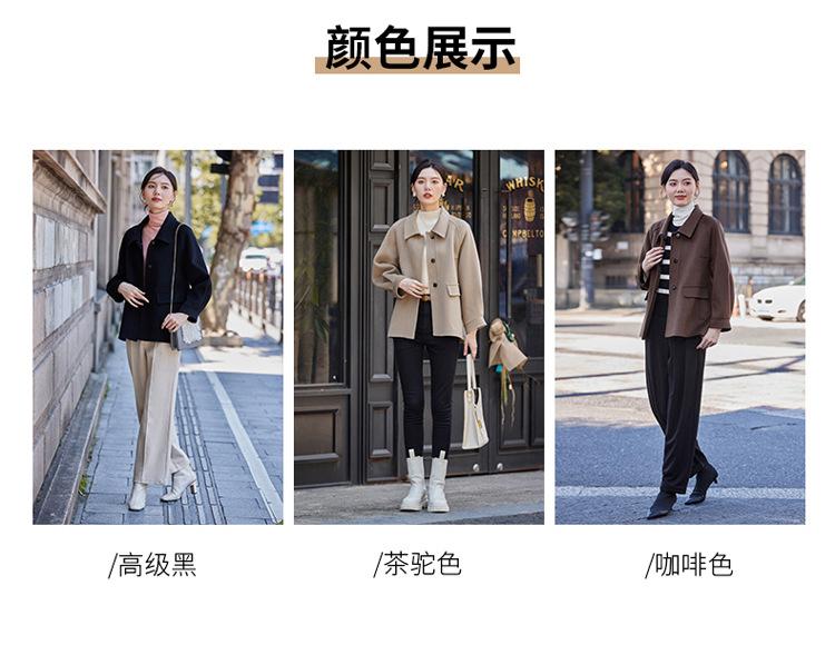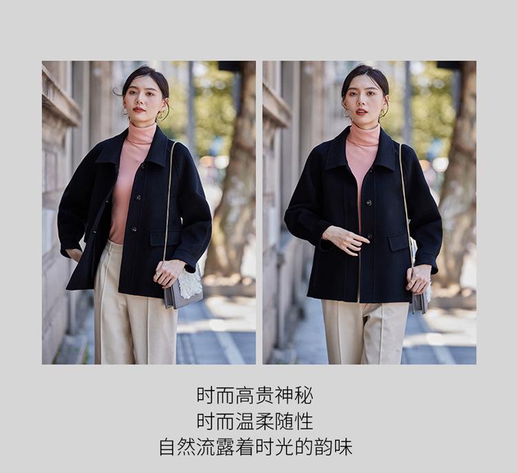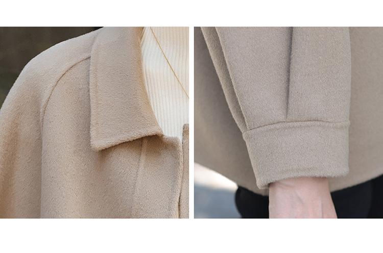 Abrigo de cachemira de doble cara para mujer, nuevo abrigo de lana corto con solapa pequeña y mangas raglán para otoño e invierno.