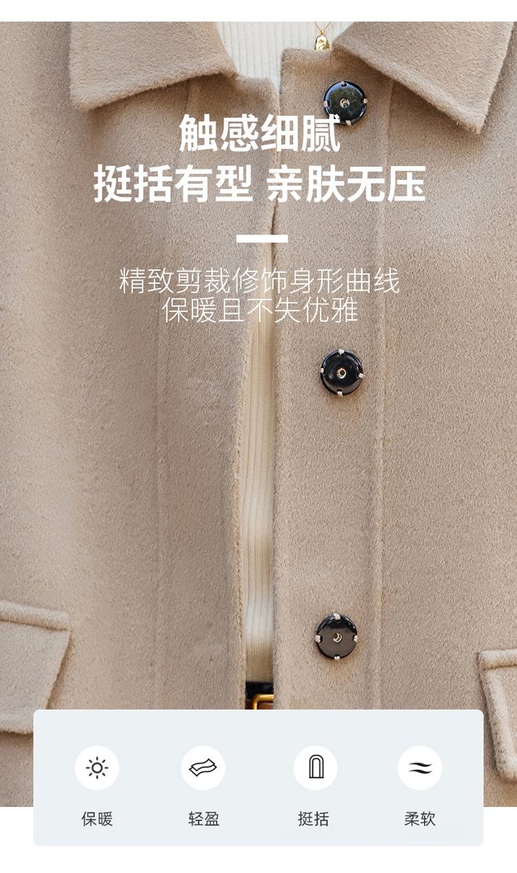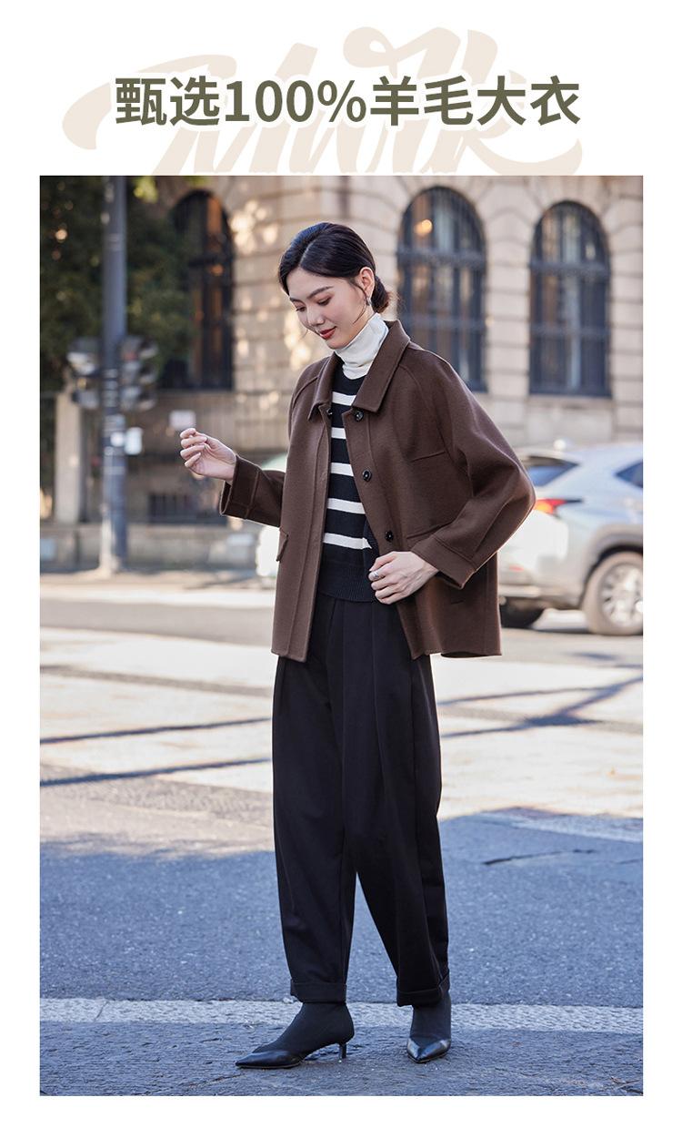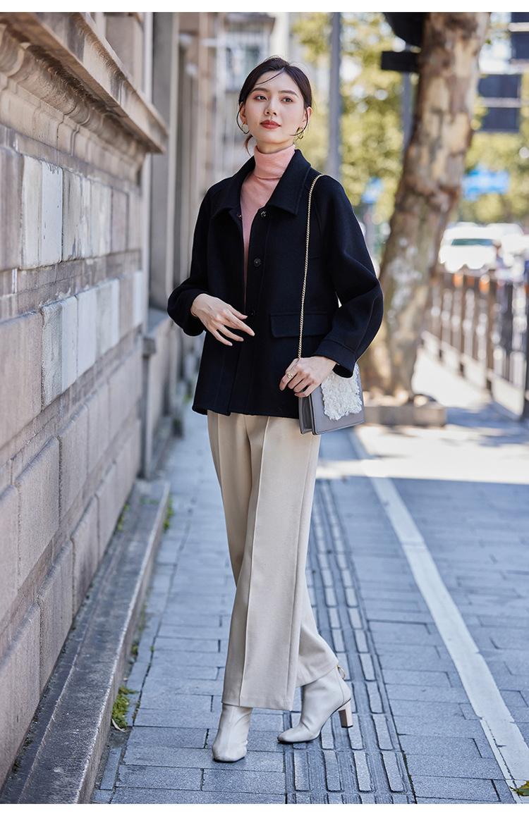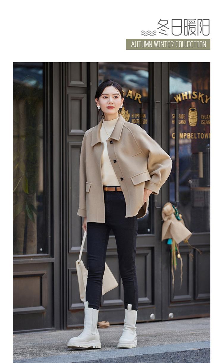 Abrigo de cachemira de doble cara para mujer, nuevo abrigo de lana corto con solapa pequeña y mangas raglán para otoño e invierno.