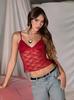 2024 Verano Nuevo Europeo y Americano Transfronterizo Cuello en V Tirantes Pecho Lazo Camiseta Ajustada Perspectiva Sexy Espalda Descubierta Top