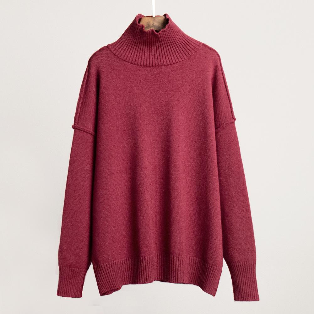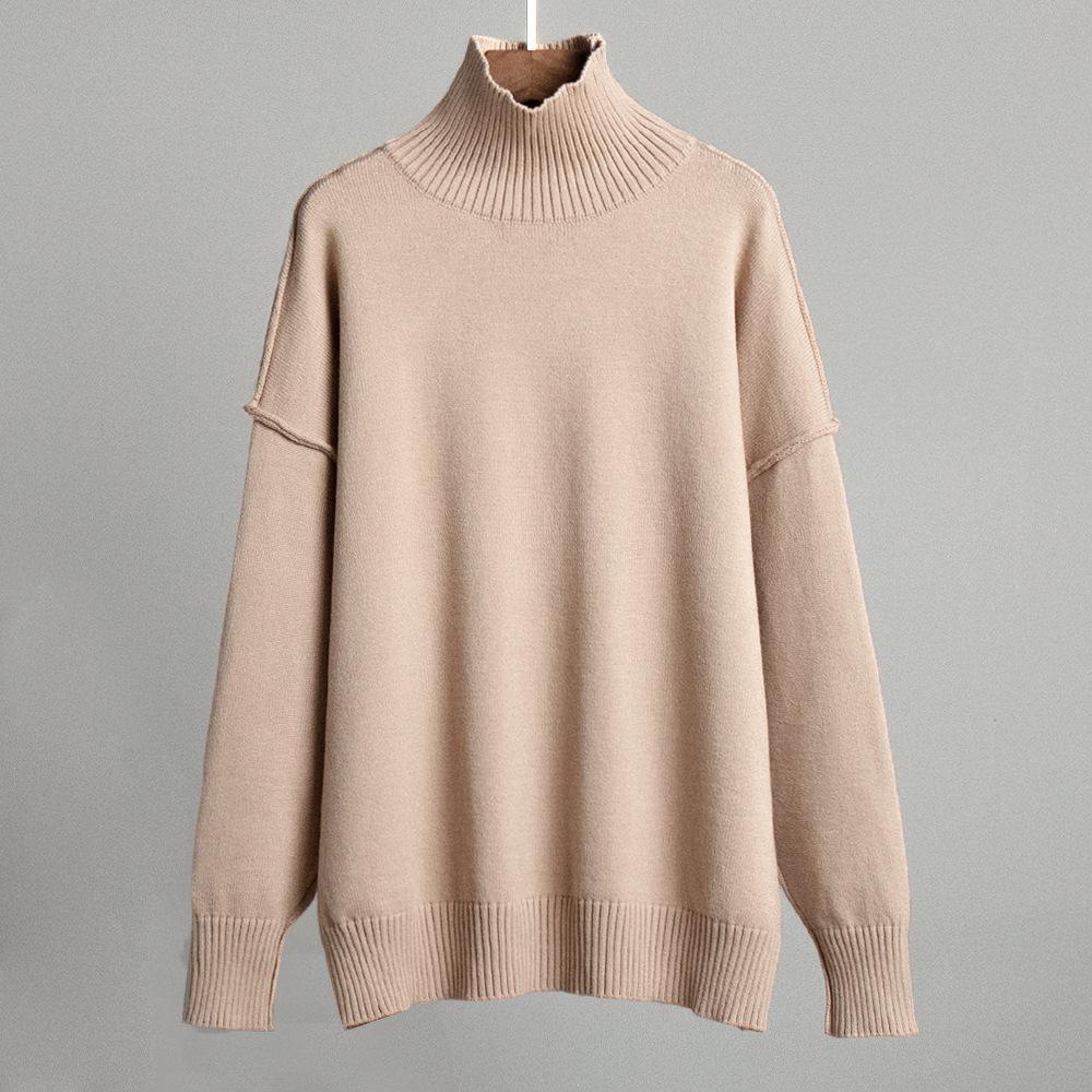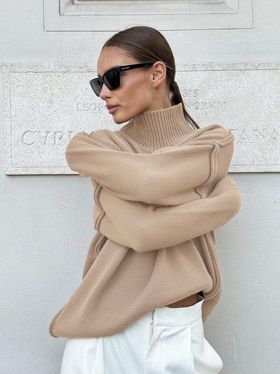 Suéter de cuello alto con costuras cruzadas para mujer, estilo europeo y americano, otoño e invierno, nuevo, informal, holgado, grueso, jersey de punto