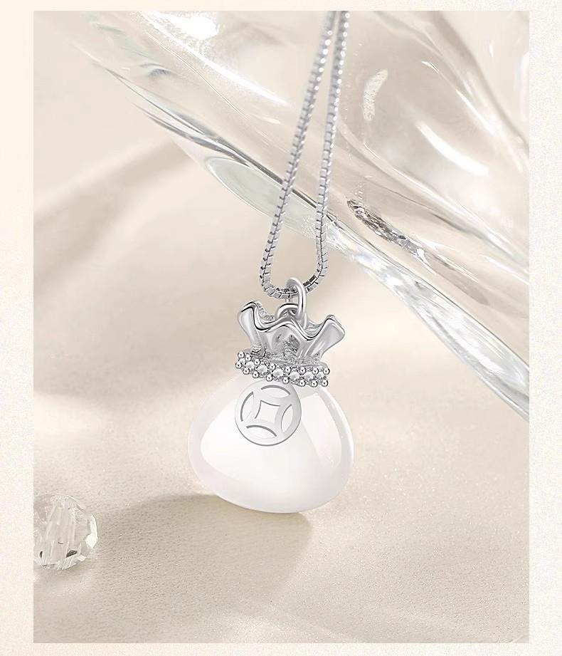 Collar de calcedonia blanca para mujer, combina con todo, de alta gama, ligero, de lujo, pequeño, nuevo, estilo chino, exquisito, de alta gama, sencillo, regalo de cumpleaños