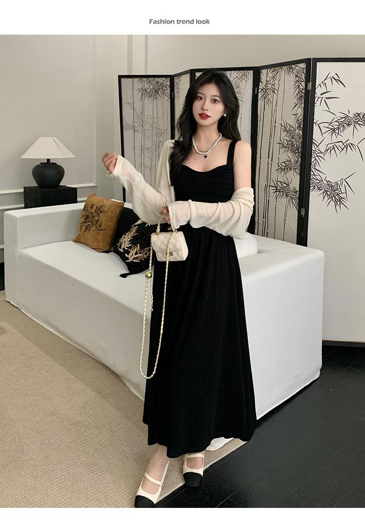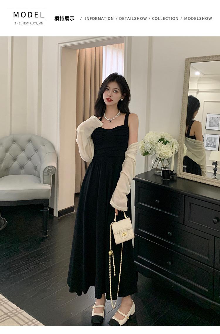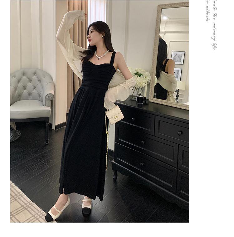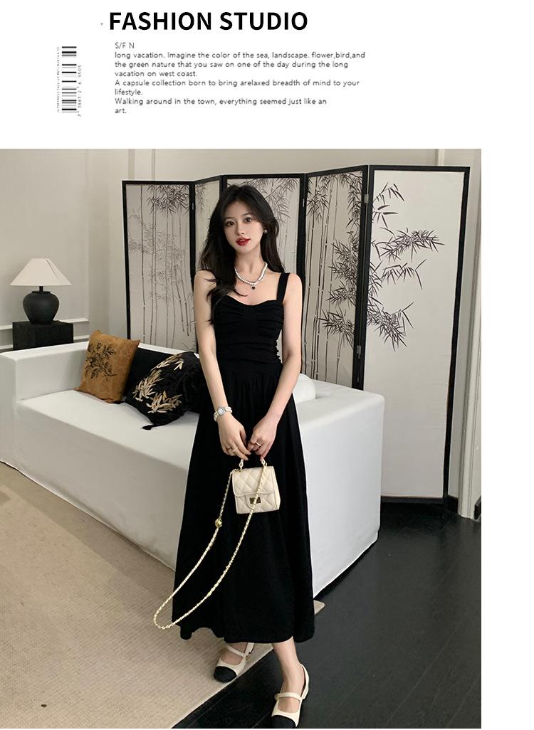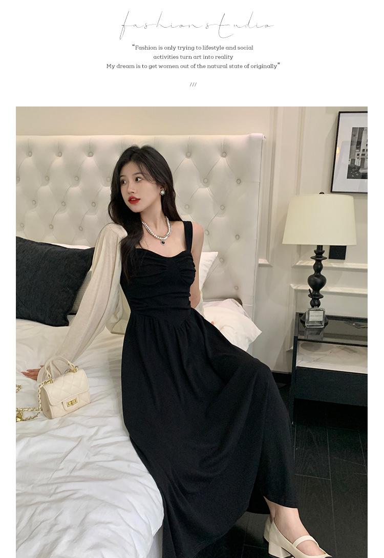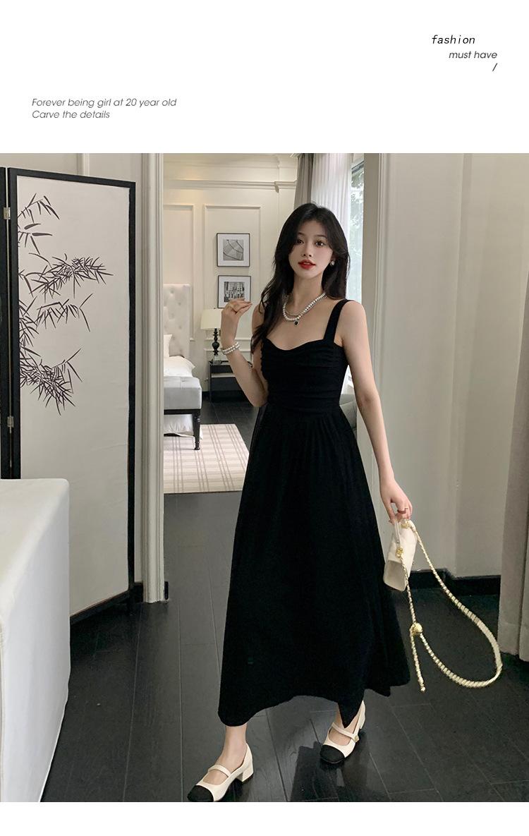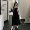 Vestido Delgado Negro Talla Grande para Mujer Gordo mm Estilo Hepburn Sin Mangas Maduro Ligero Estilo Europeo y Americano Tirantes Falda Larga
