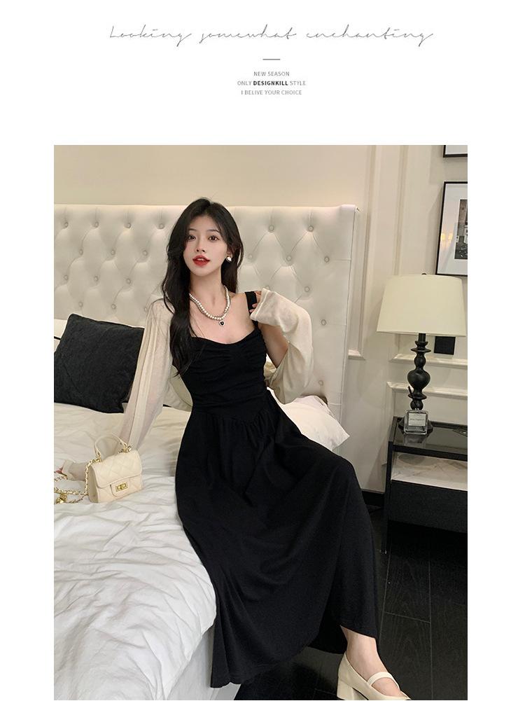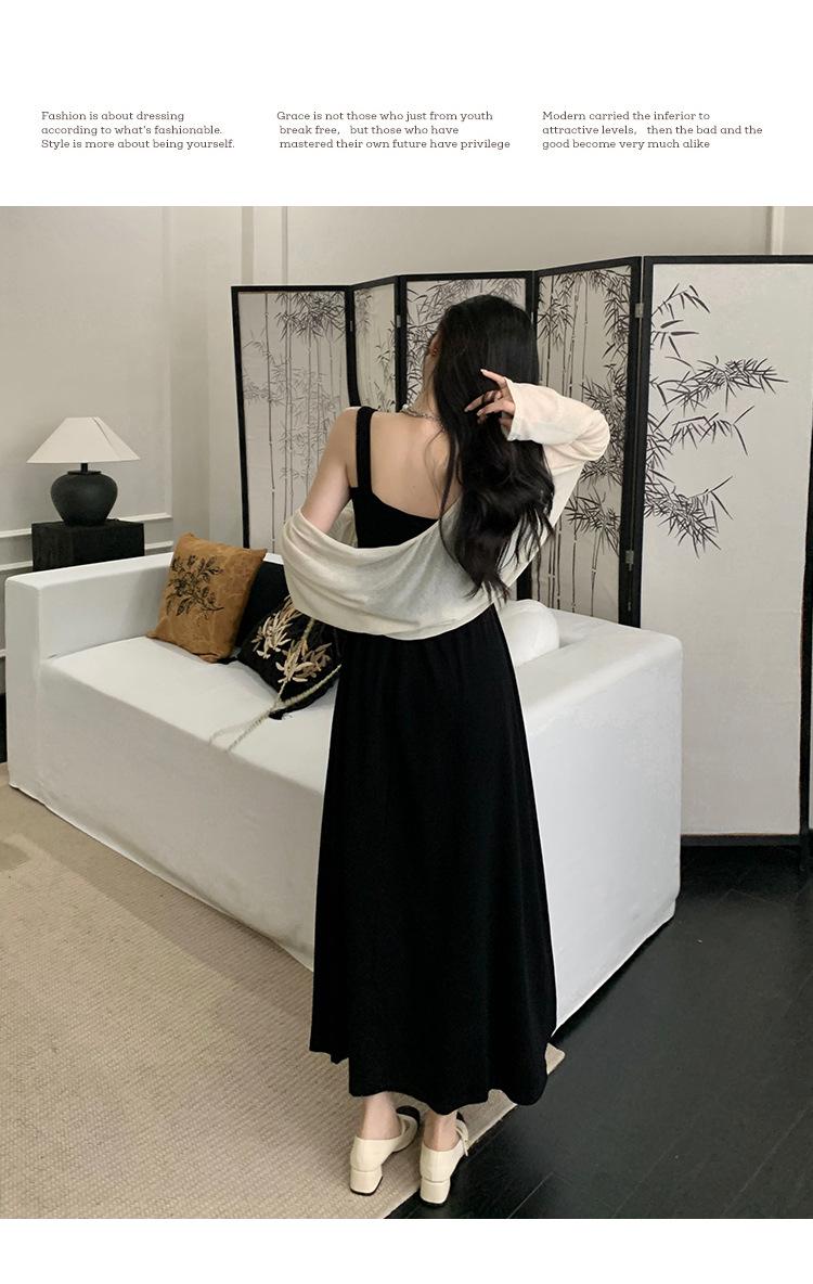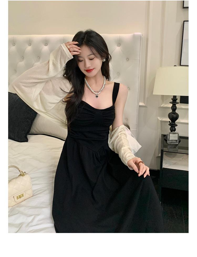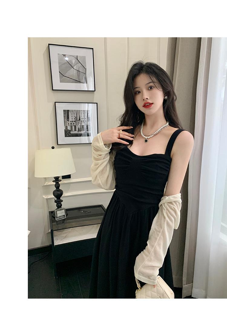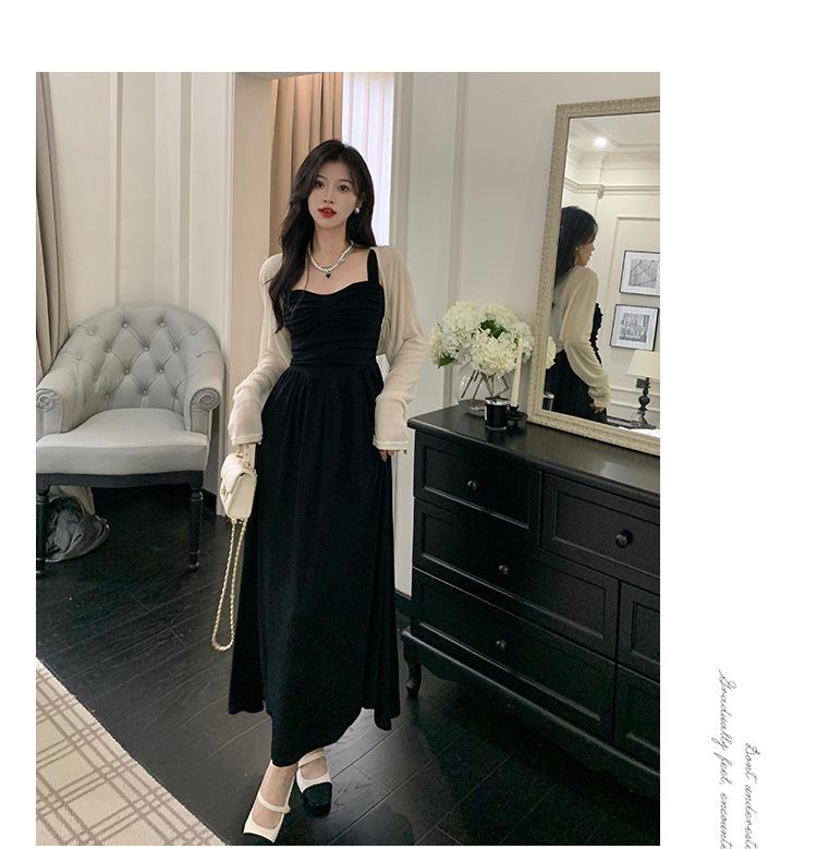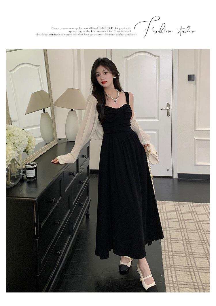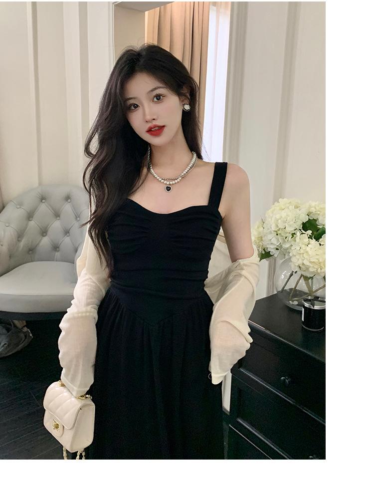 Vestido Delgado Negro Talla Grande para Mujer Gordo mm Estilo Hepburn Sin Mangas Maduro Ligero Estilo Europeo y Americano Tirantes Falda Larga