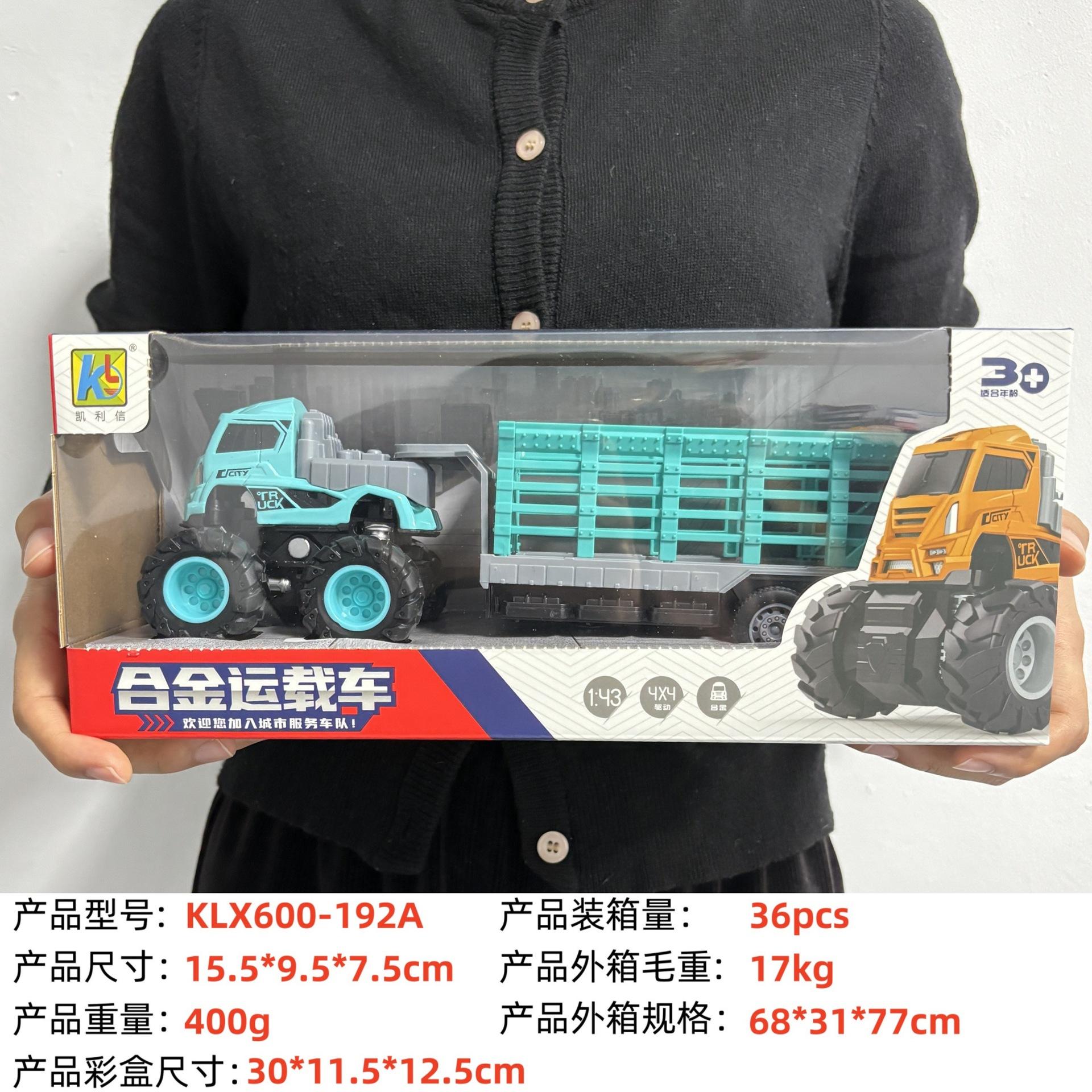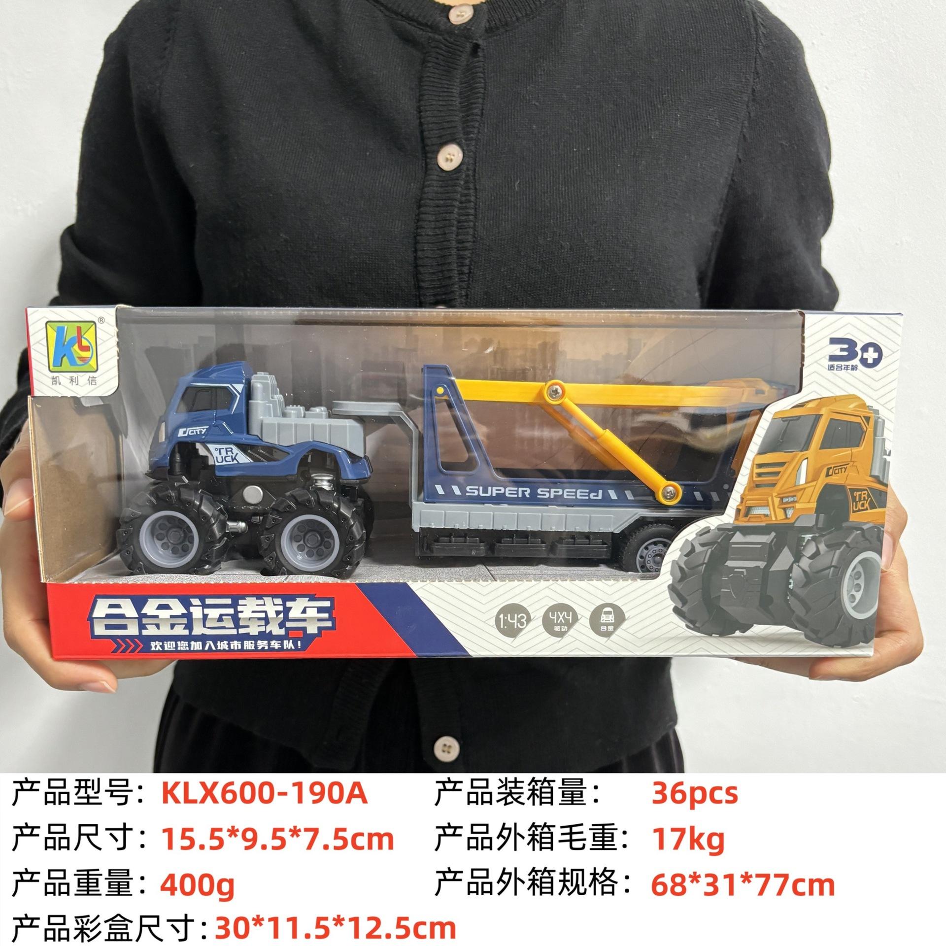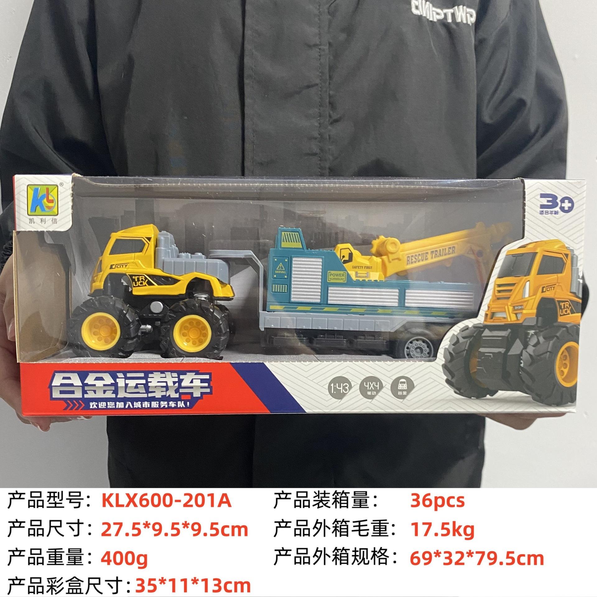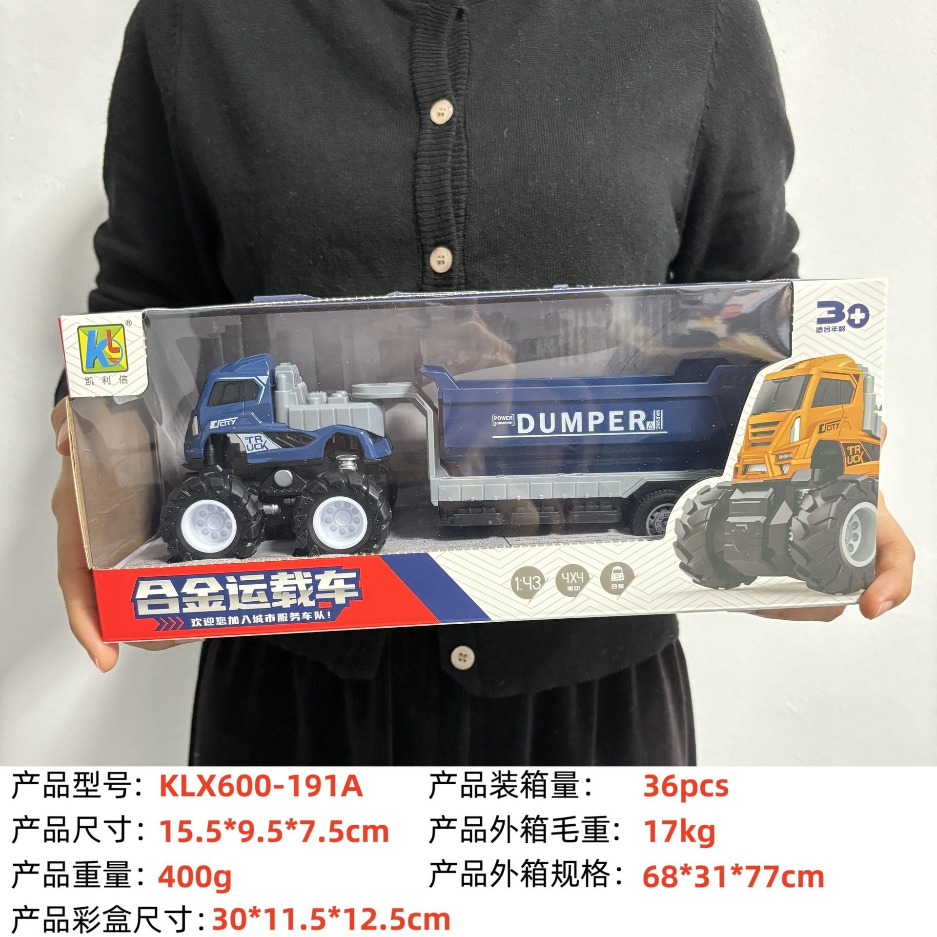 KLX-alloy blue dump truck, KLX-alloy yellow dump truck, KLX-Alloy orange flatbed truck, KLX-alloy blue flat sc...