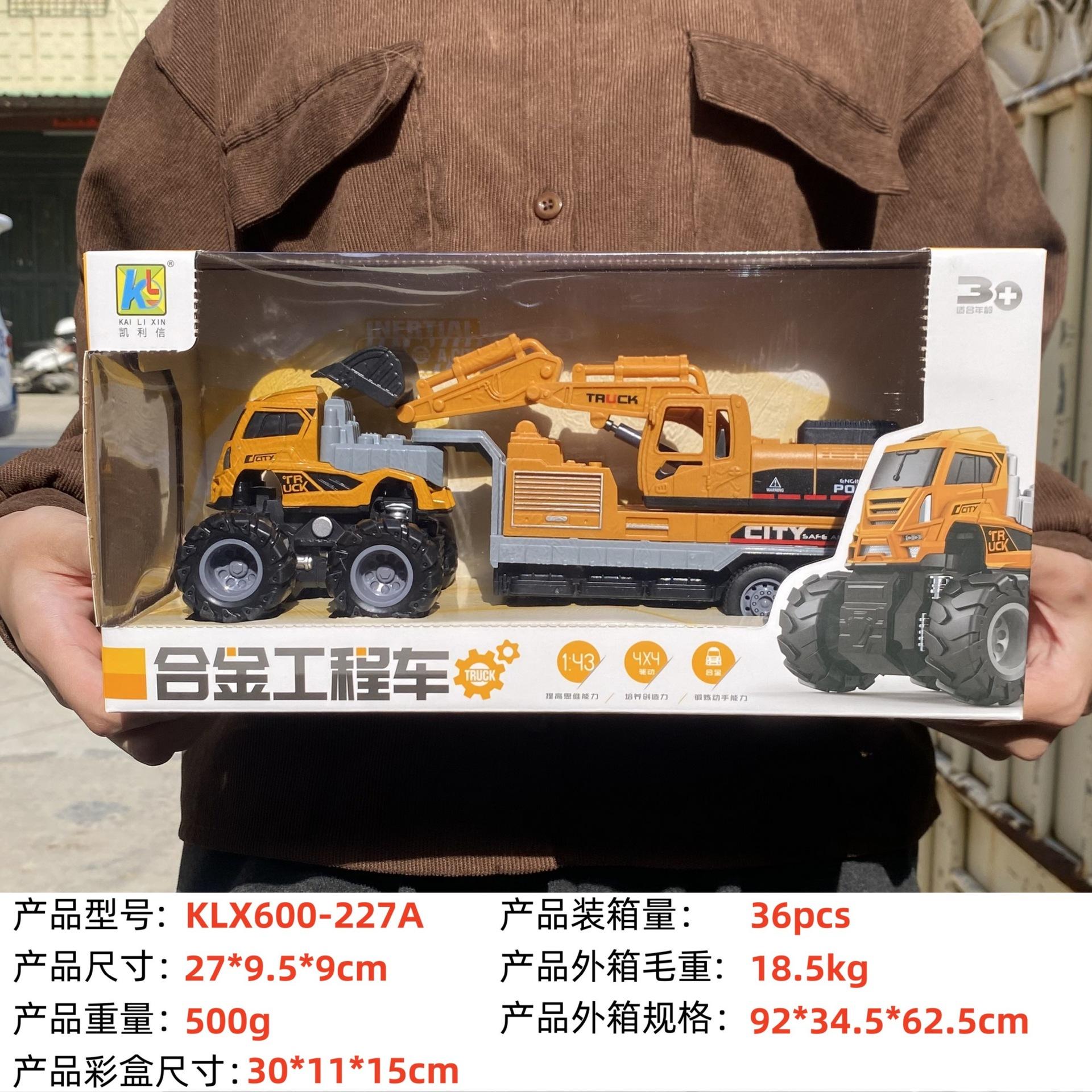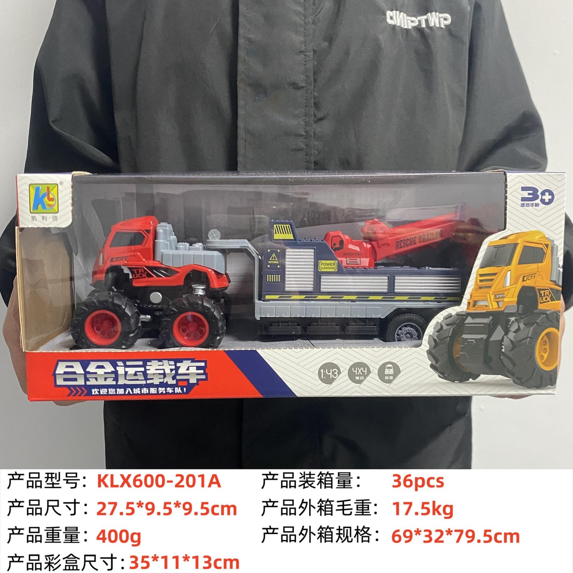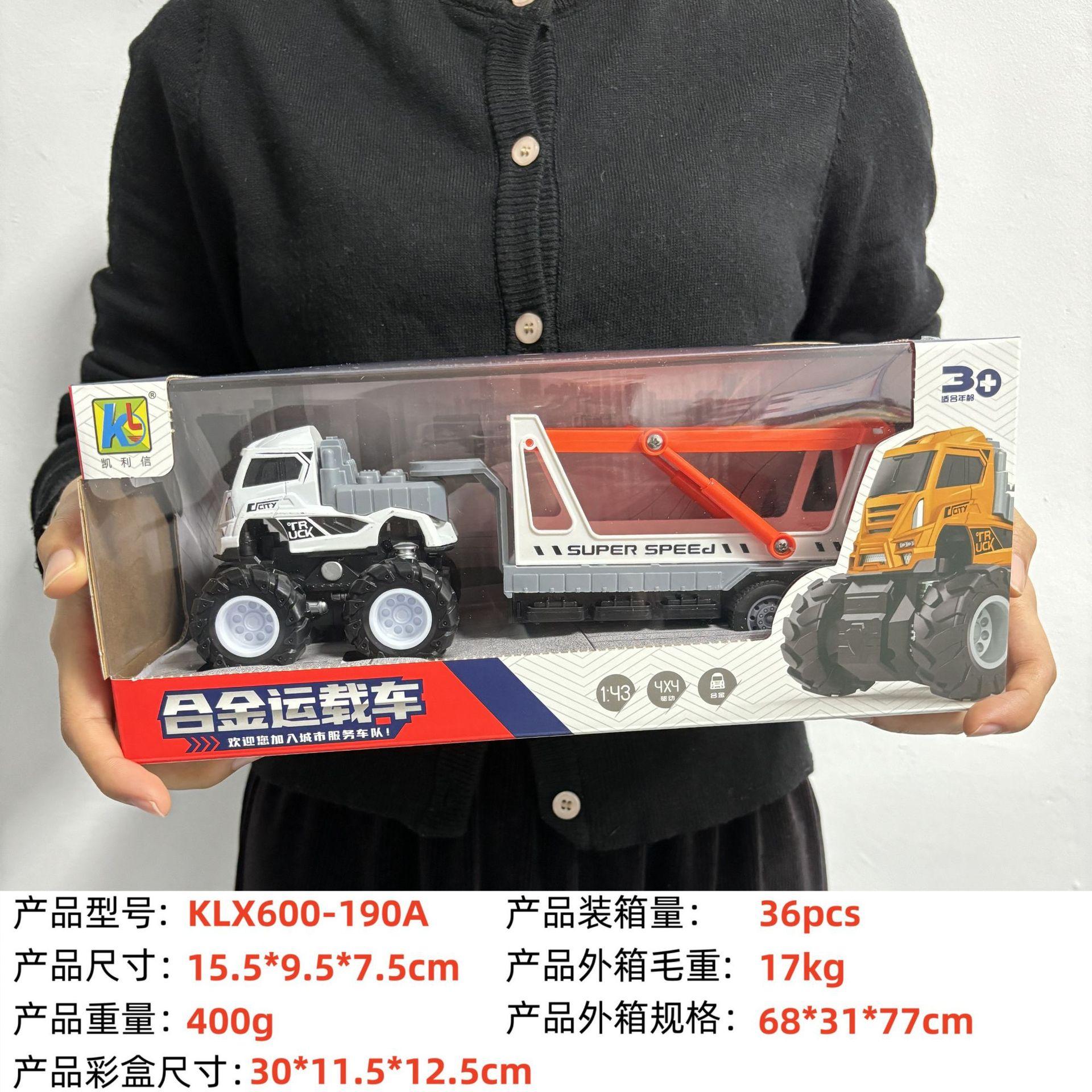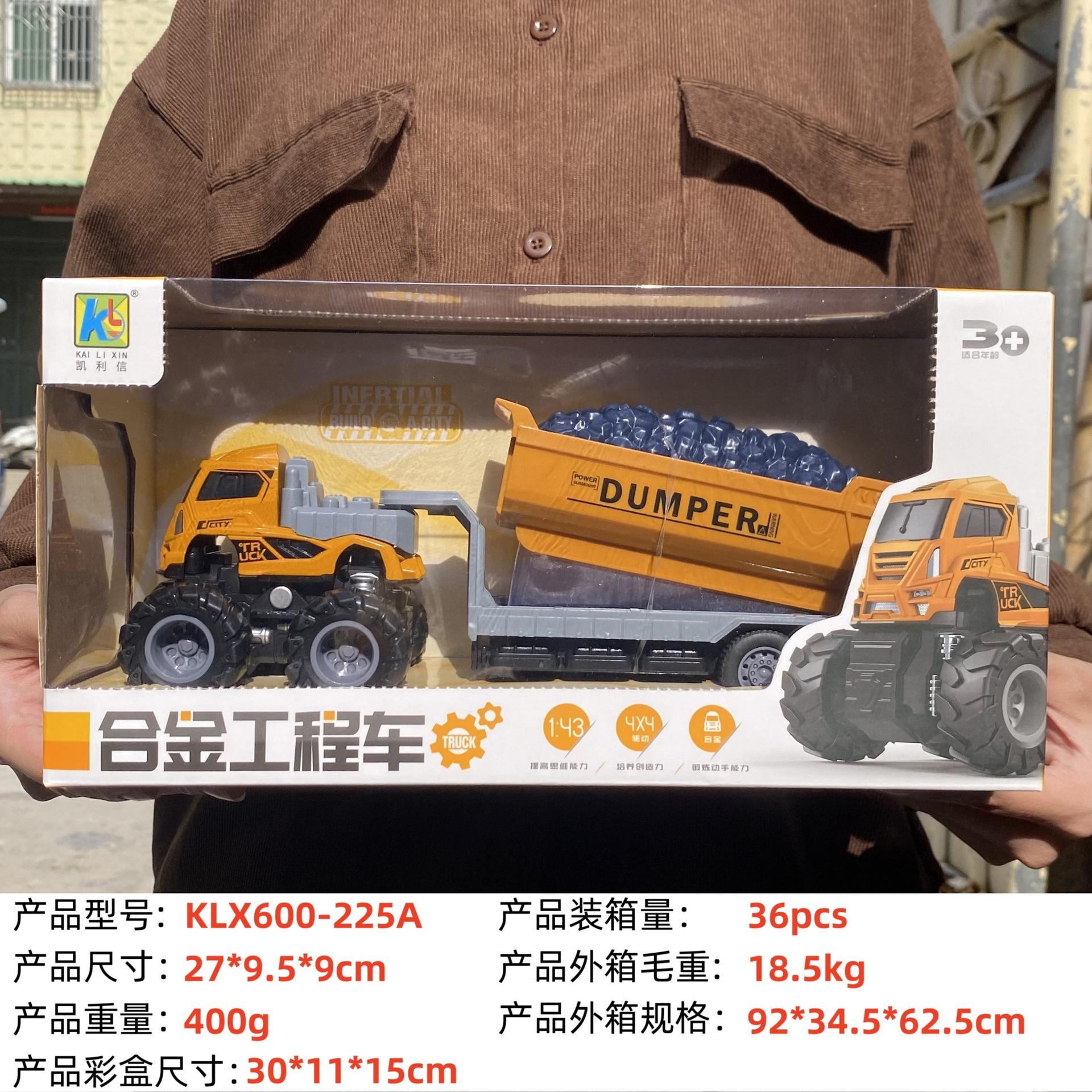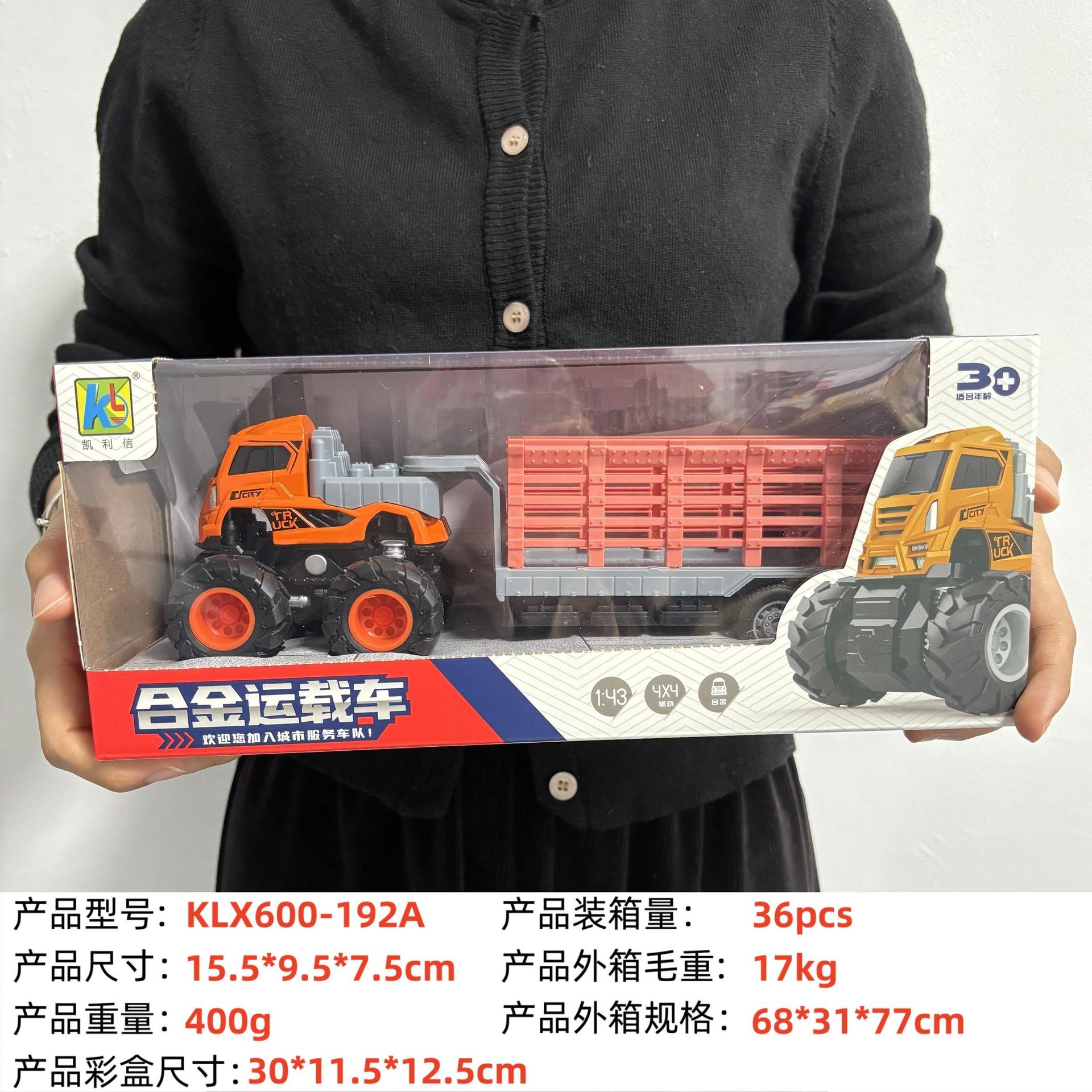 KLX-alloy blue dump truck, KLX-alloy yellow dump truck, KLX-Alloy orange flatbed truck, KLX-alloy blue flat sc...
