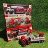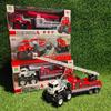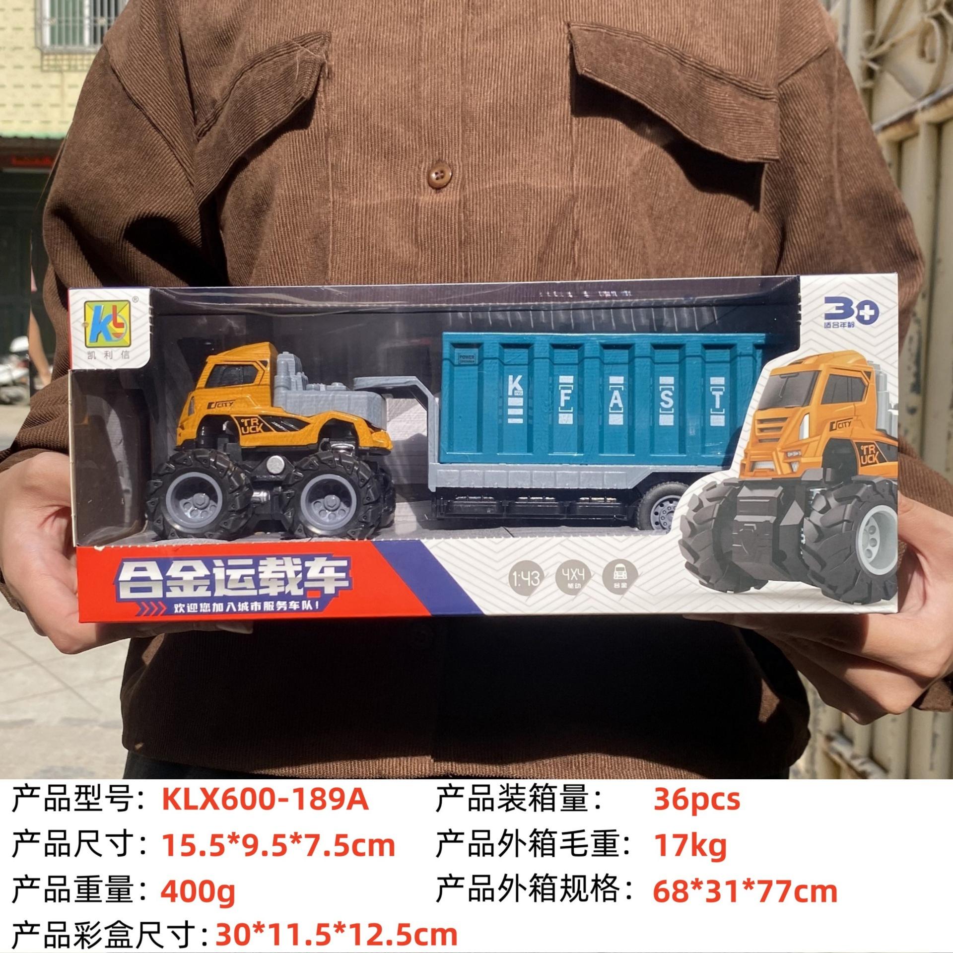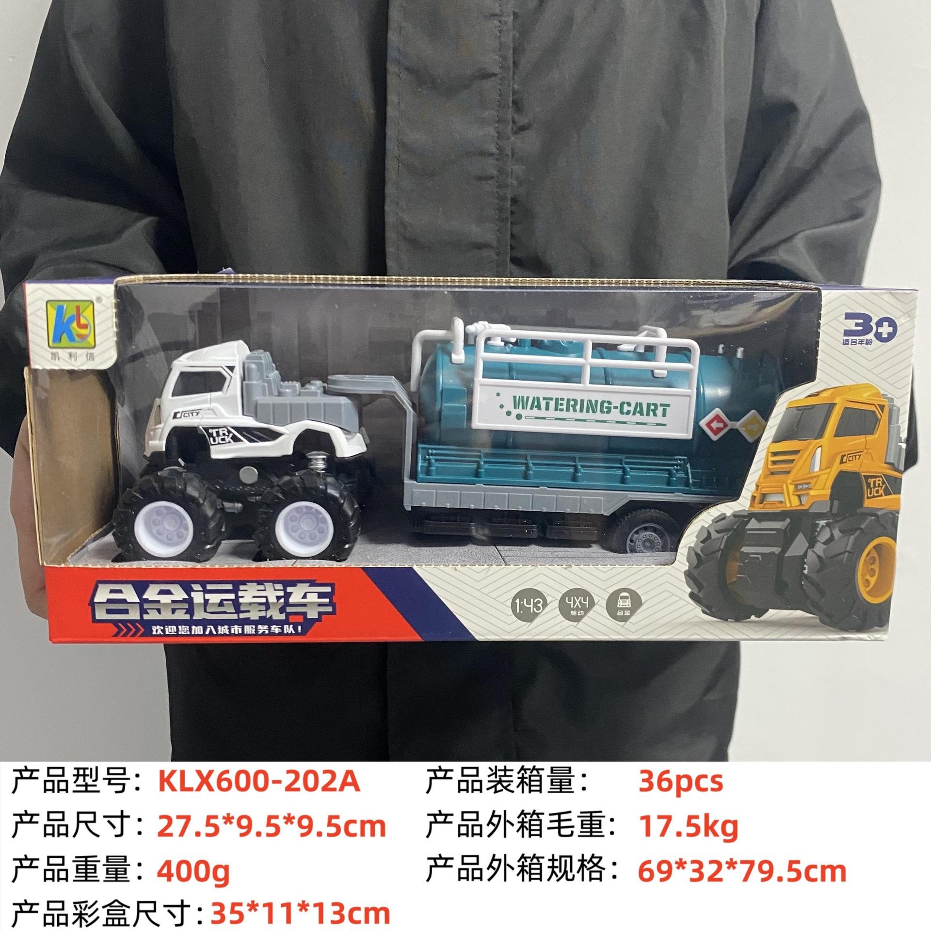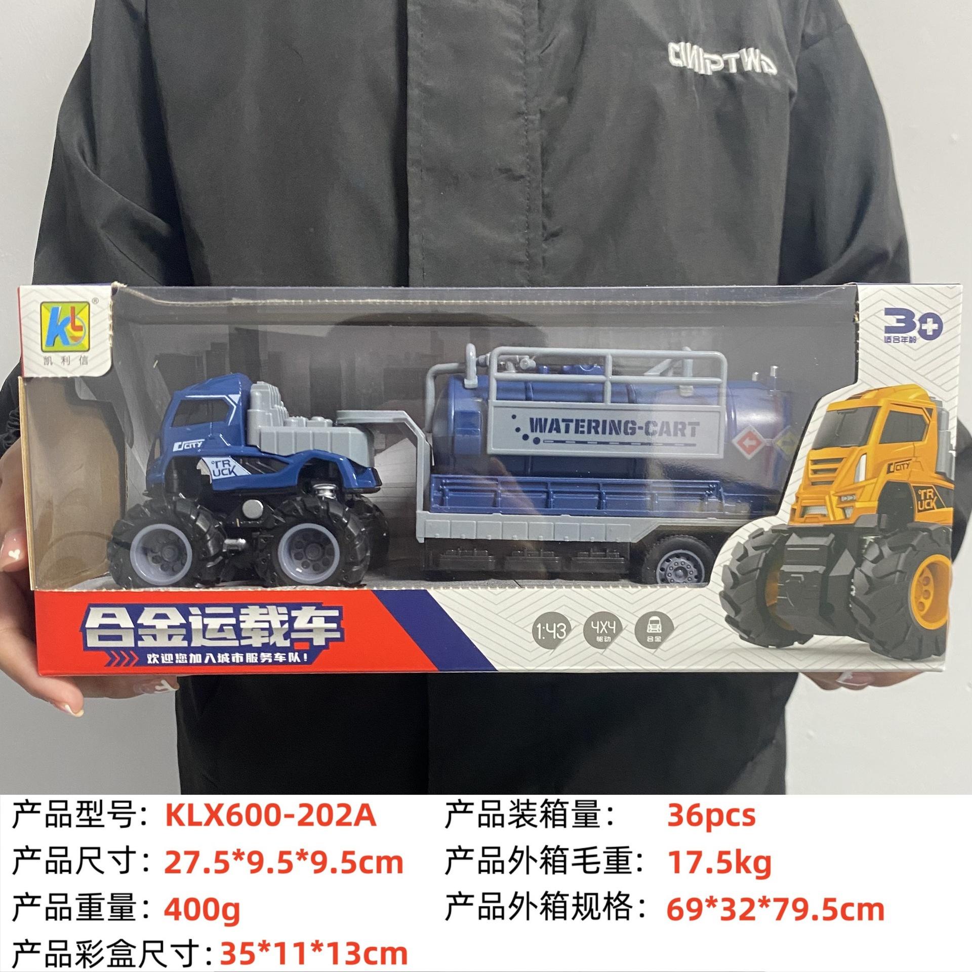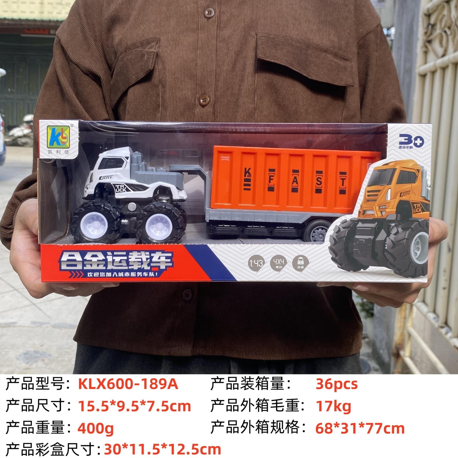 KLX-alloy blue dump truck, KLX-alloy yellow dump truck, KLX-Alloy orange flatbed truck, KLX-alloy blue flat sc...