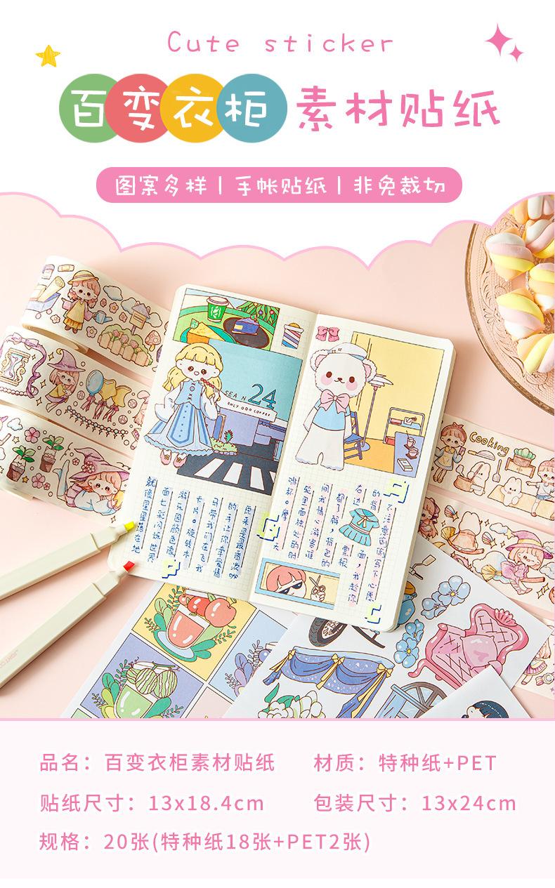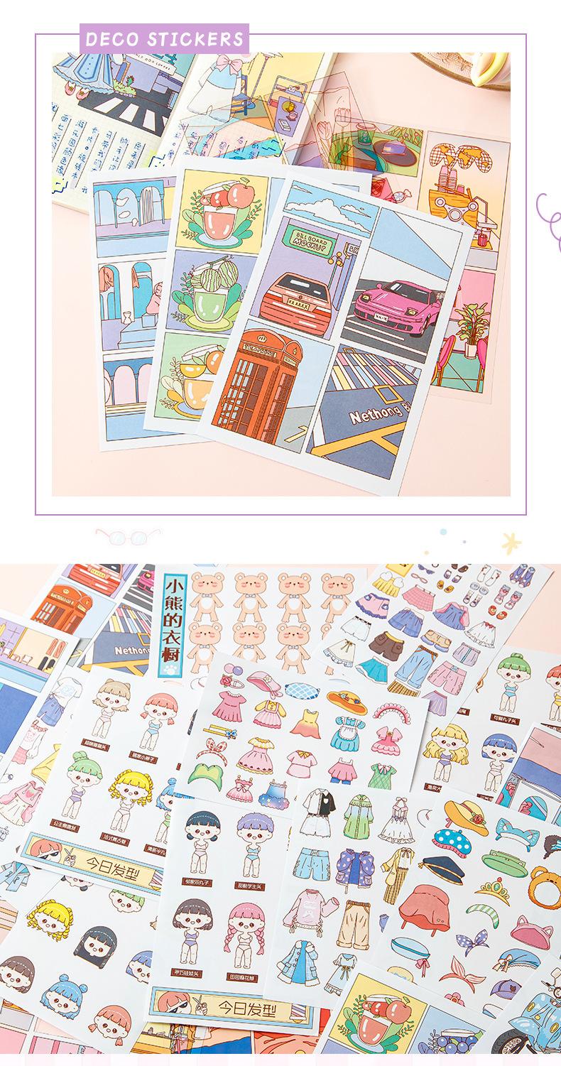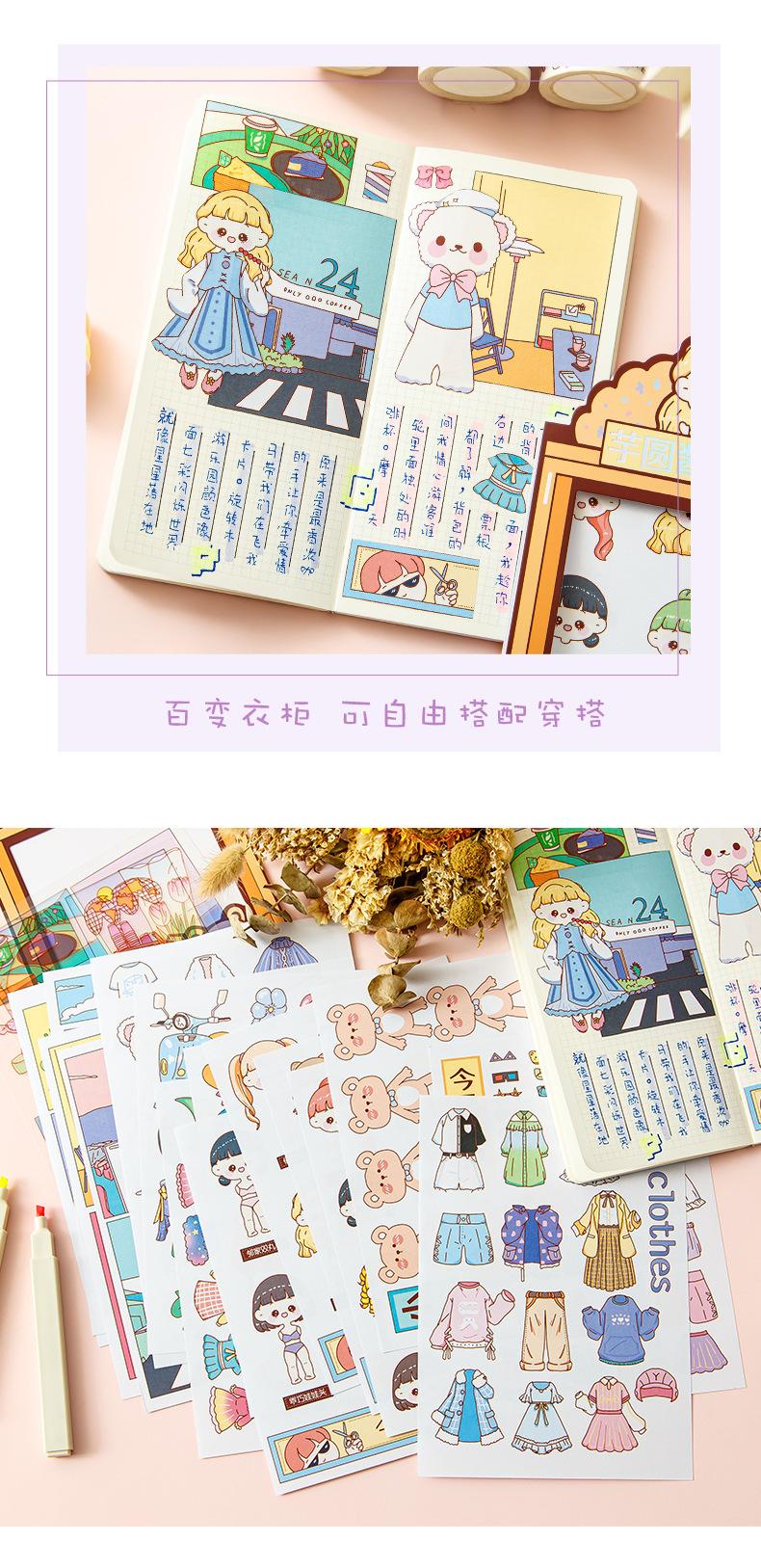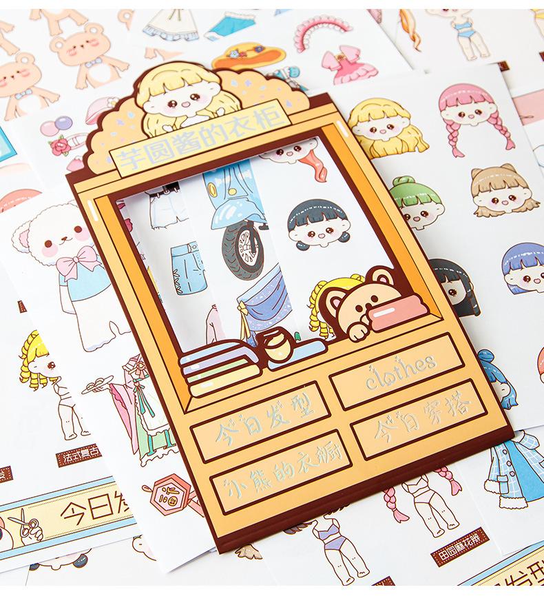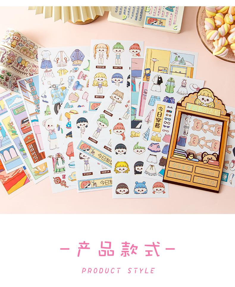 Pegatina de cuenta de mano de cambio de vestuario variado de niña de dibujos animados Pegatina de cuenta de mano de ropa de niña Pegatina de material de cuenta de mano