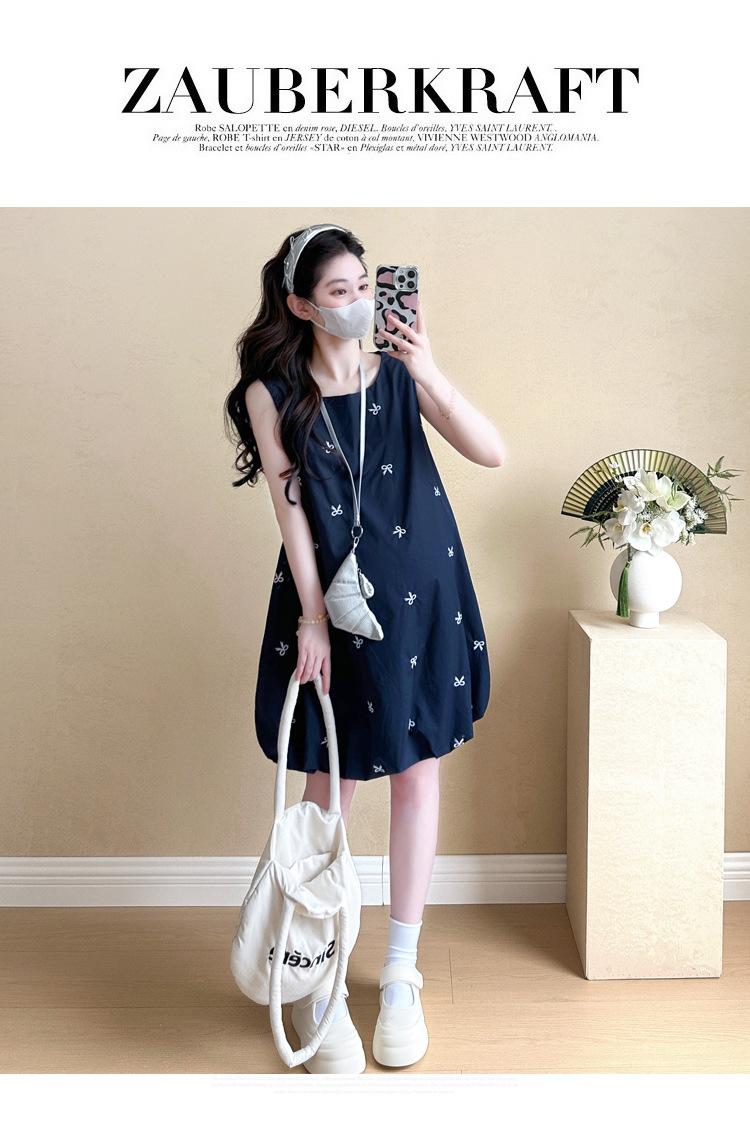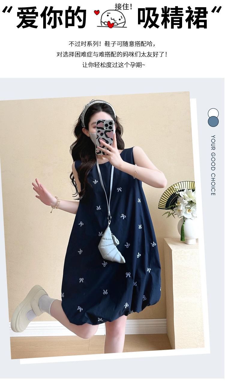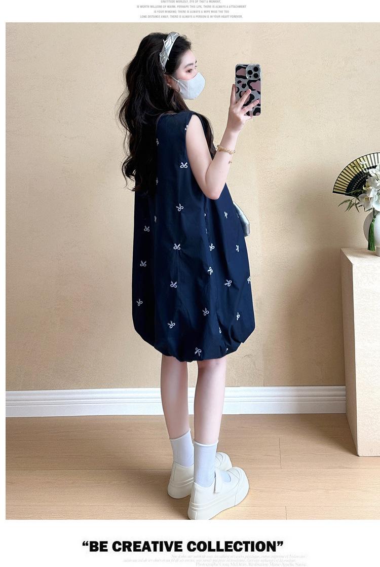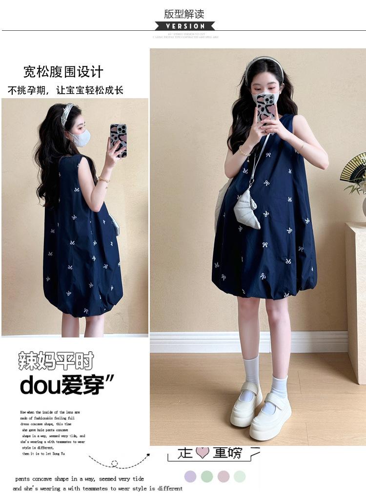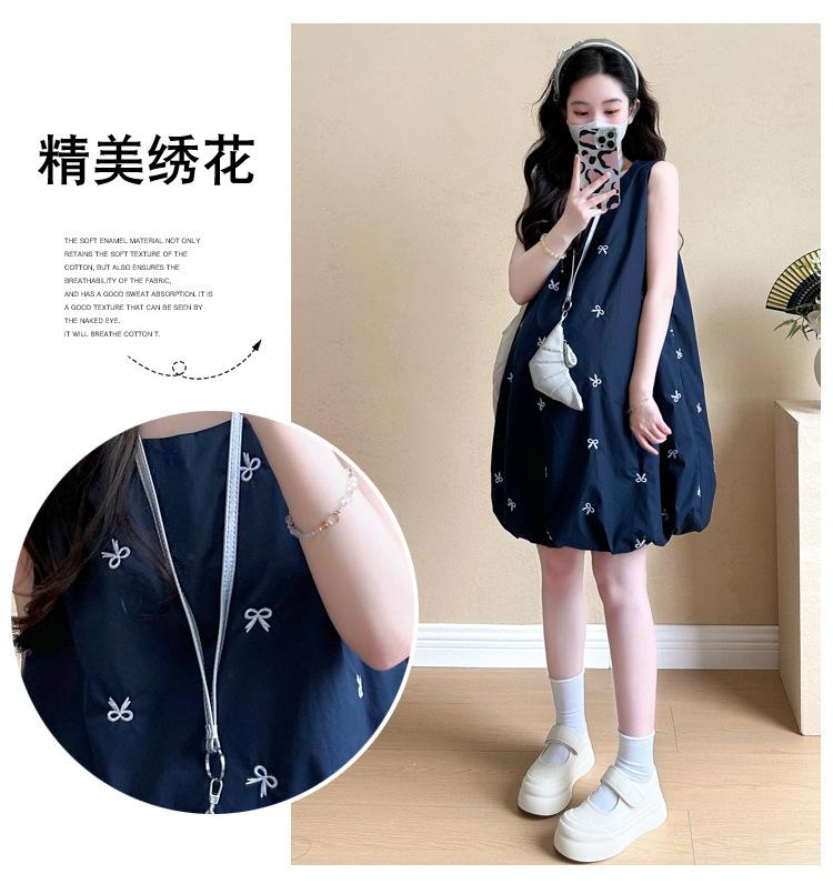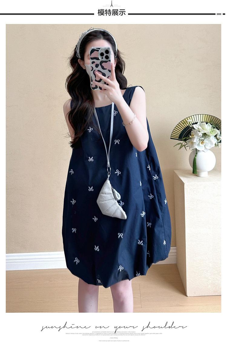 Vestido de maternidad de verano a la moda, informal, holgado, pequeño, para embarazadas, con lazo bordado, chaleco y falda