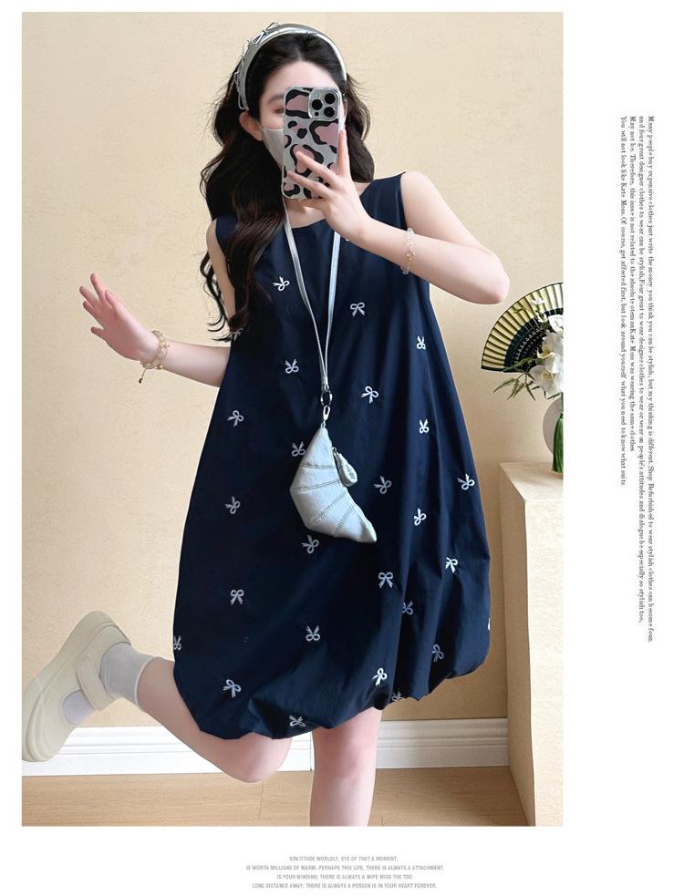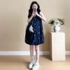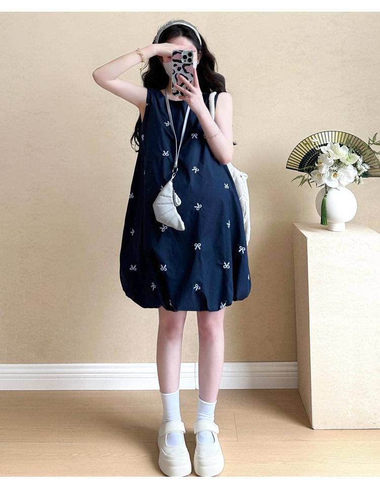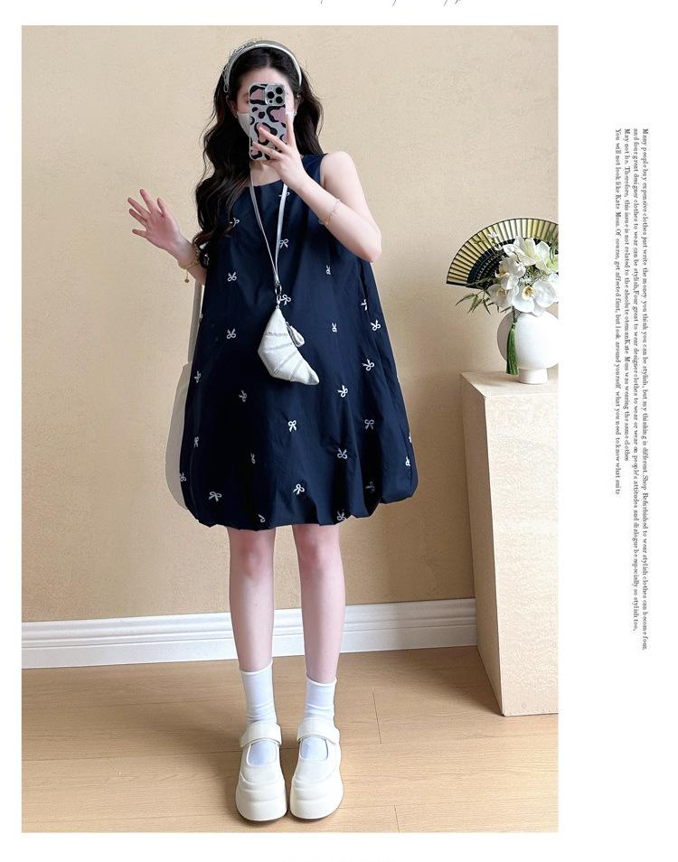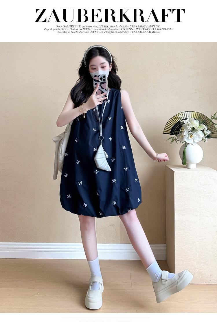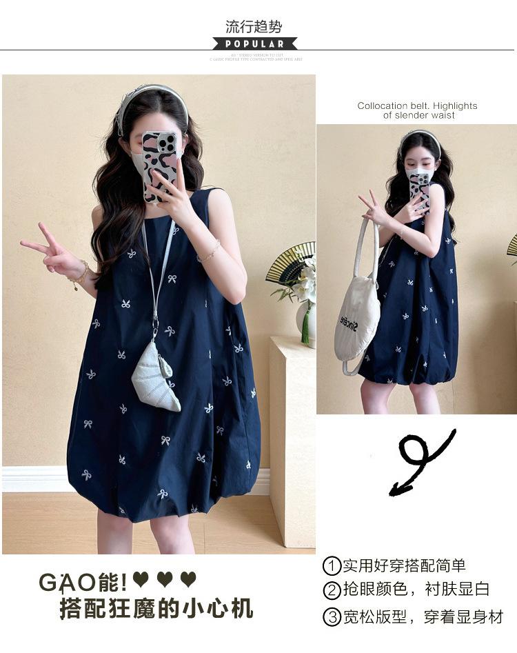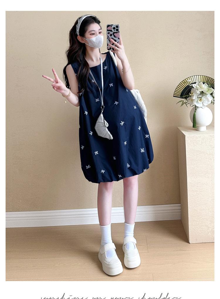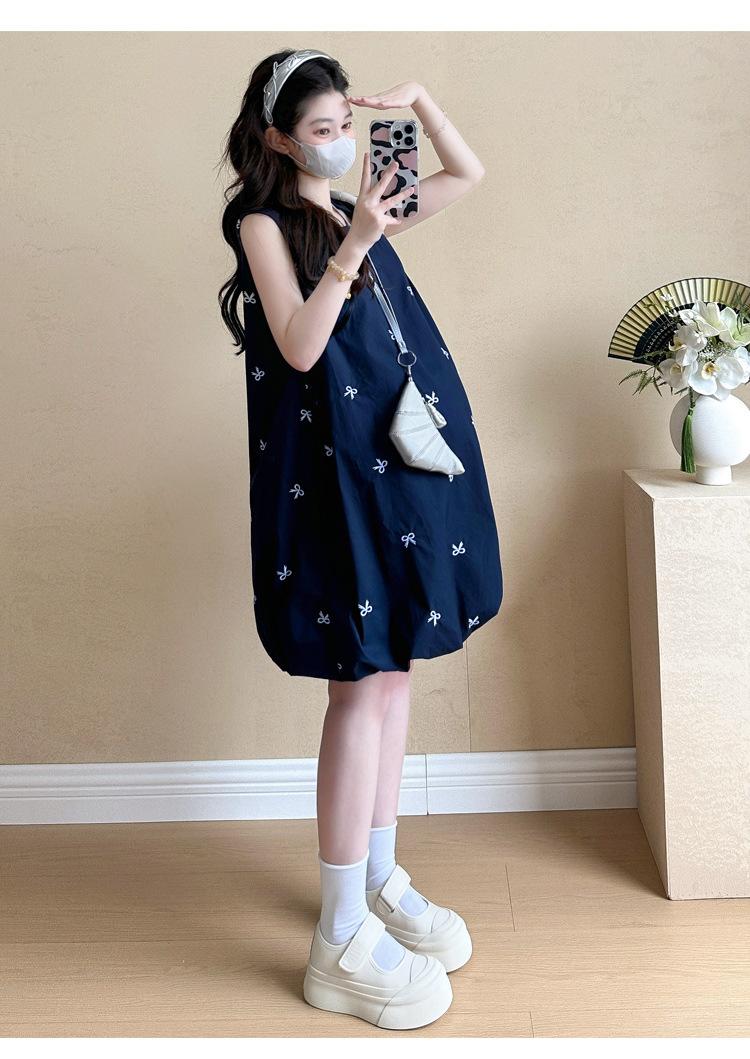 Vestido de maternidad de verano a la moda, informal, holgado, pequeño, para embarazadas, con lazo bordado, chaleco y falda