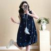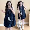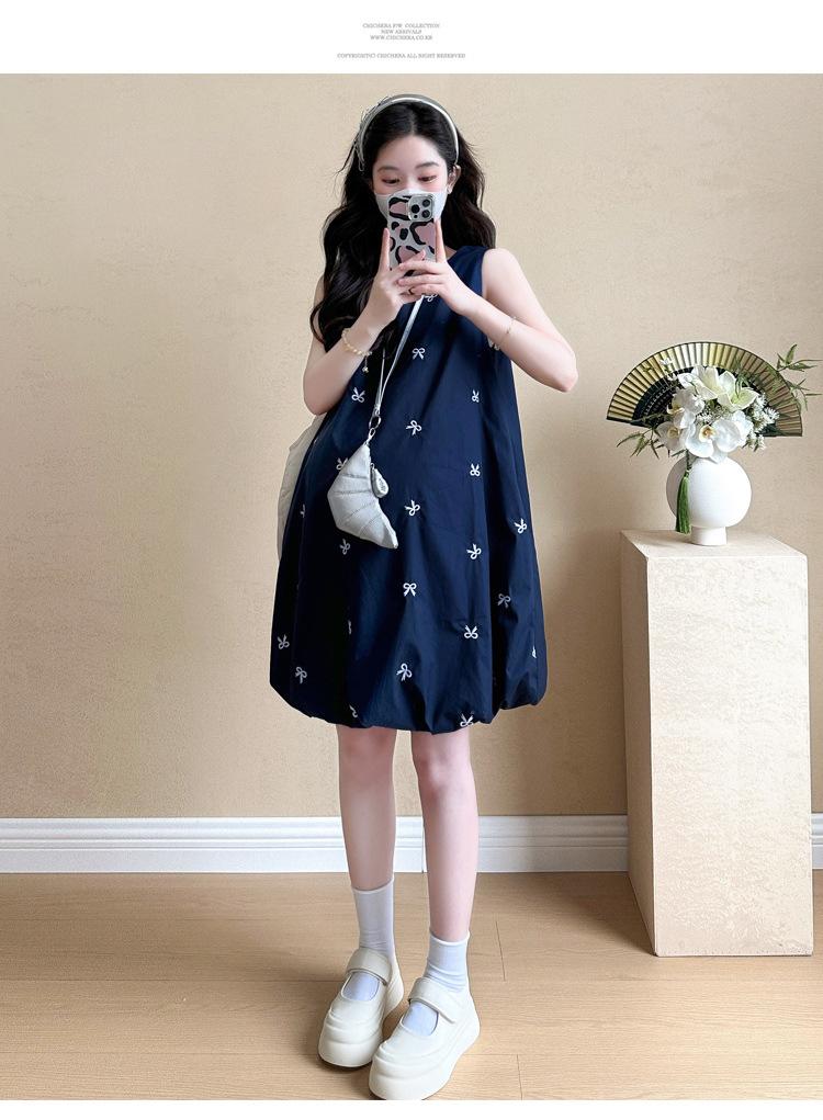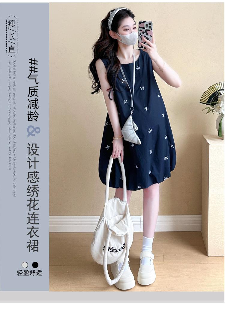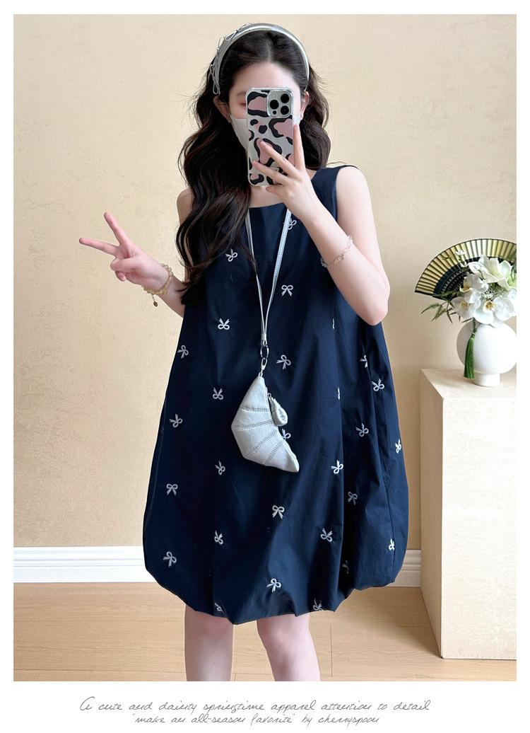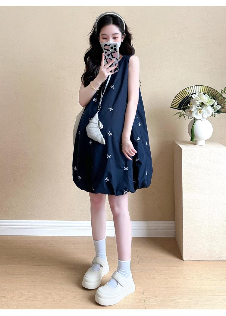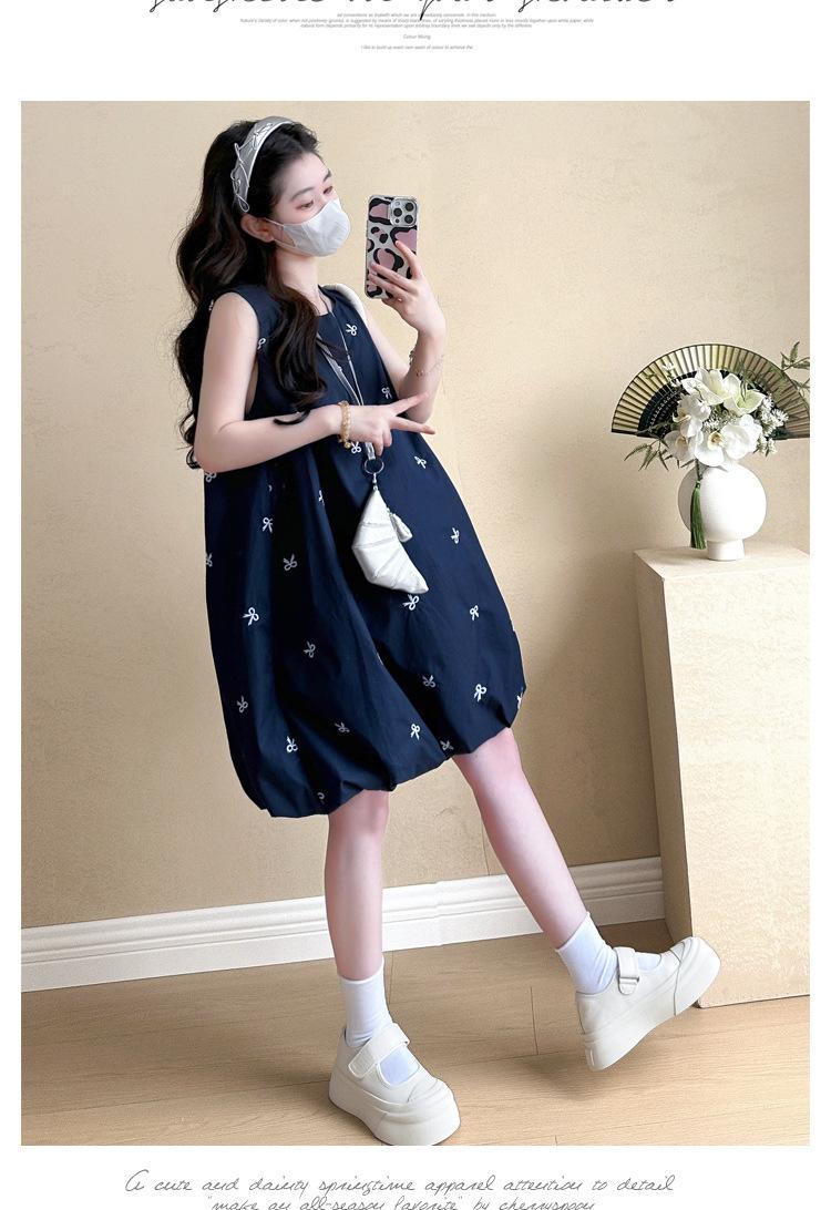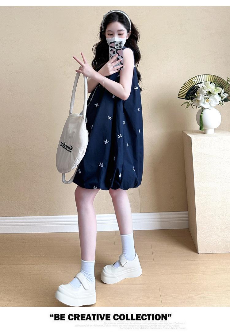 Vestido de maternidad de verano a la moda, informal, holgado, pequeño, para embarazadas, con lazo bordado, chaleco y falda