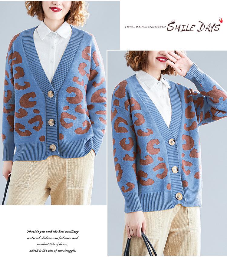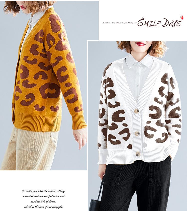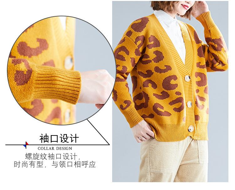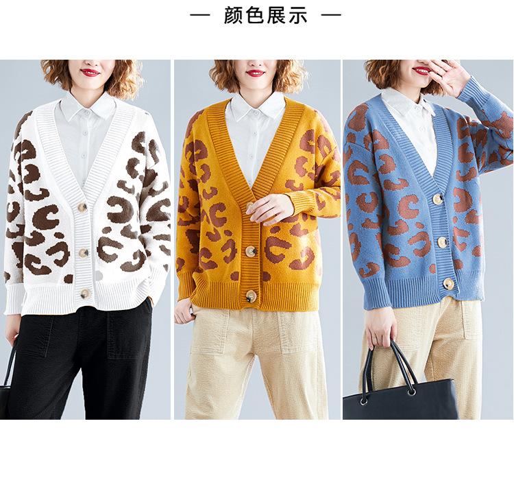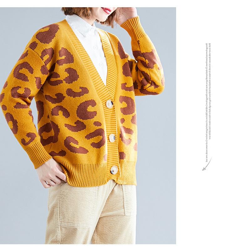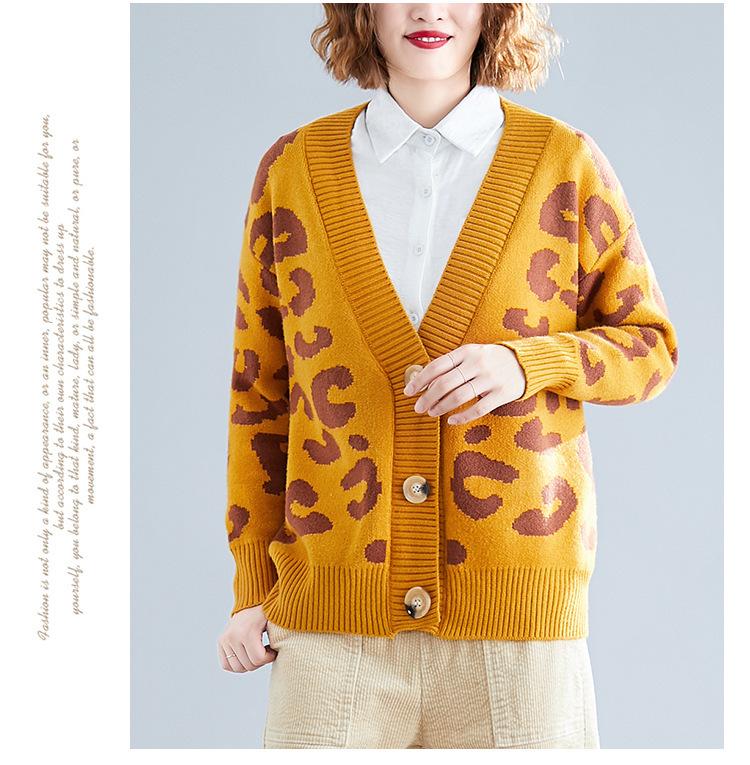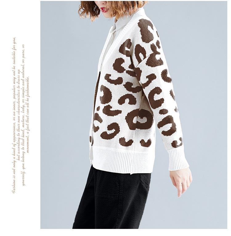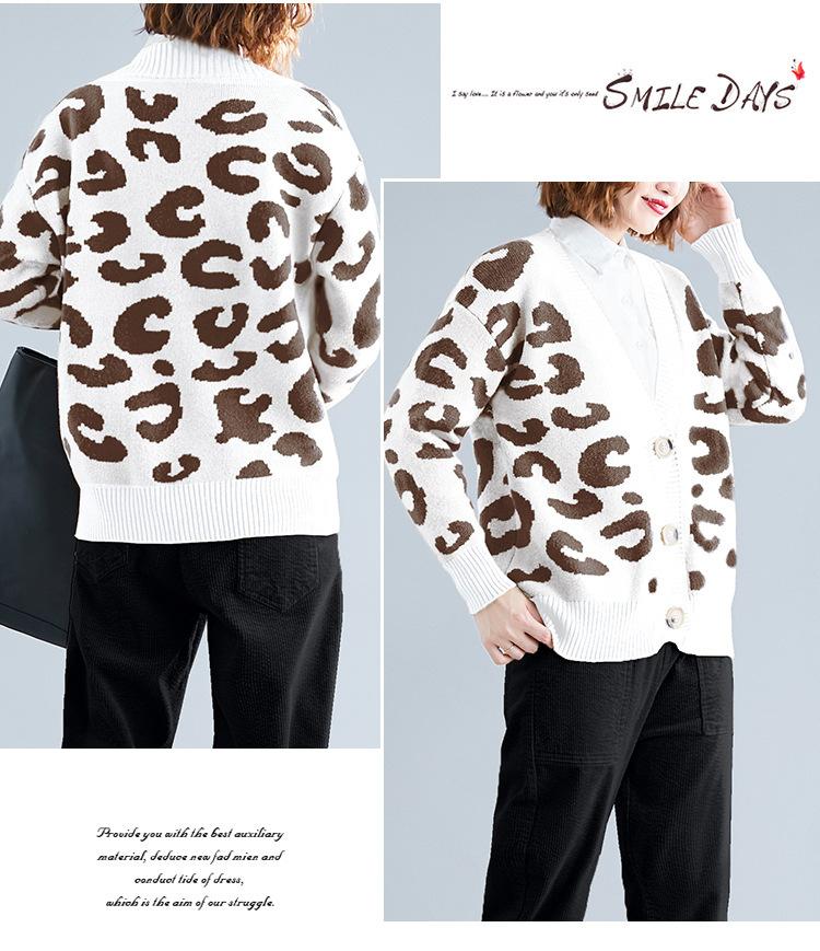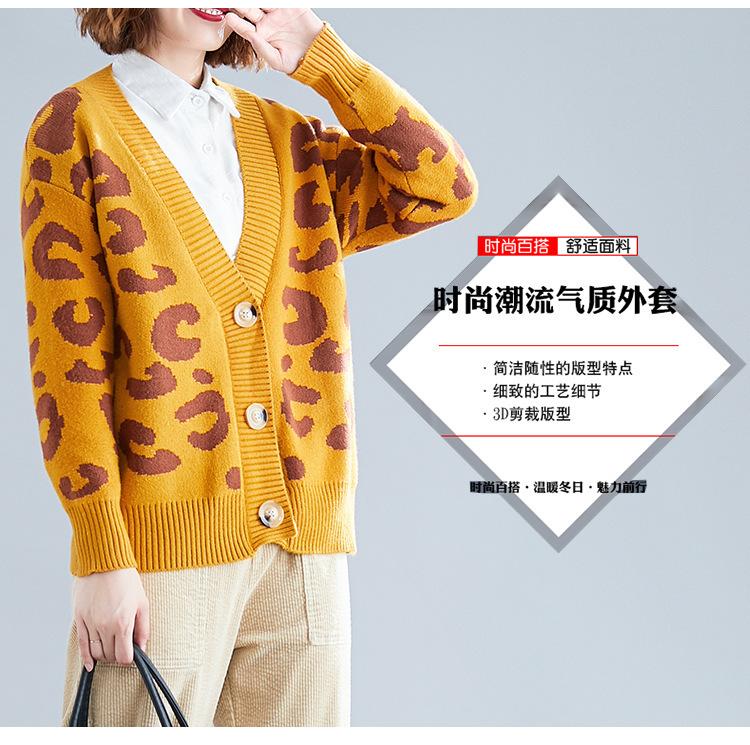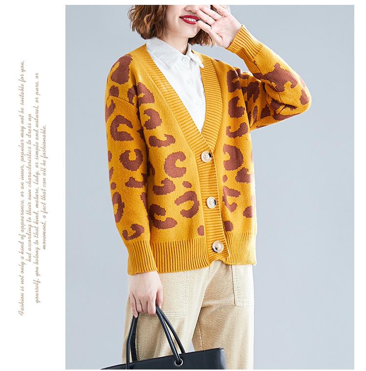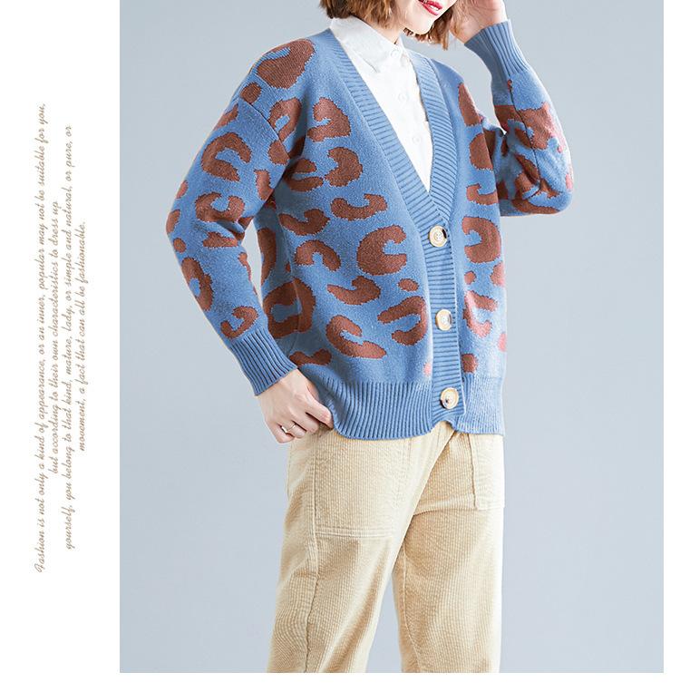 Suéter holgado con estampado de leopardo para mujer, otoño e invierno, nuevo cárdigan de punto de lana con cuello en V y mangas largas estilo coreano adelgazante
