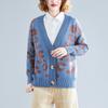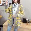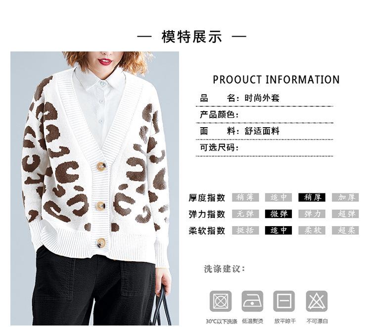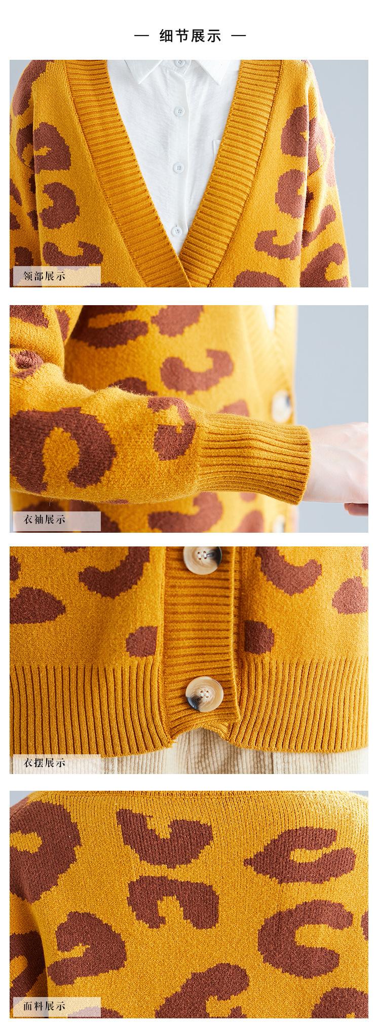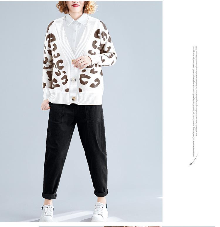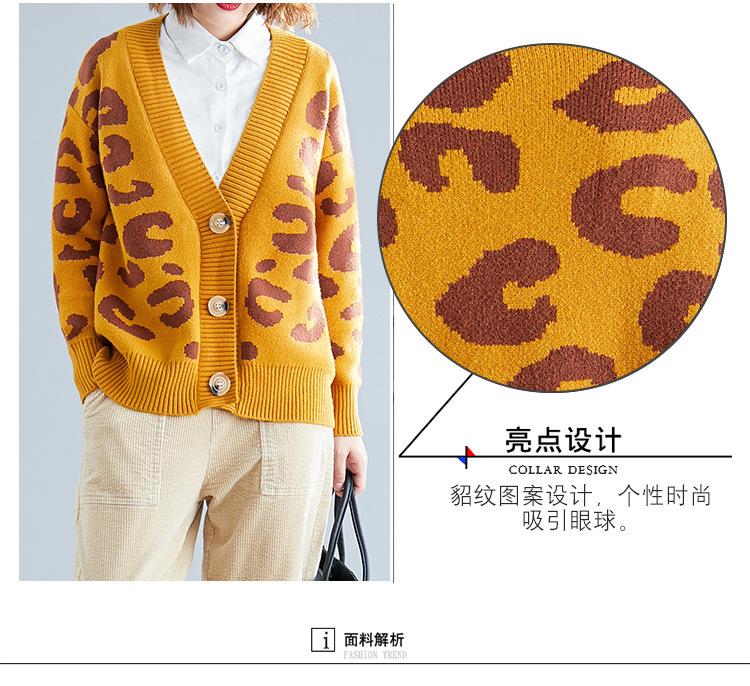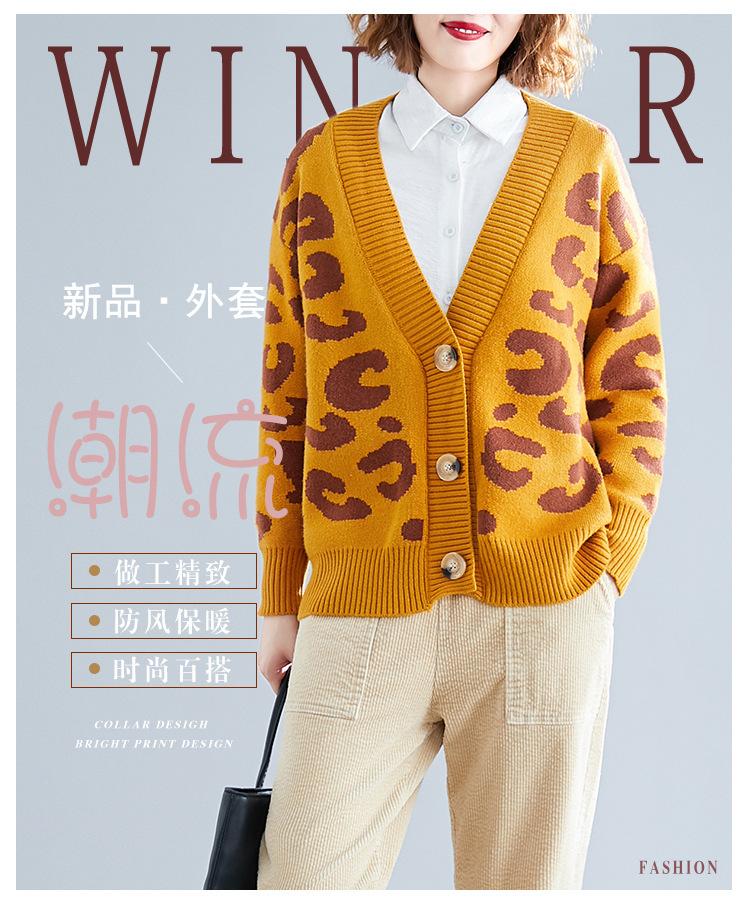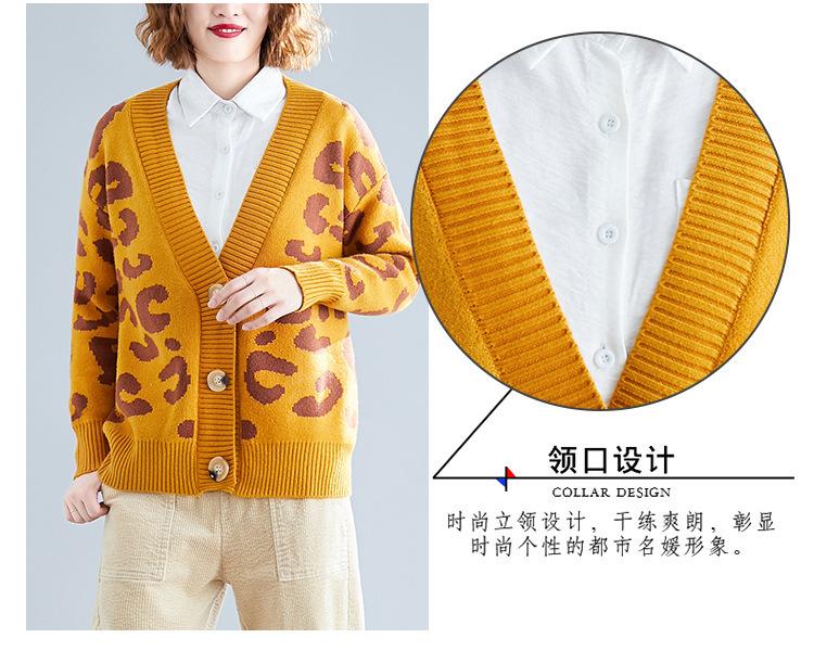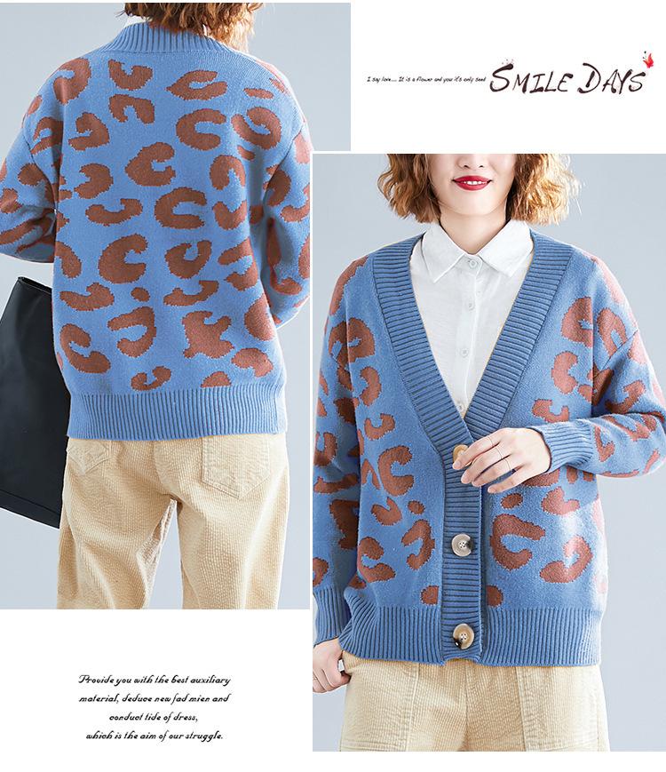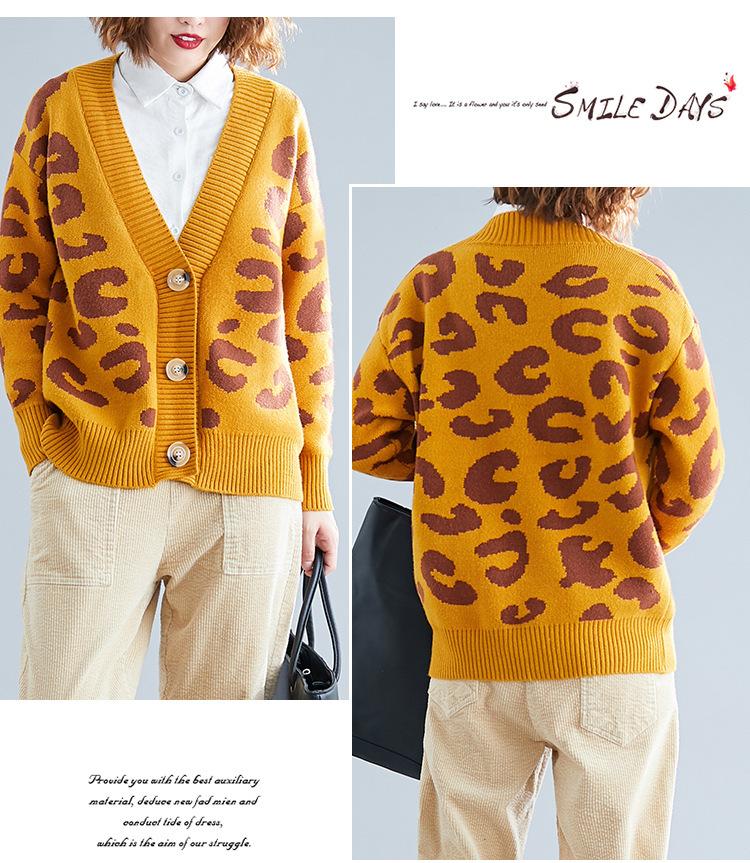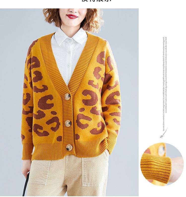 Suéter holgado con estampado de leopardo para mujer, otoño e invierno, nuevo cárdigan de punto de lana con cuello en V y mangas largas estilo coreano adelgazante