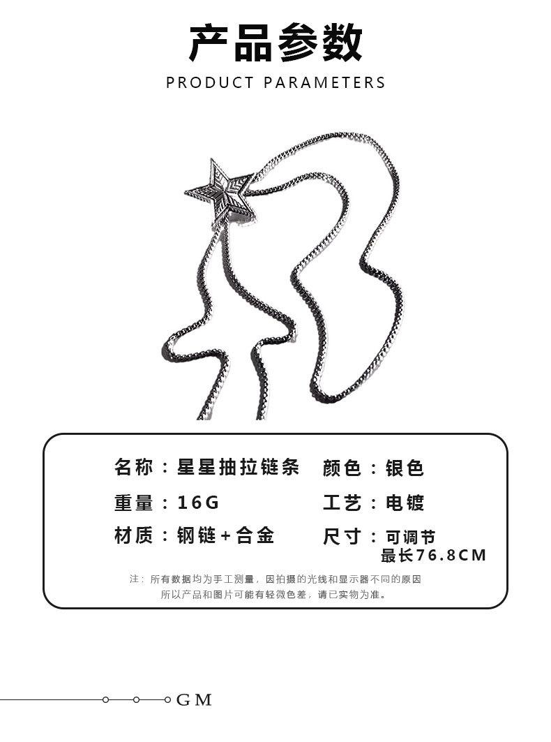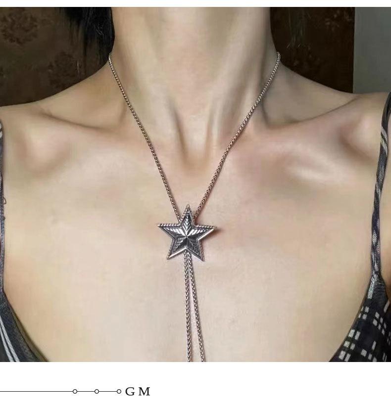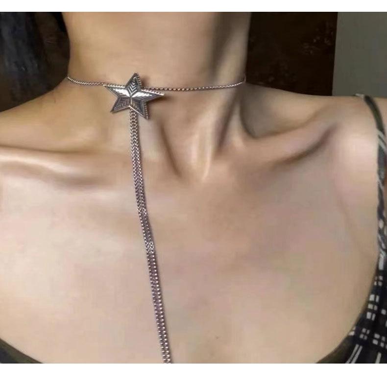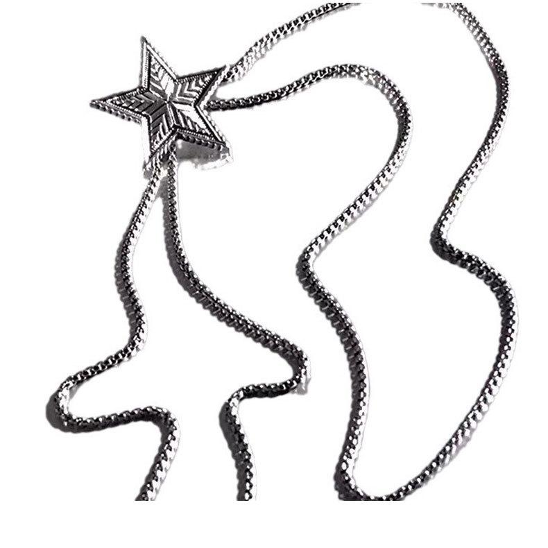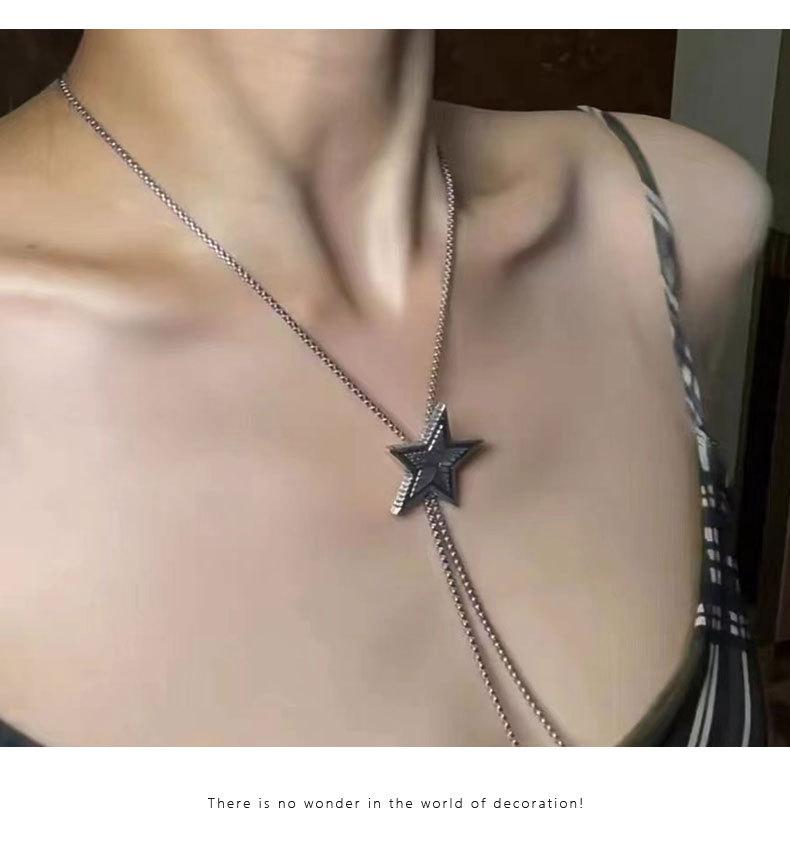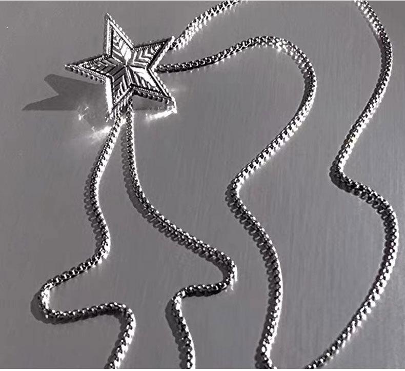 Estilo Frío Plata de Alta Calidad Collar Largo Estrella de Cinco Puntas Diseño Nicho Borla Apilada Cadena Clavícula