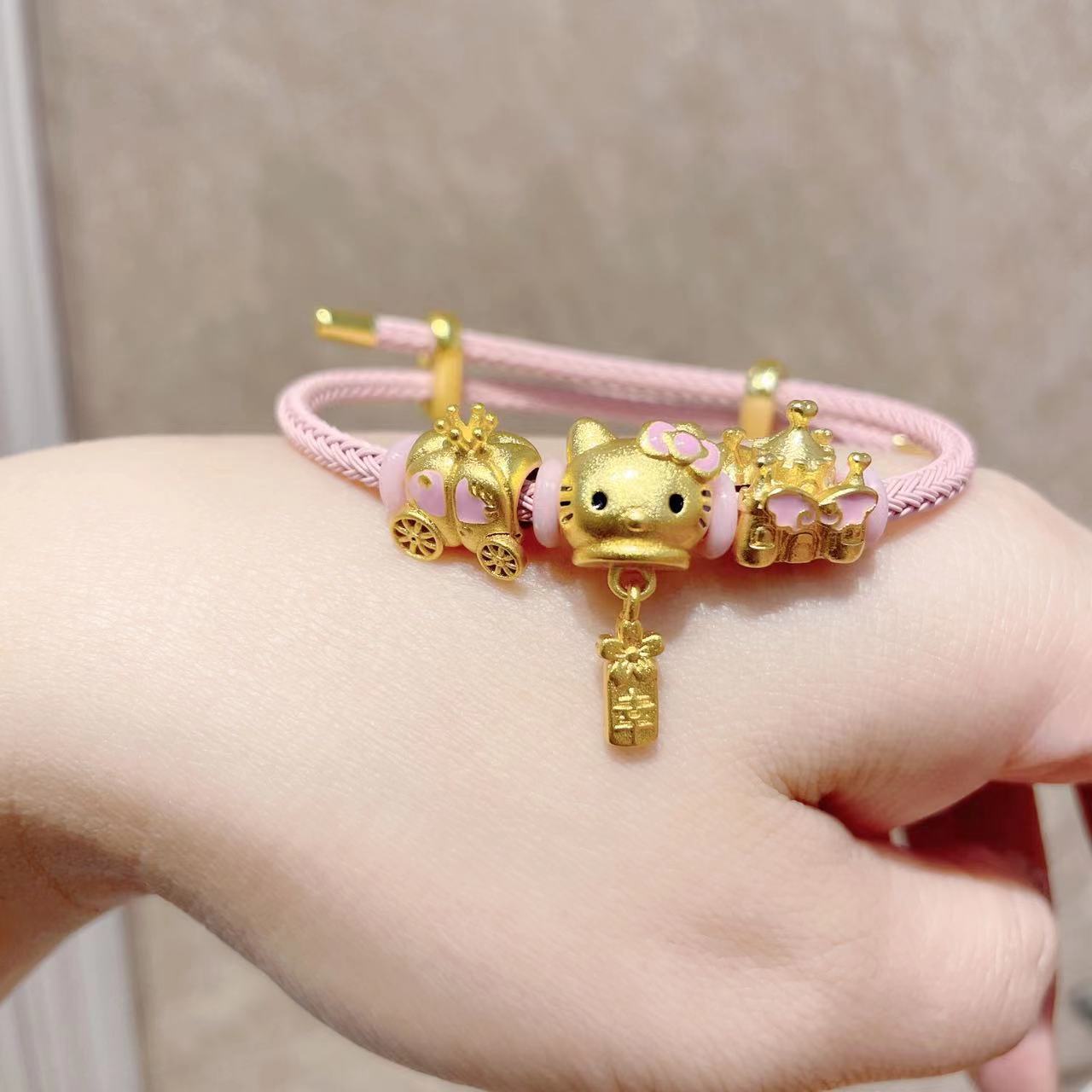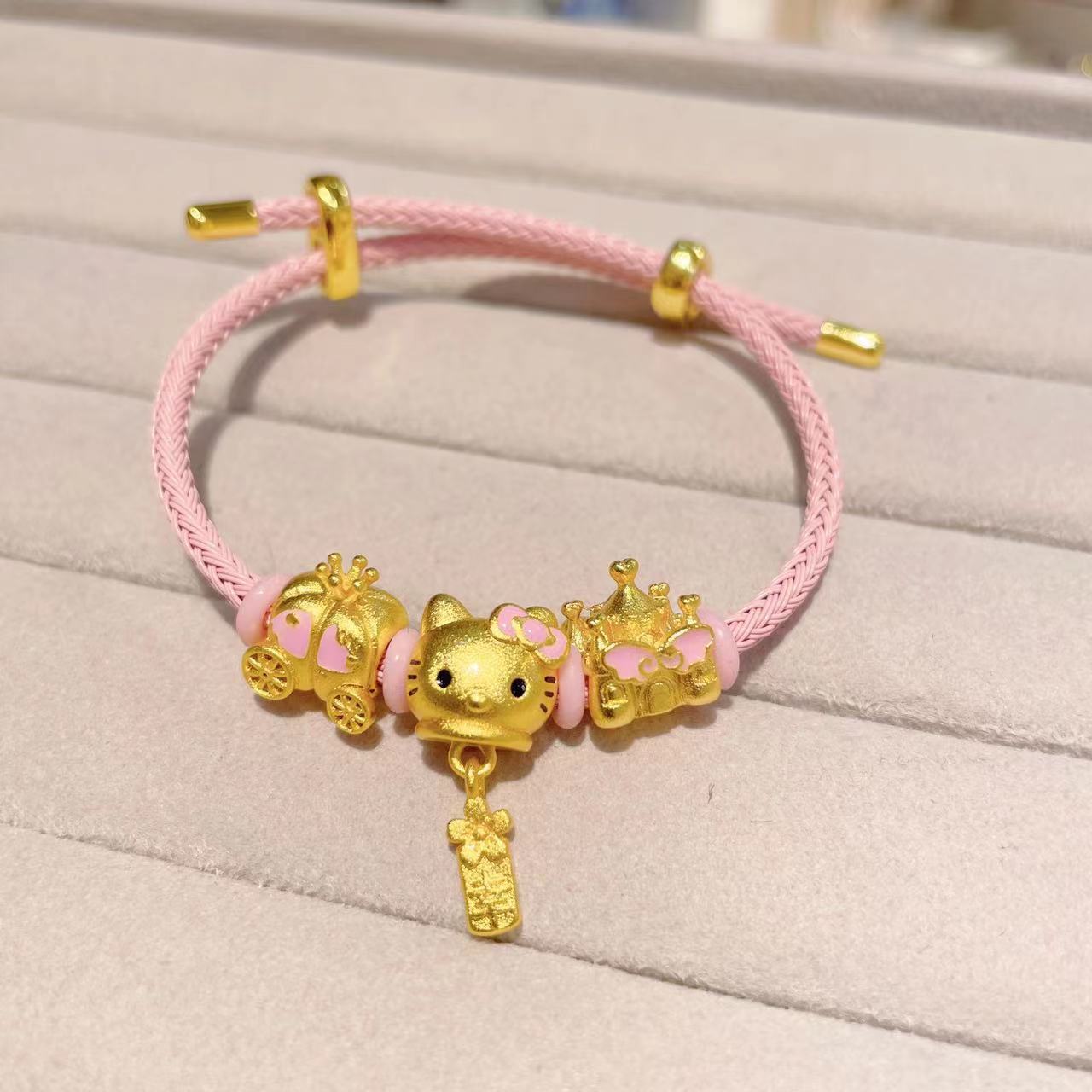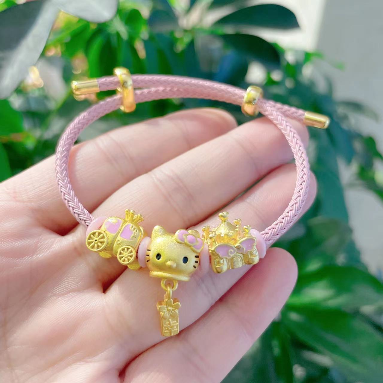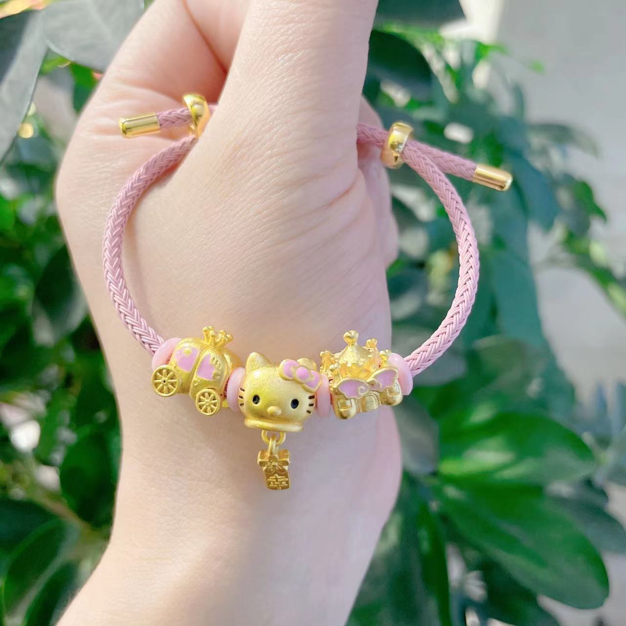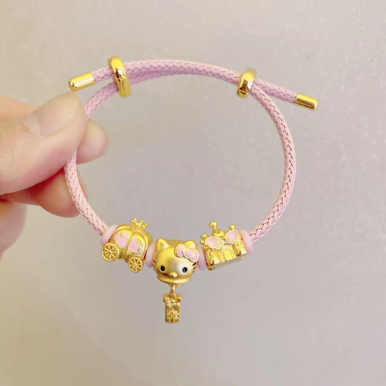 Gatito dorado calabaza coche Castillo cuentas de la suerte cuentas espaciadoras de agujero grande pulsera ajustable traje accesorios de joyería diy