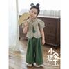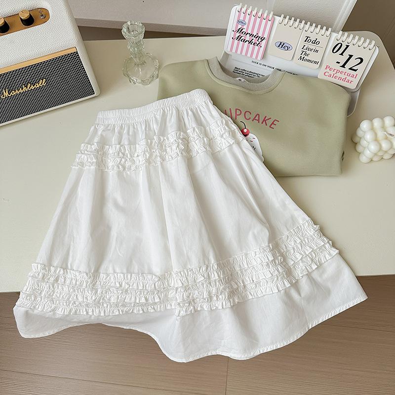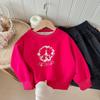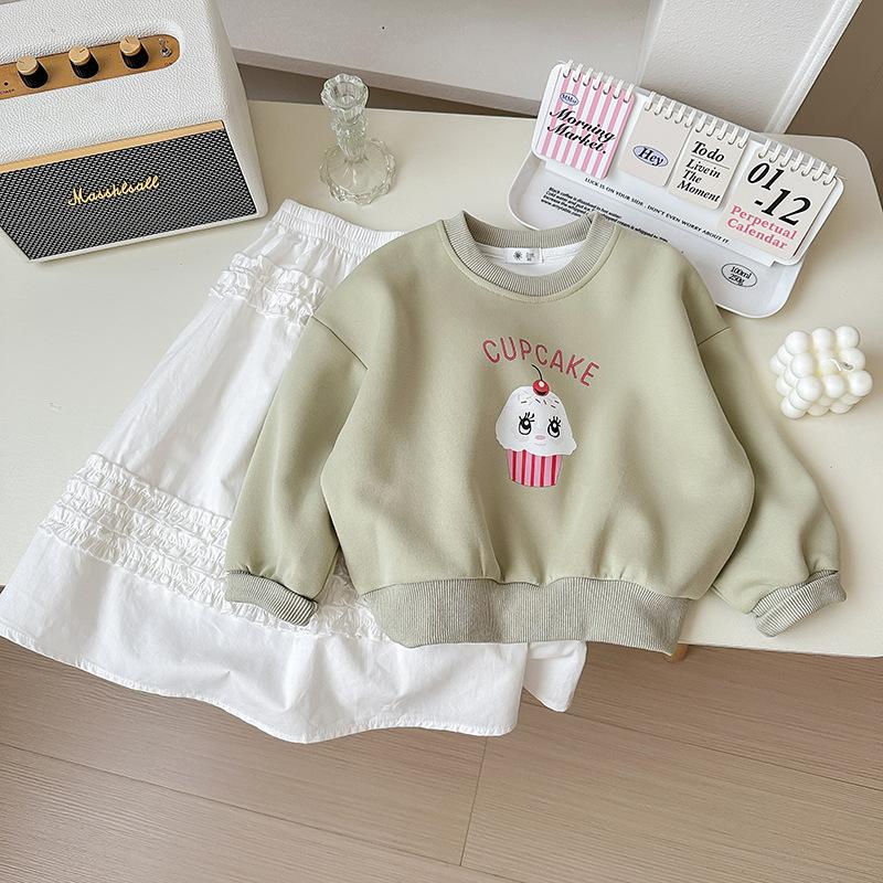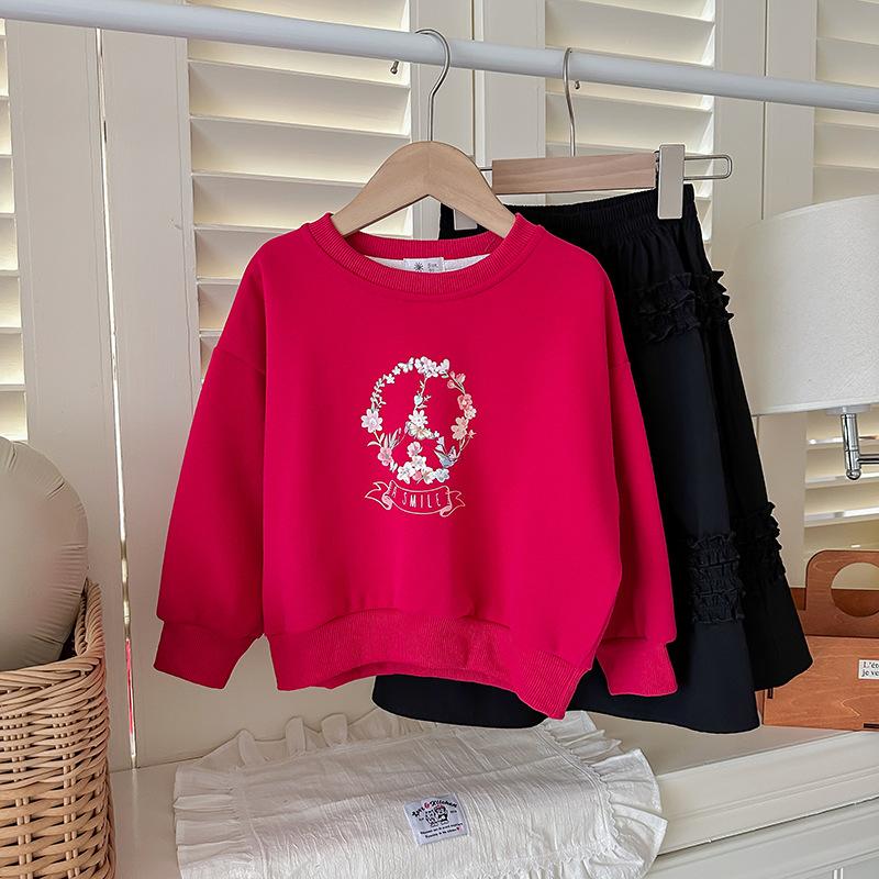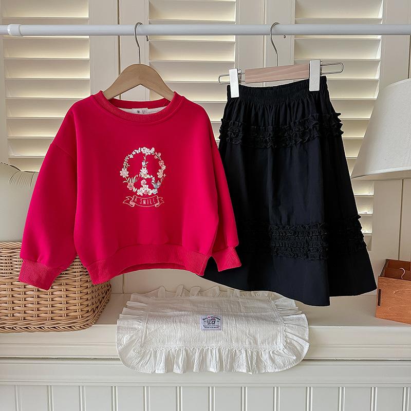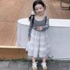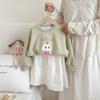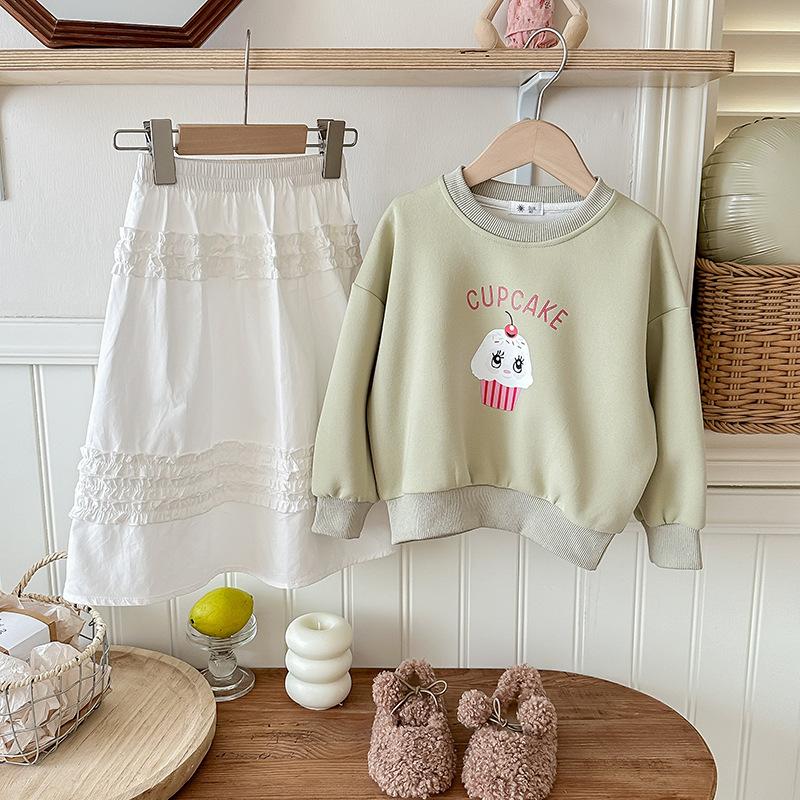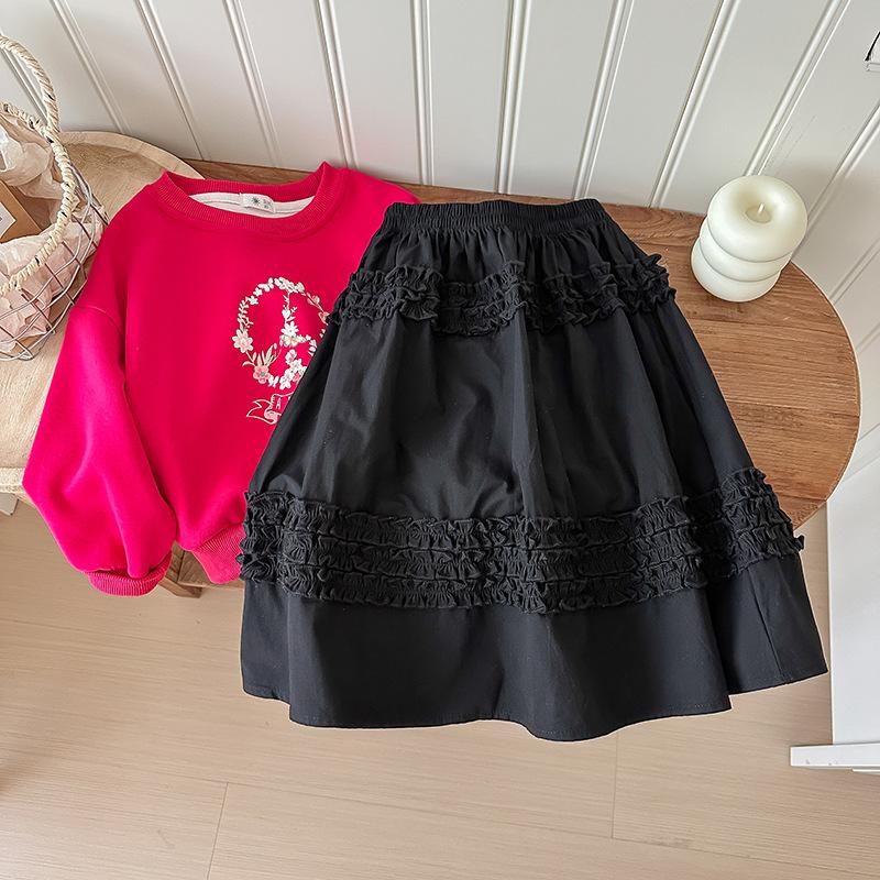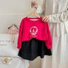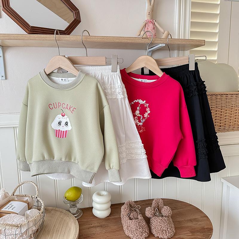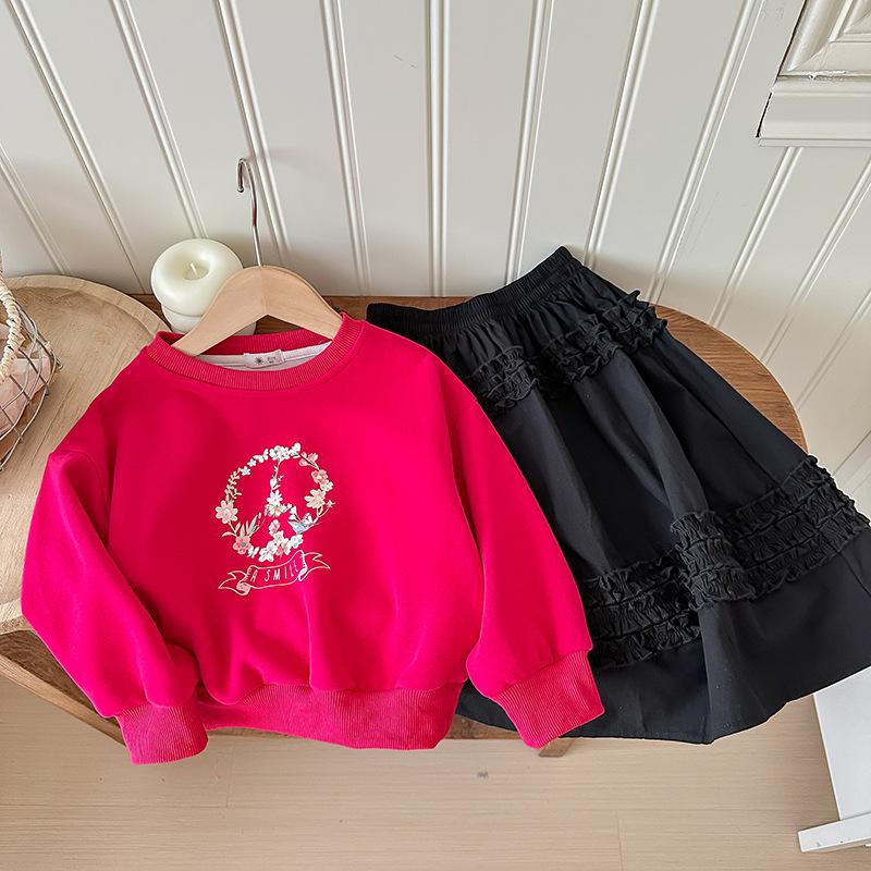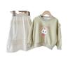 Suéter estilo coreano 2024 para niñas pequeñas y medianas. Conjunto de dos piezas de otoño con falda larga de algodón y top de manga larga con estampado de estilo extranjero famoso en Internet.