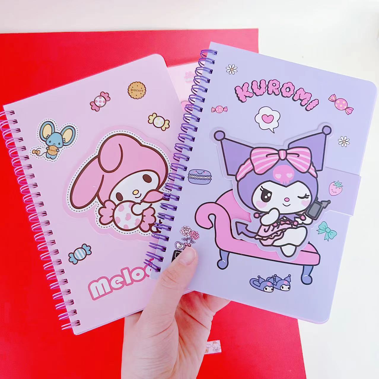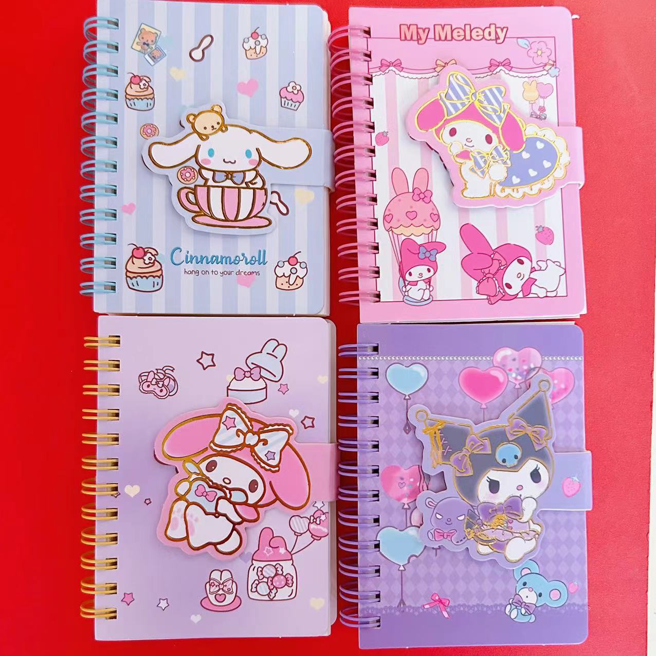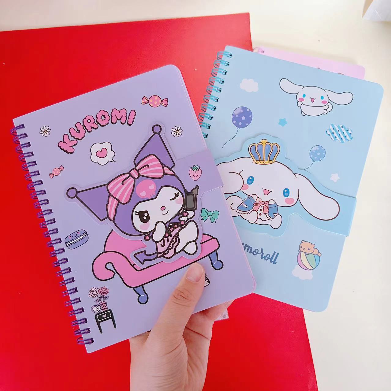 Cuaderno de espiral Sanrio con botones magnéticos Kulomi de alto valor de color, cuaderno para estudiantes, cuaderno de mano, bloc de notas con páginas interiores a color