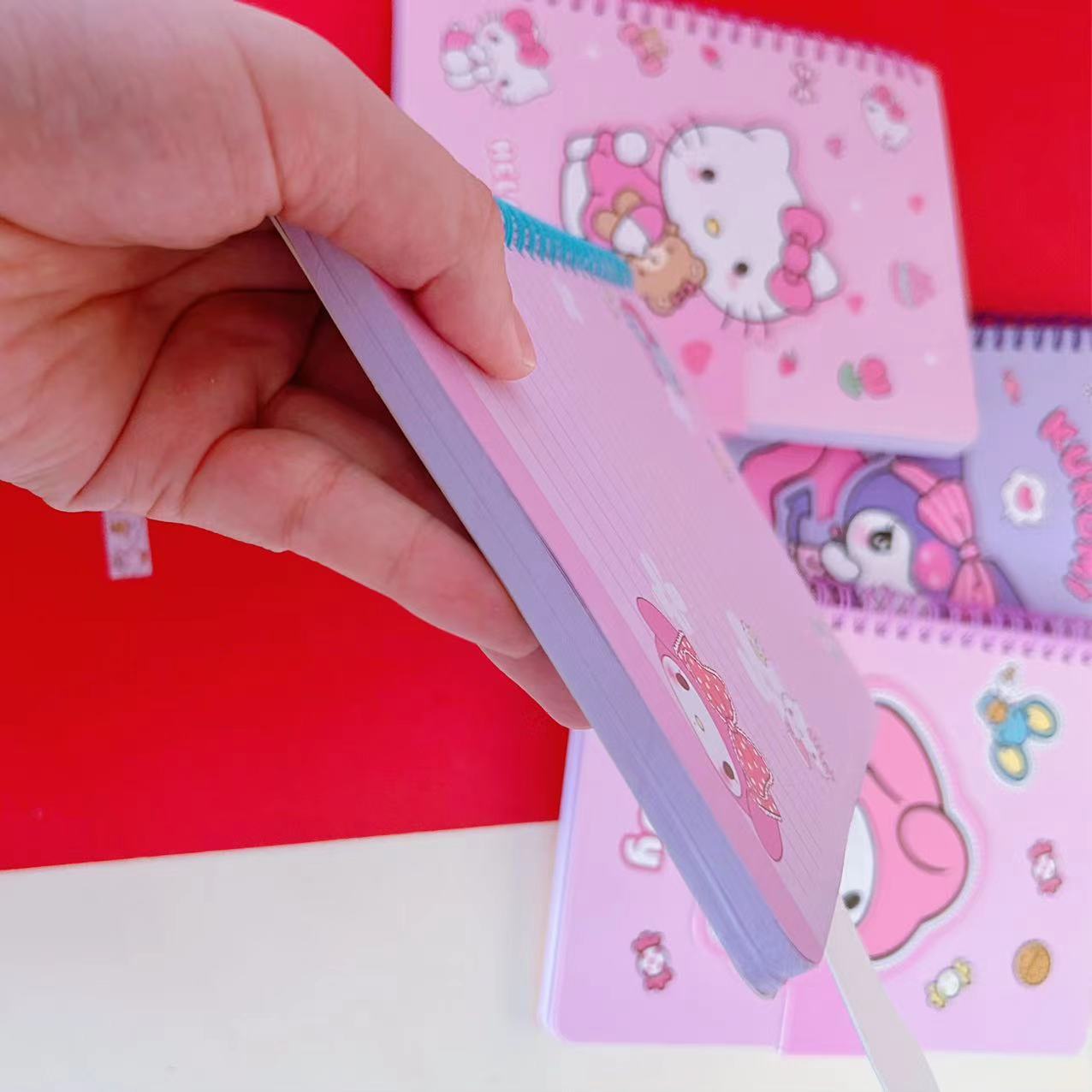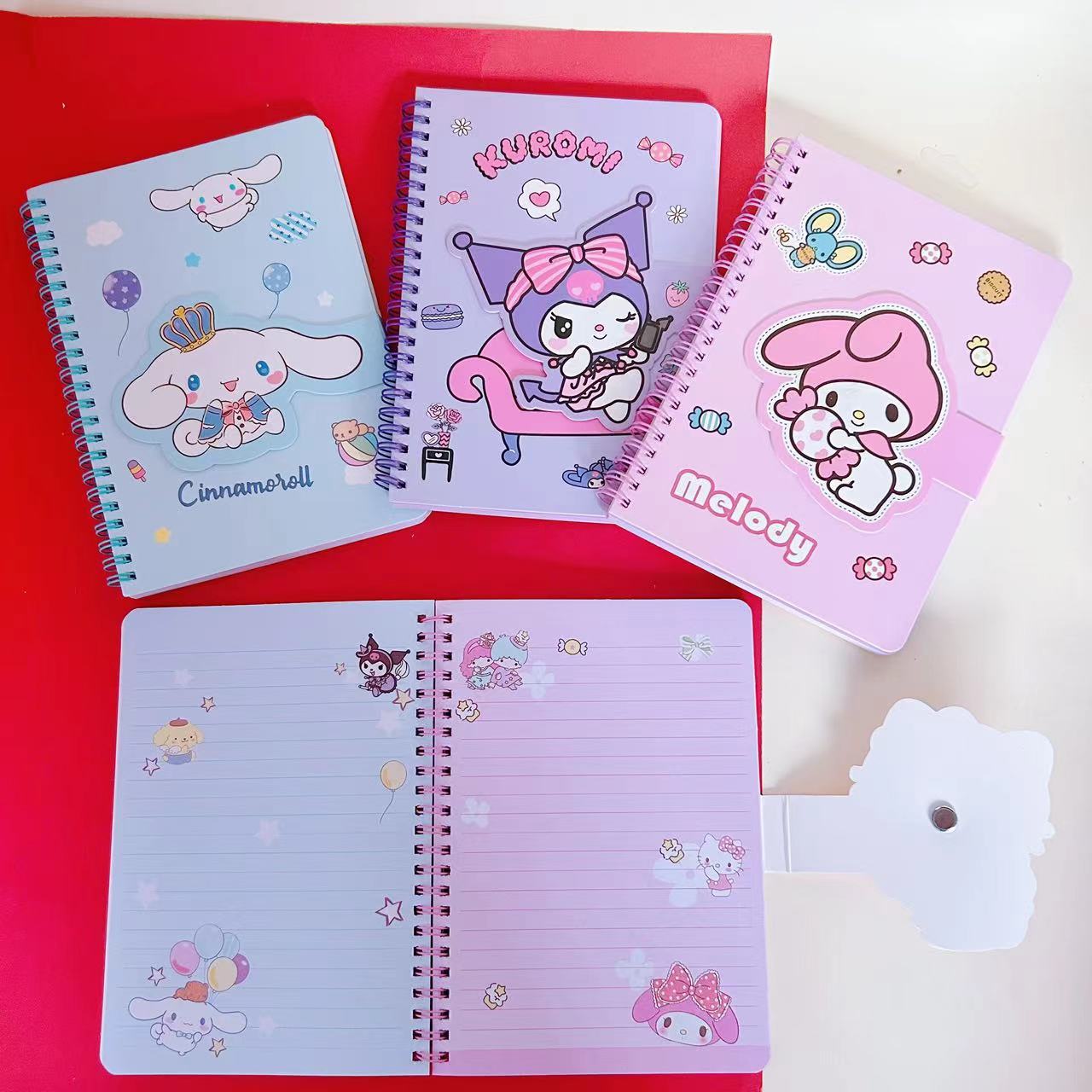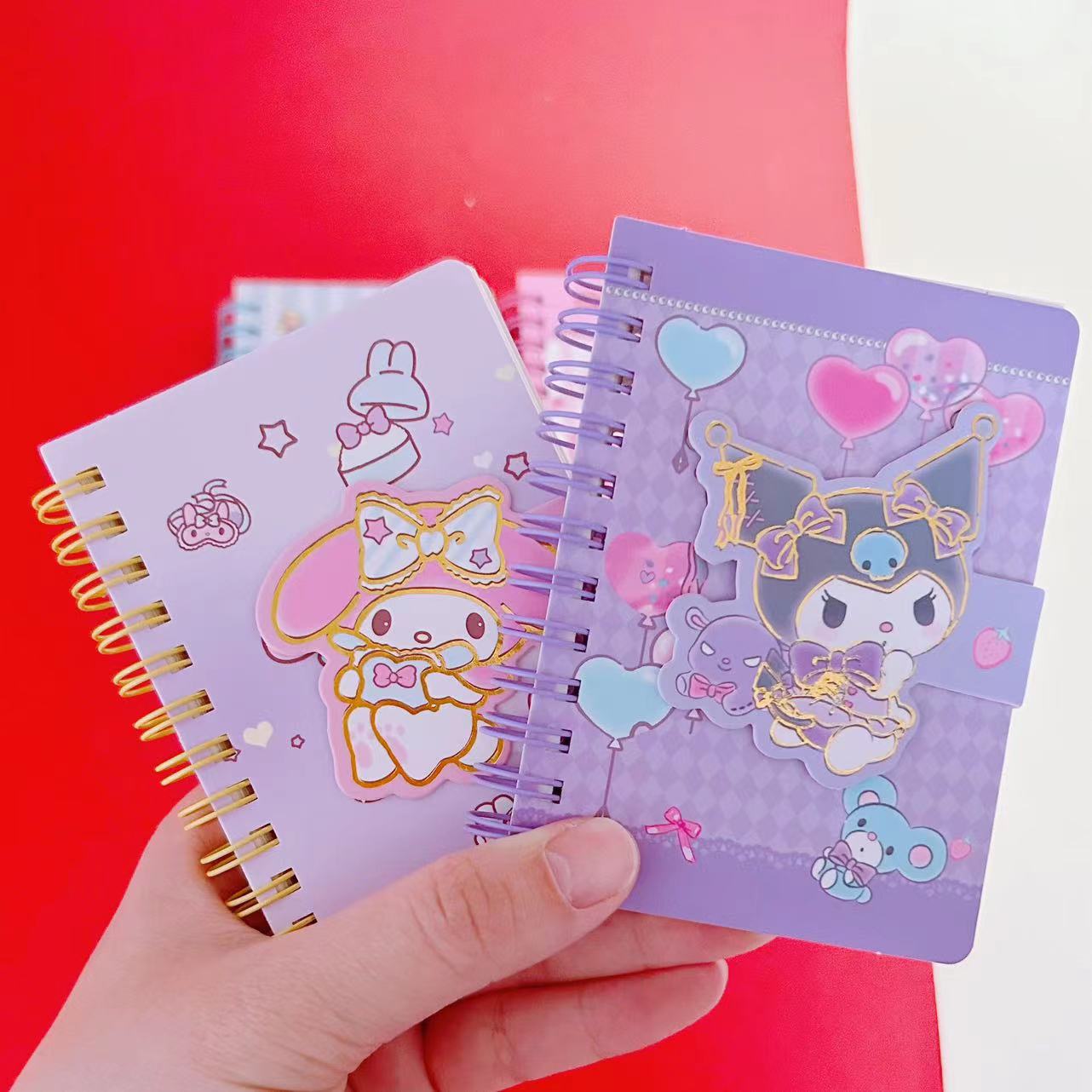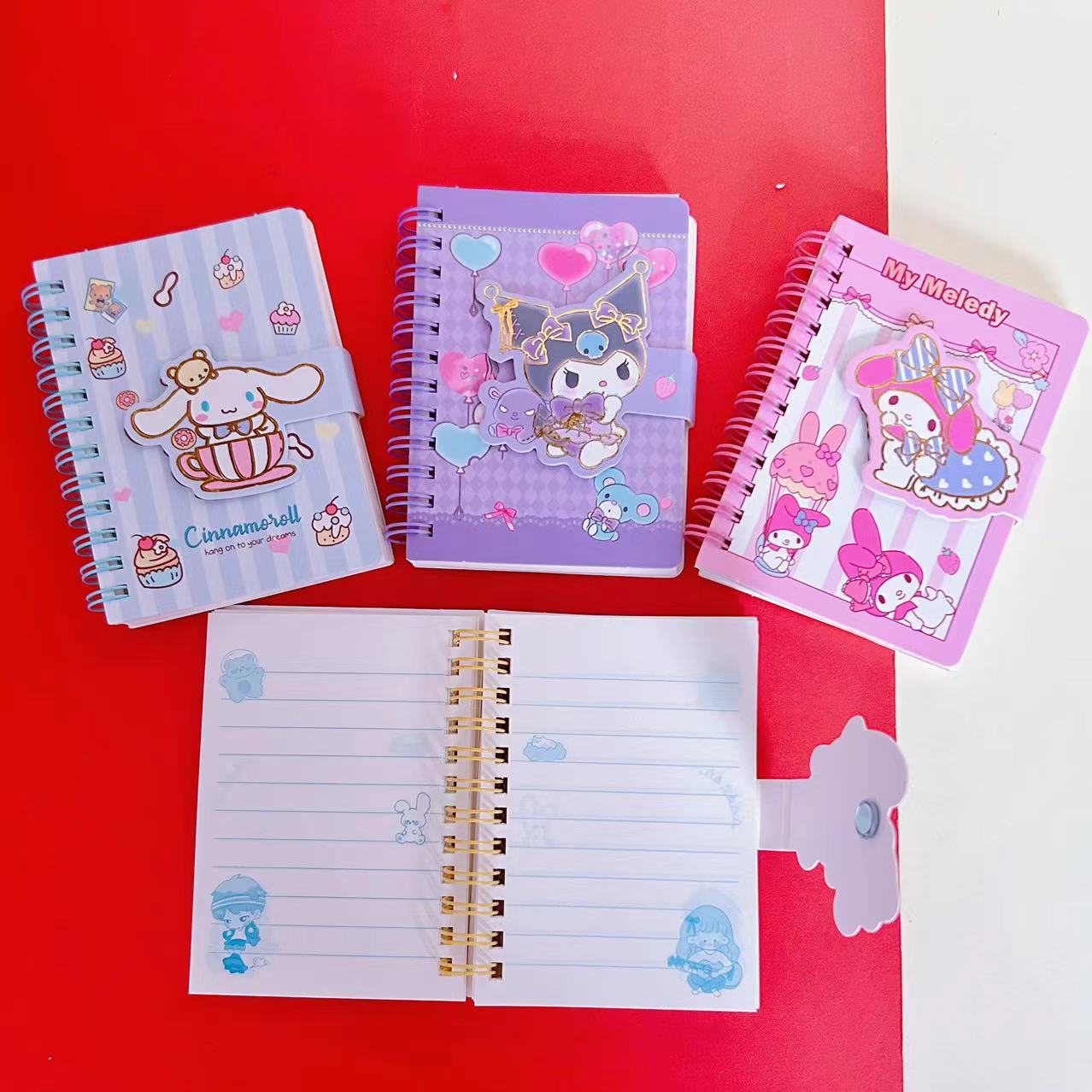 Cuaderno de espiral Sanrio con botones magnéticos Kulomi de alto valor de color, cuaderno para estudiantes, cuaderno de mano, bloc de notas con páginas interiores a color