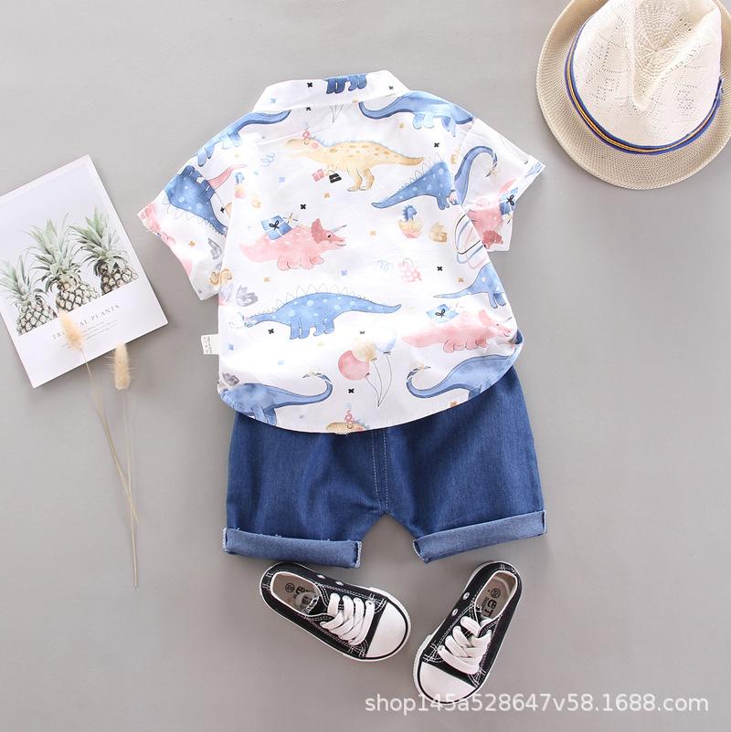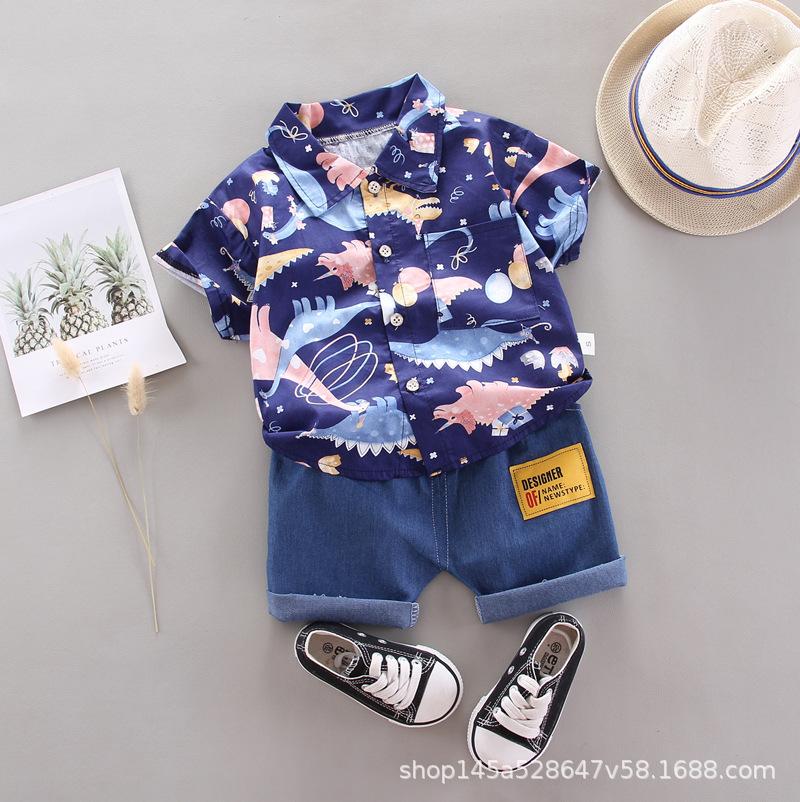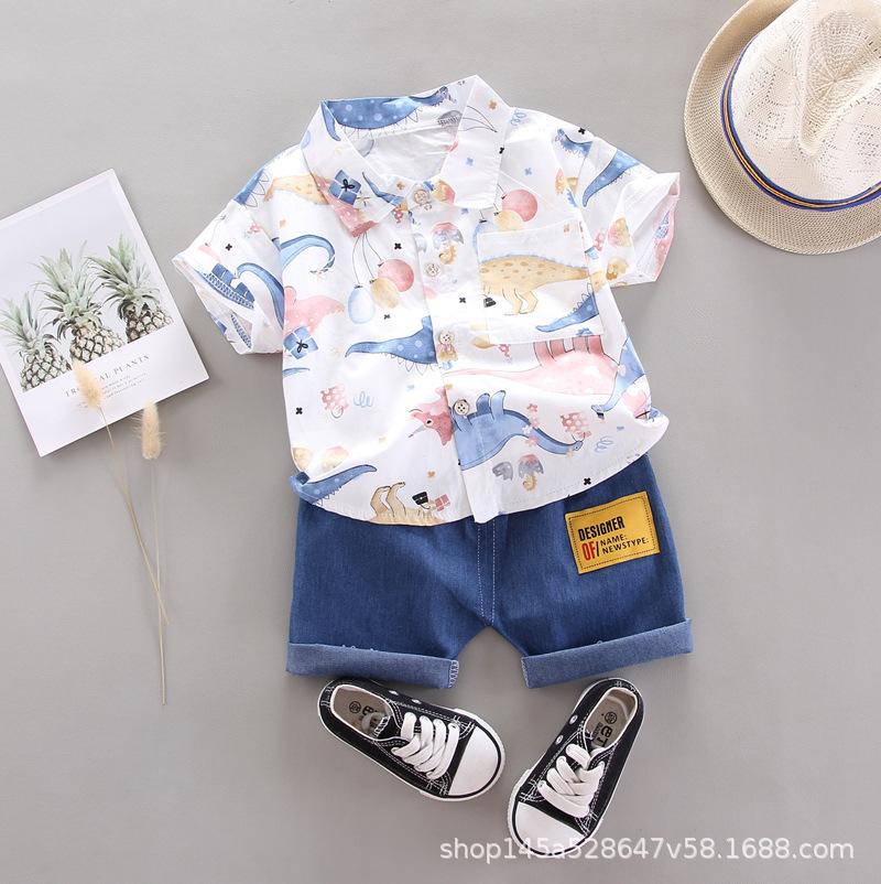 Traje de verano de manga corta para niño, ropa de bebé de dos piezas para niño, camisa Lel, traje de verano para niño
