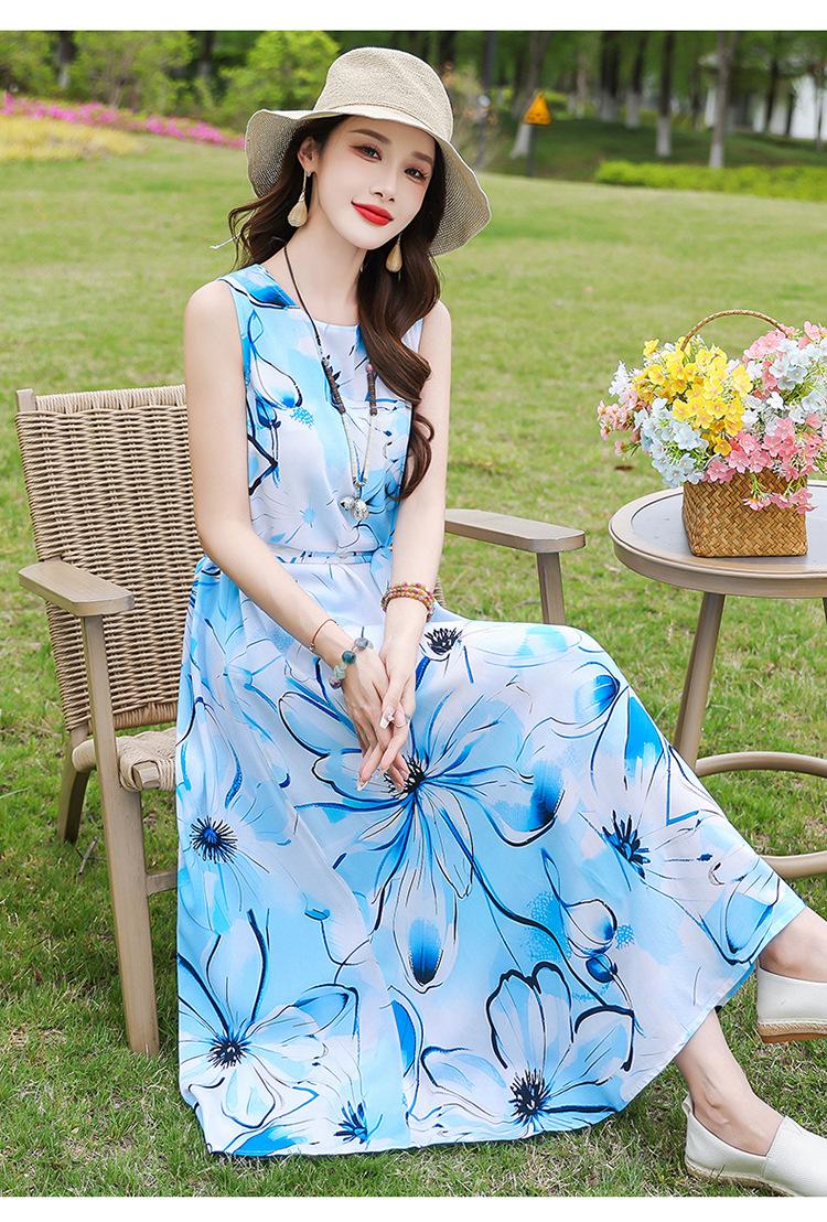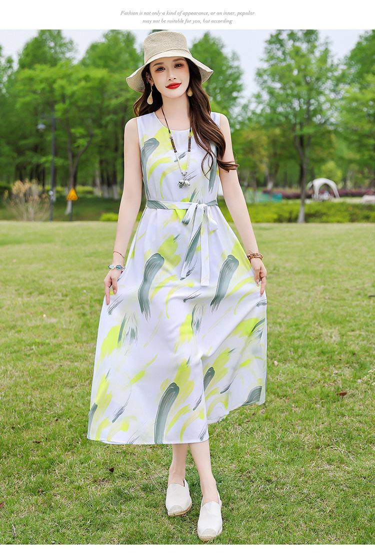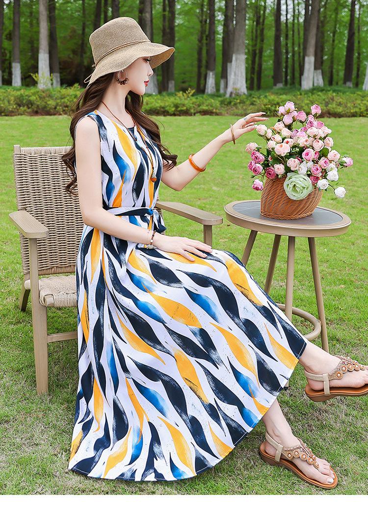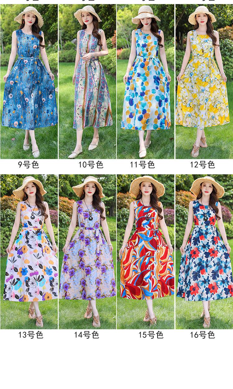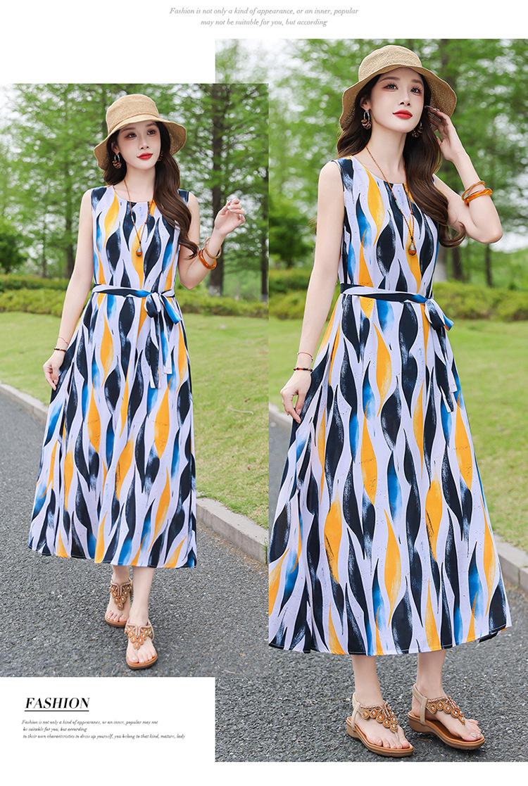 Nuevo Vestido sin Mangas de Algodón Seda de Cintura Ajustada Estilo Vacaciones Marinas para Mujer Talla Grande Adelgazante Chica Gorda Playa Tirantes Falda Larga