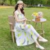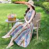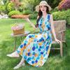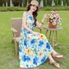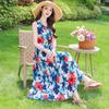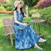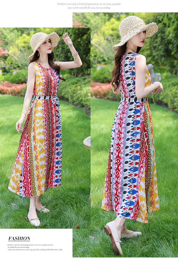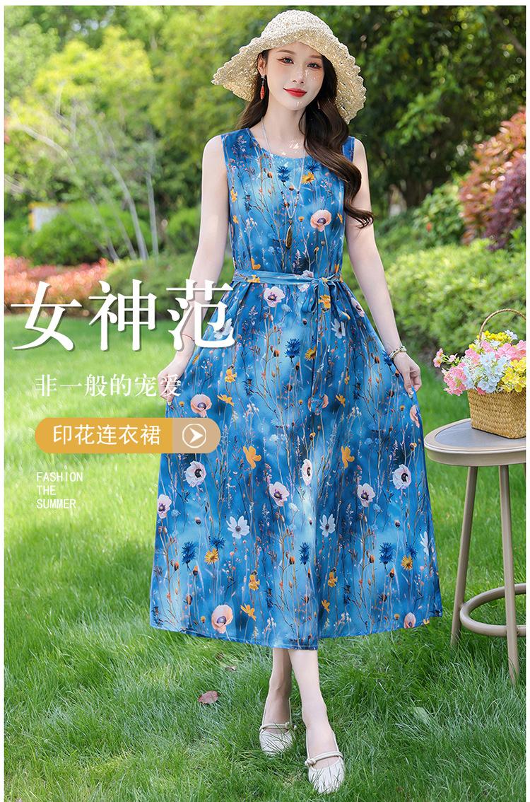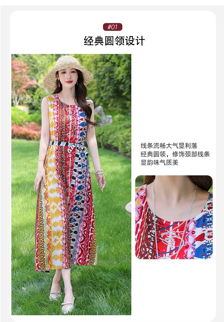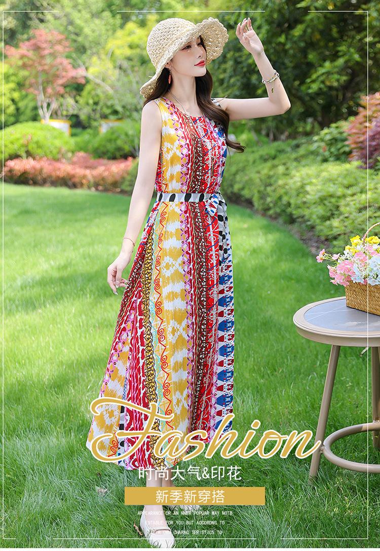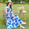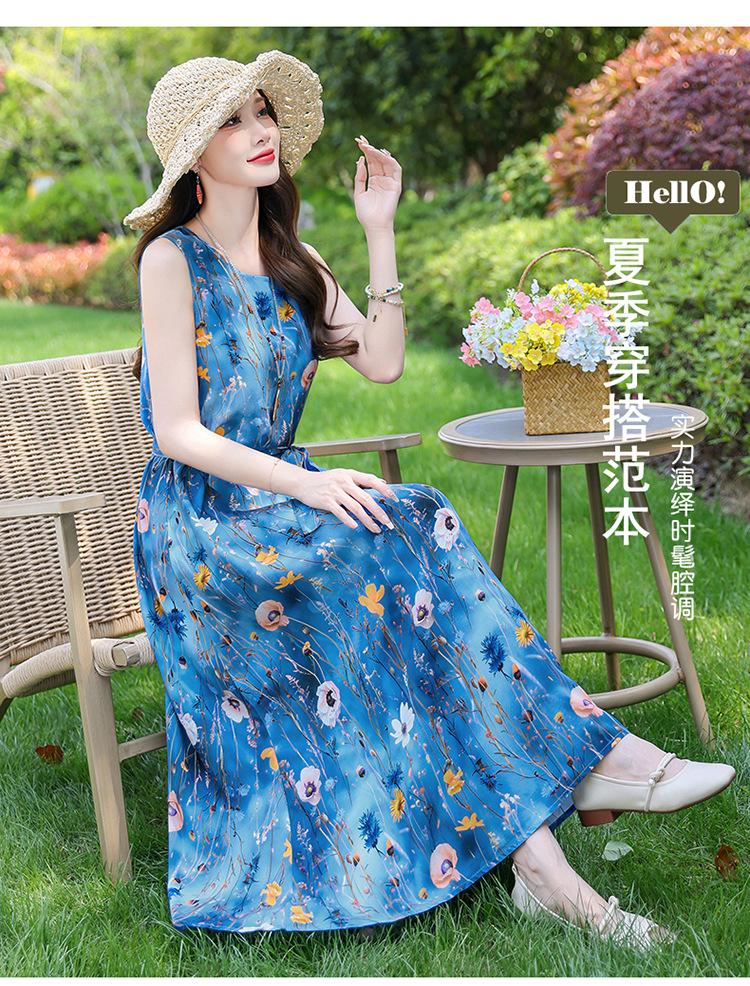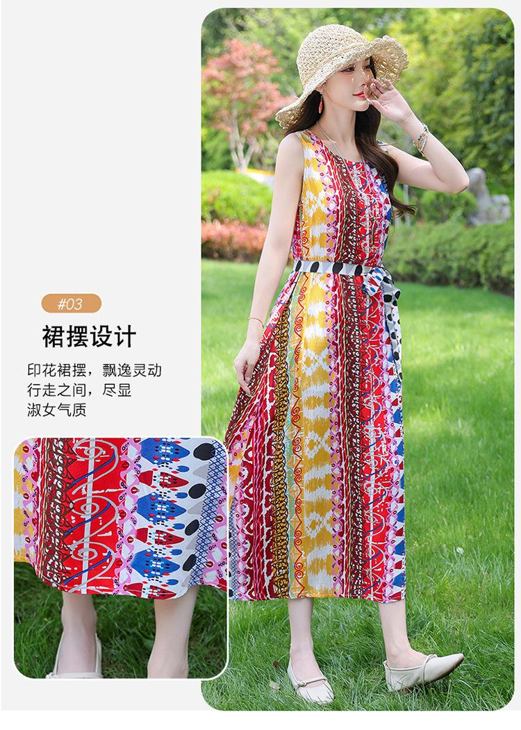 Nuevo Vestido sin Mangas de Algodón Seda de Cintura Ajustada Estilo Vacaciones Marinas para Mujer Talla Grande Adelgazante Chica Gorda Playa Tirantes Falda Larga