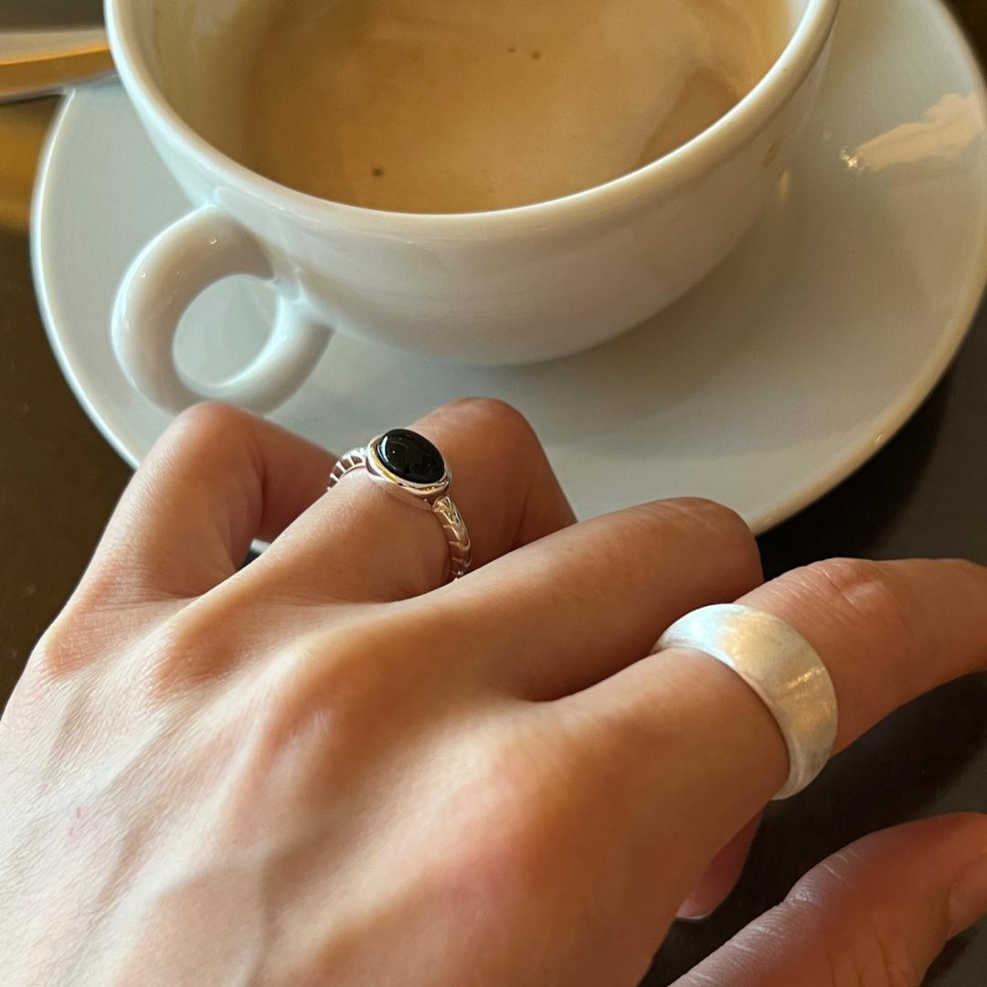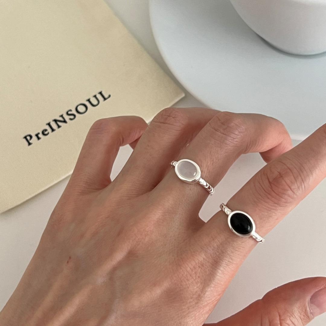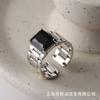 Anillo de plata de ley S925 con ágata blanca y negra y diamantes a cuadros para mujer, diseño de nicho, con un toque de estilo moderno y calcedonia.