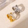 Anillo de diamantes en forma de X con personalidad simple, de venta caliente transfronteriza, estilo europeo y americano, diseño geométrico irregular, acero de titanio chapado en oro de 18 quilates.