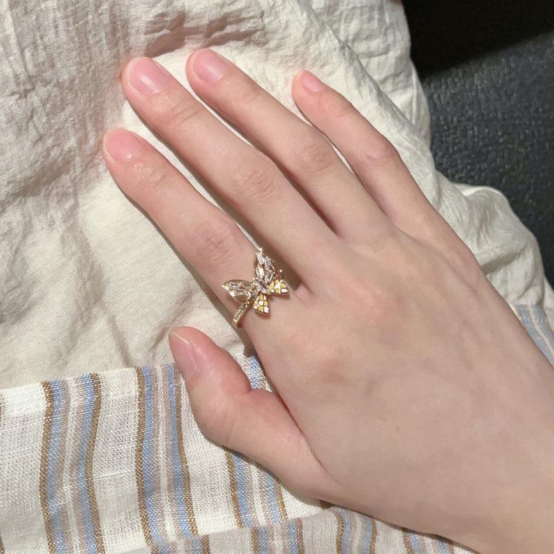 Anillo Único de Diseño Nicho Moda para Mujer Exquisito Combinable Sentido de Alta Gama Decoración Anillo de Mariposa Dopamina Anillo para Dedo de Comida
